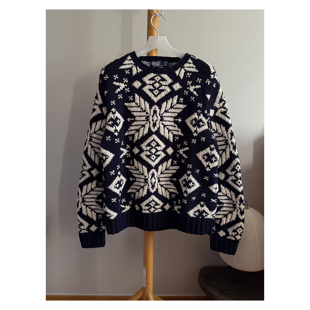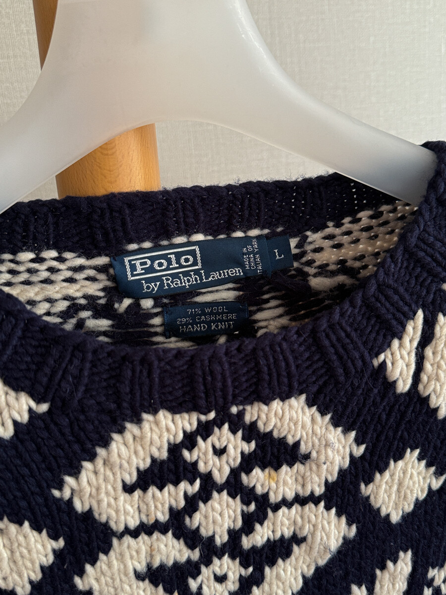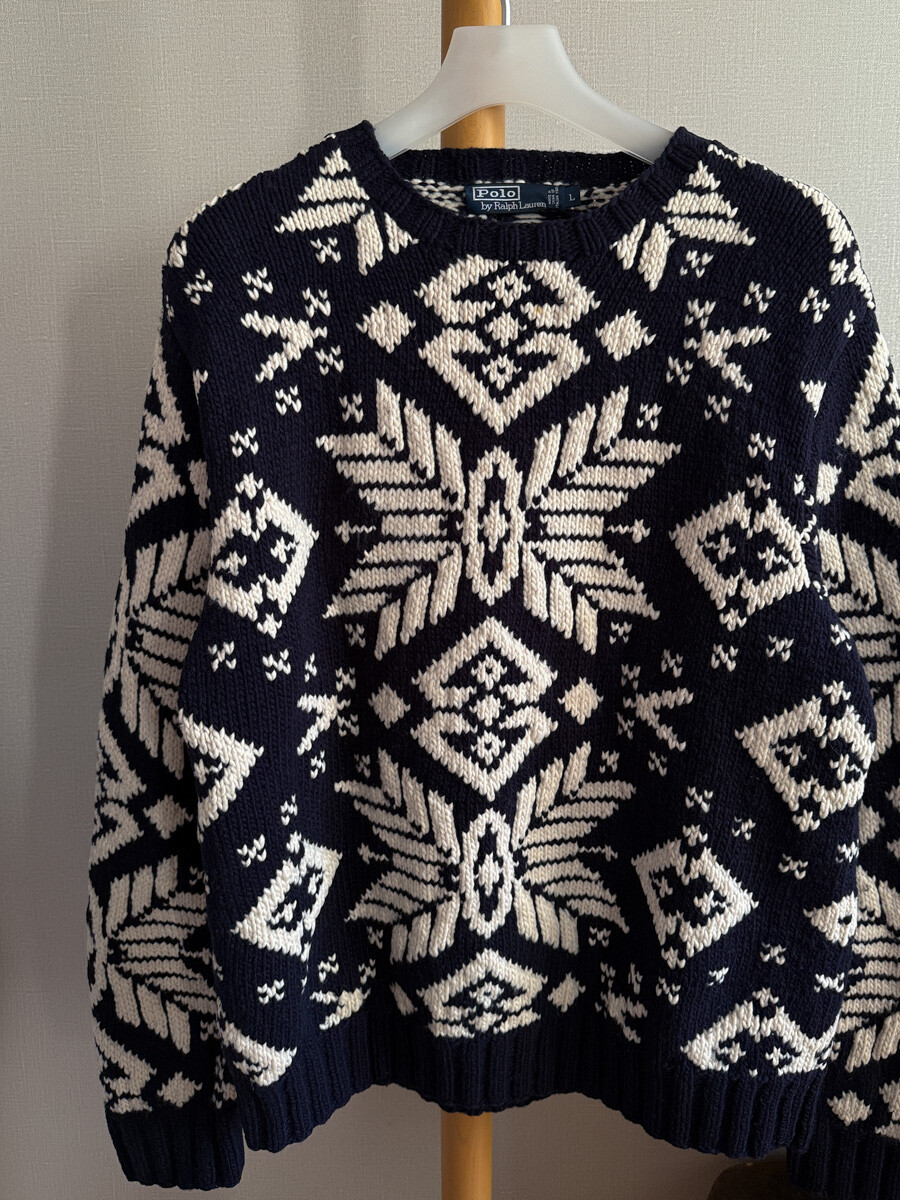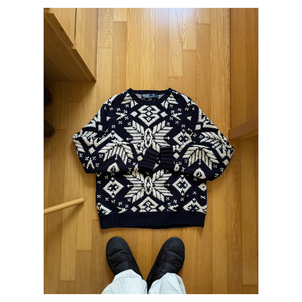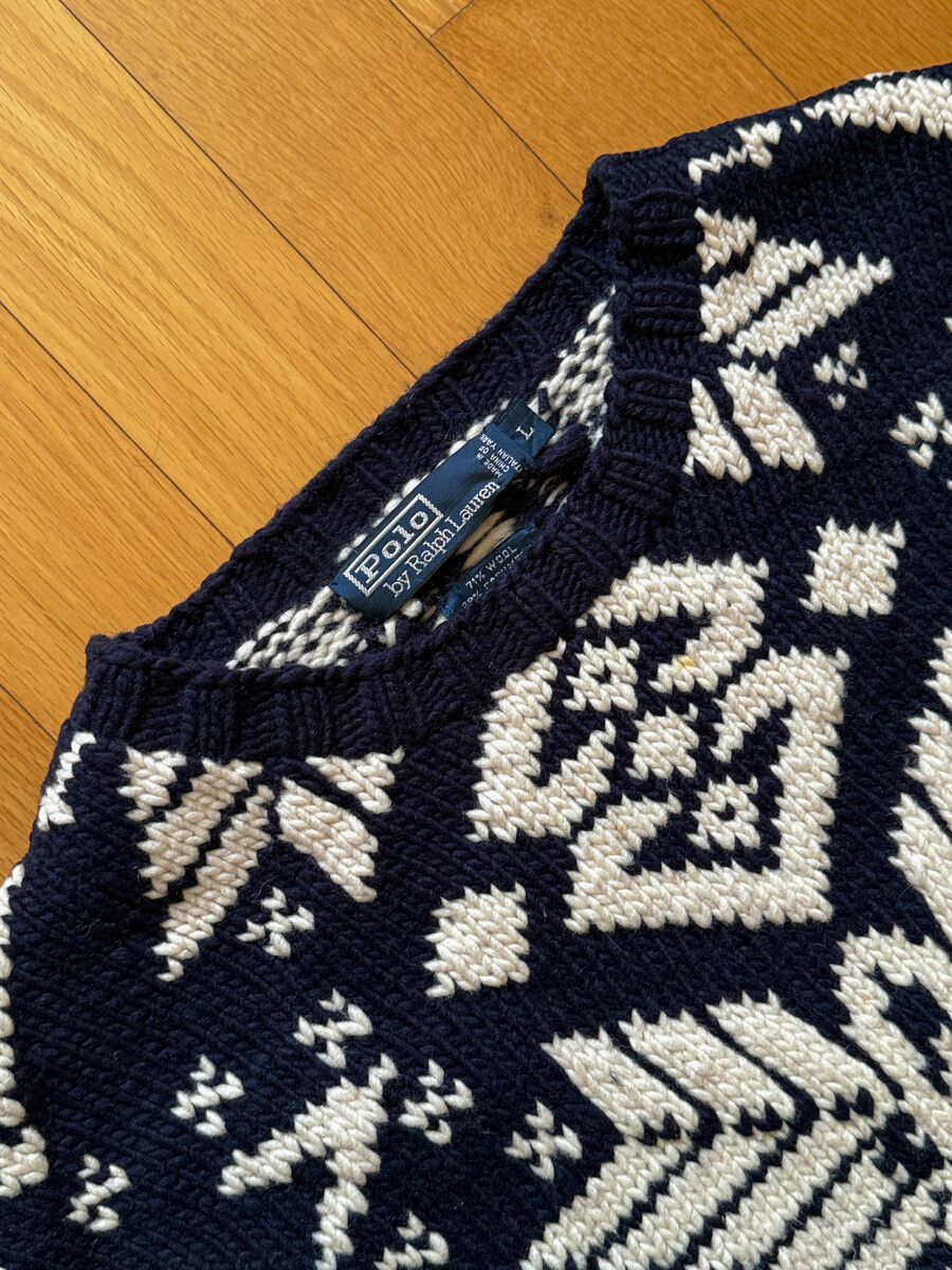1990S POLO RALPH LAUREN - Hand Knits Wool Sweater (Navy / Ivory) *Nordic ice