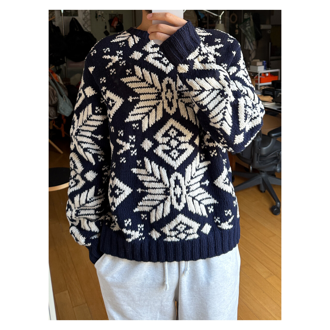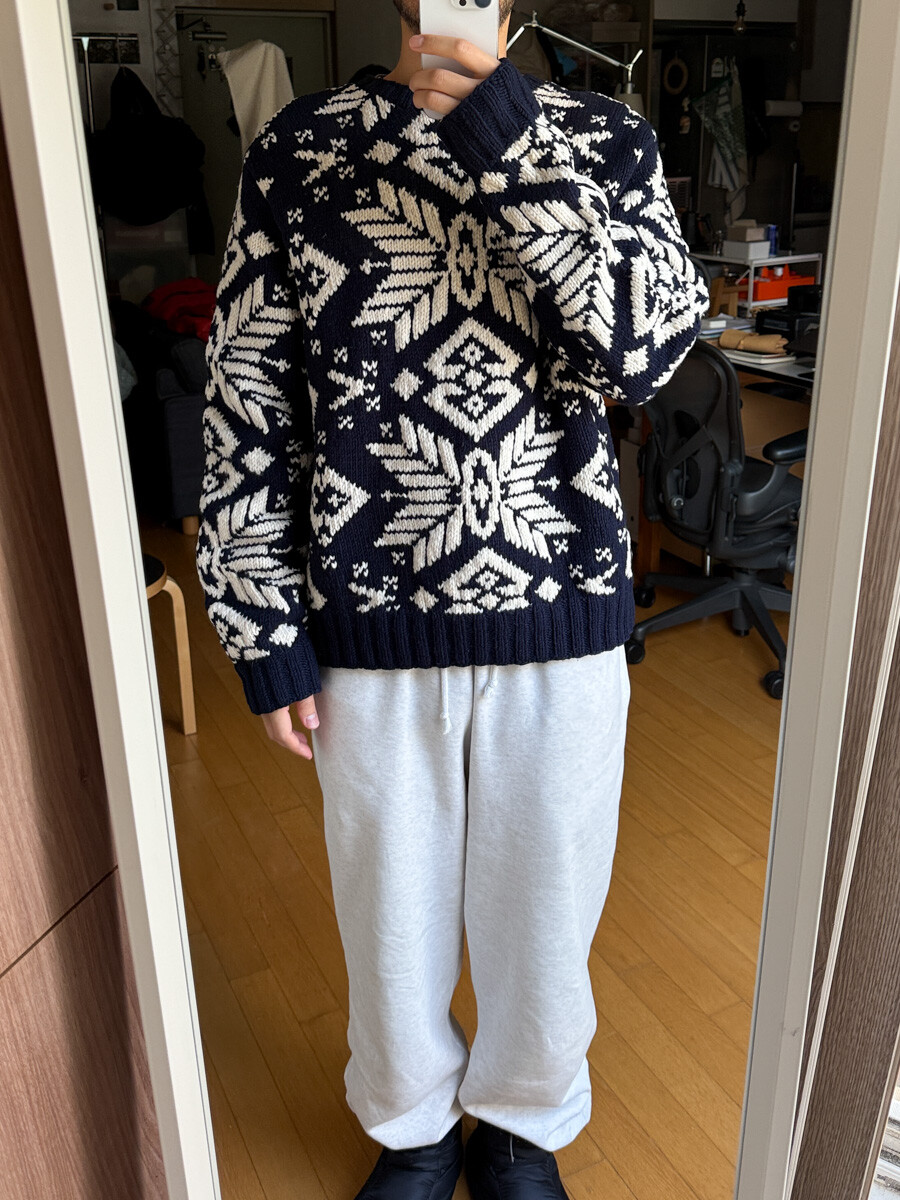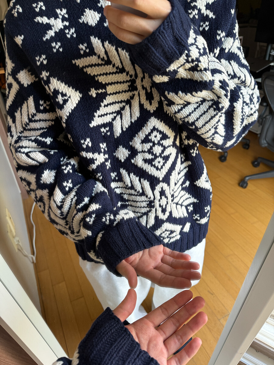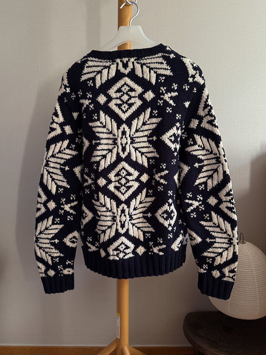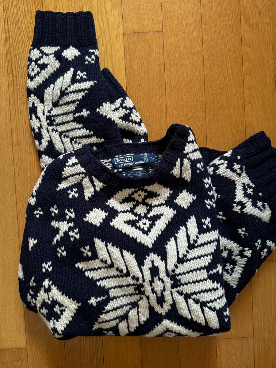 1990S POLO RALPH LAUREN - Hand Knits Wool Sweater (Navy / Ivory) *Nordic ice