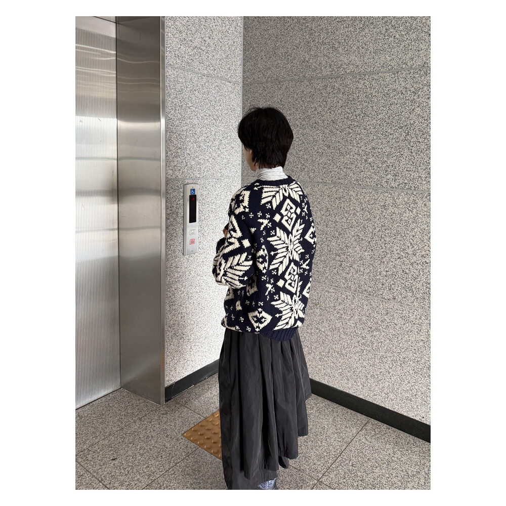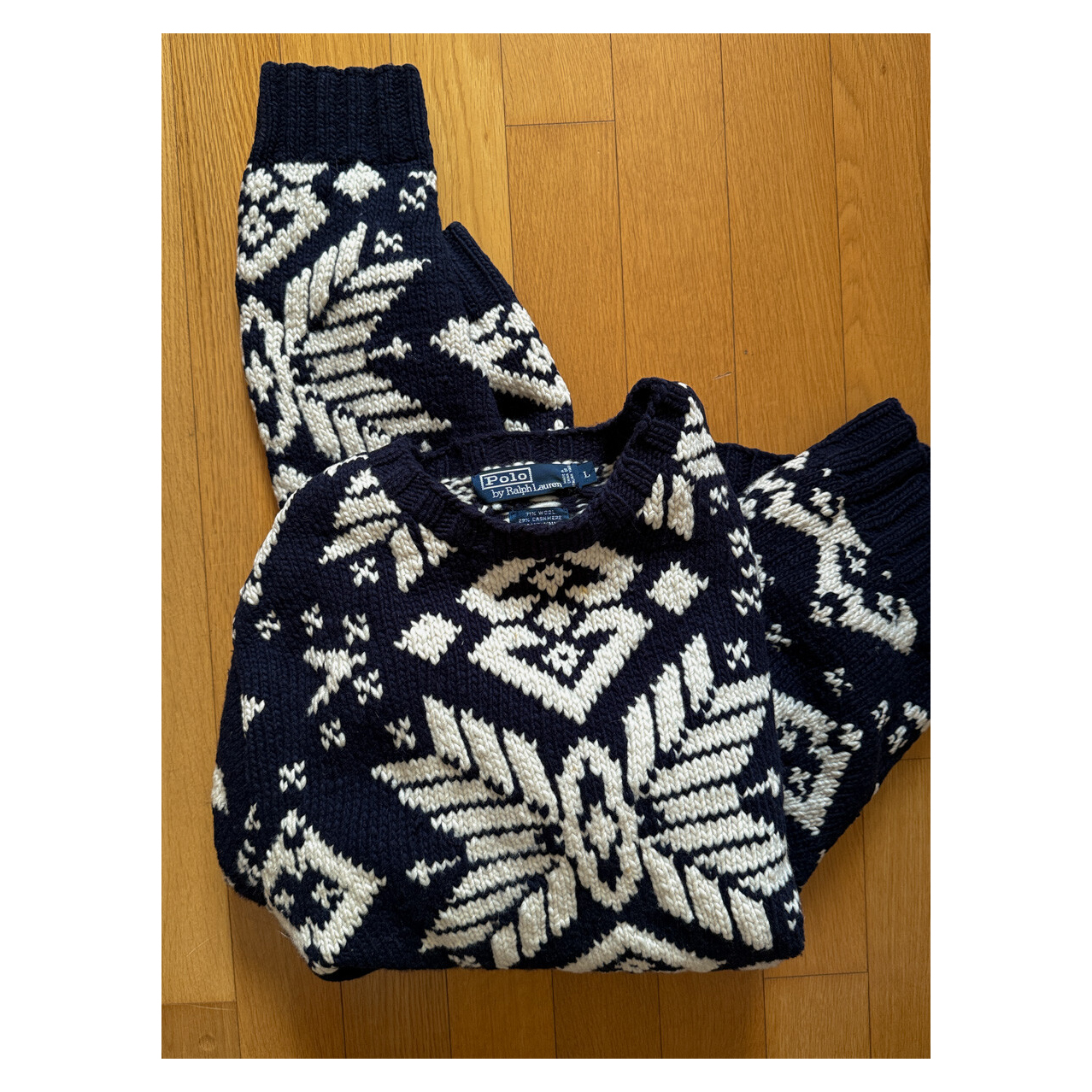 1990S POLO RALPH LAUREN - Hand Knits Wool Sweater (Navy / Ivory) *Nordic ice
