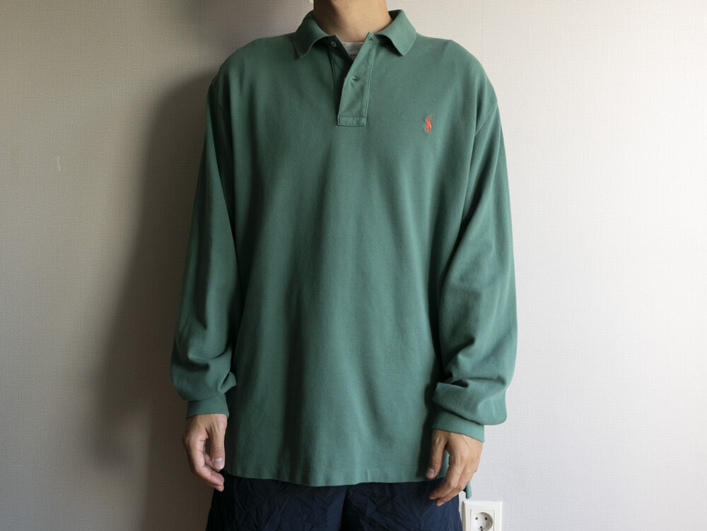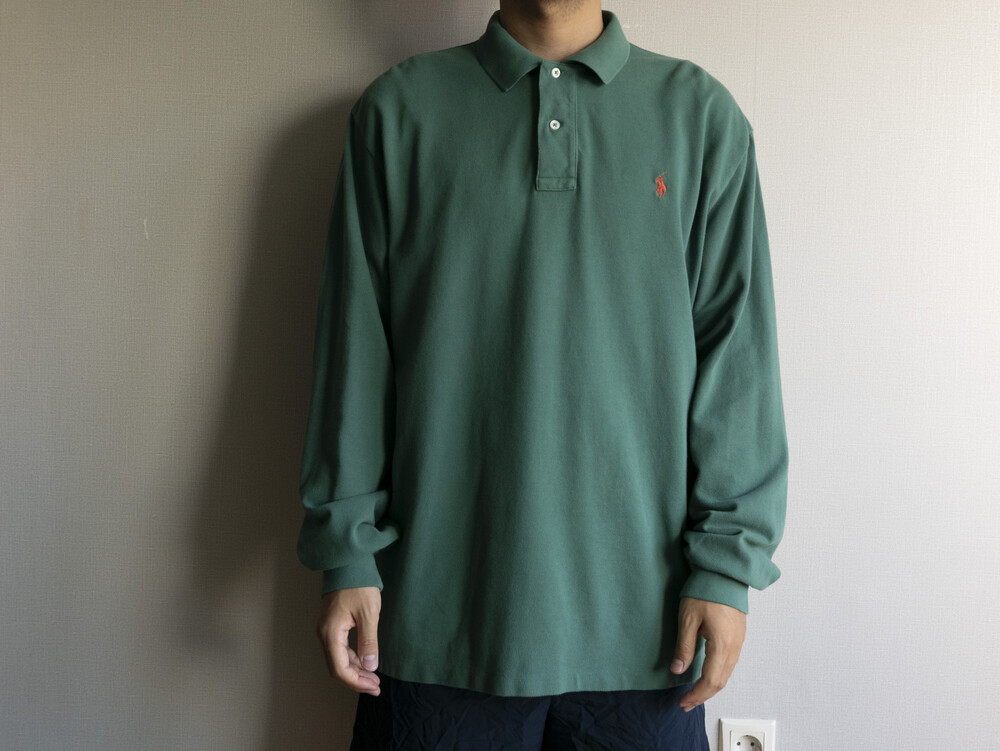 1990s POLO RALPH LAUREN - Long Sleeves PK Shirt (Forest Green)