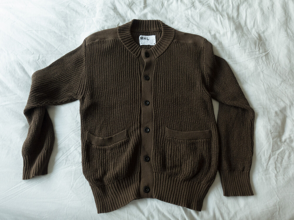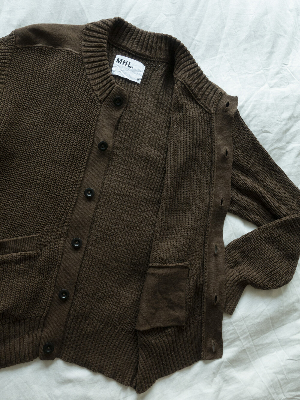 MHL - Low Gauge Cotton Cardigan (Mahogany)