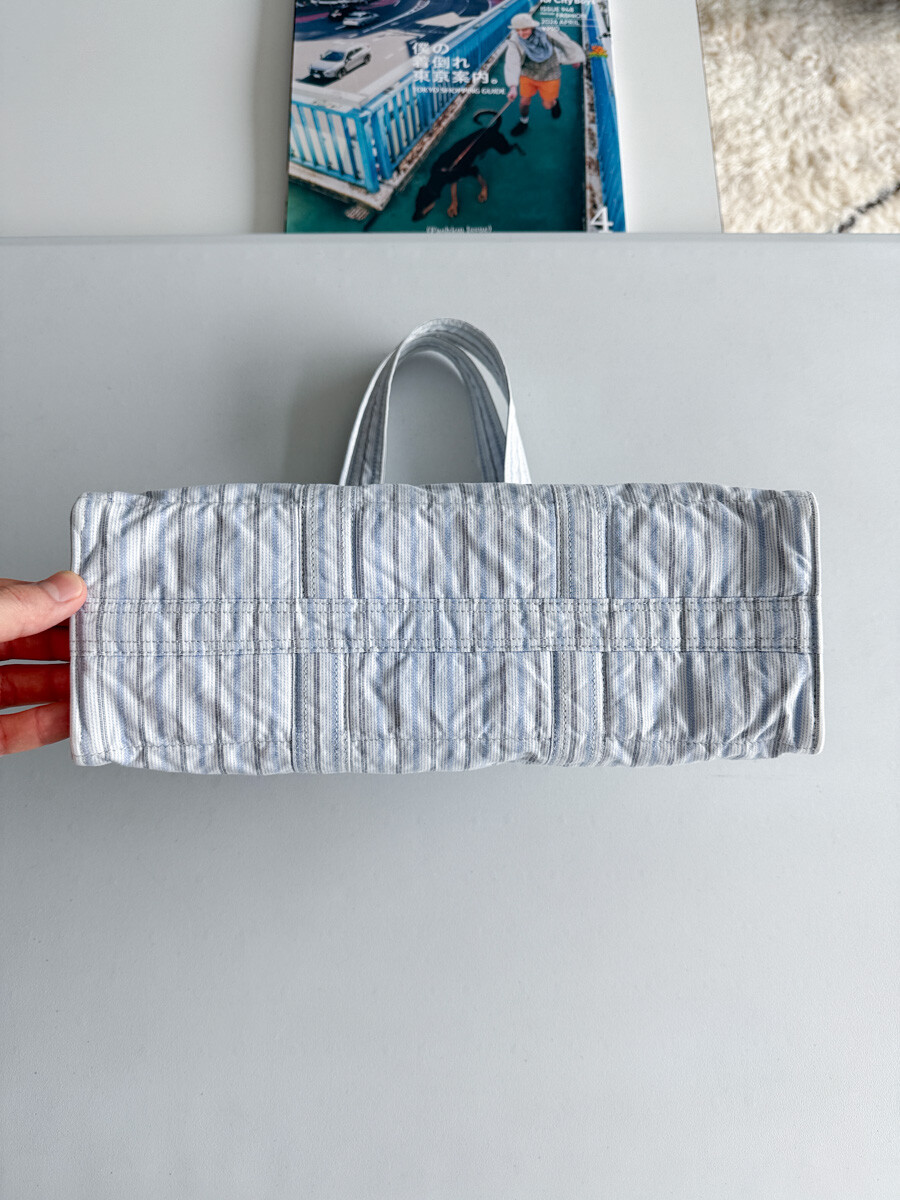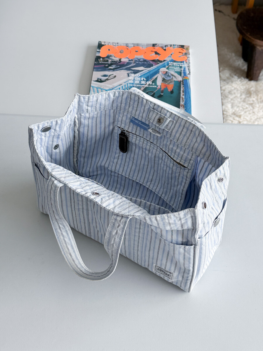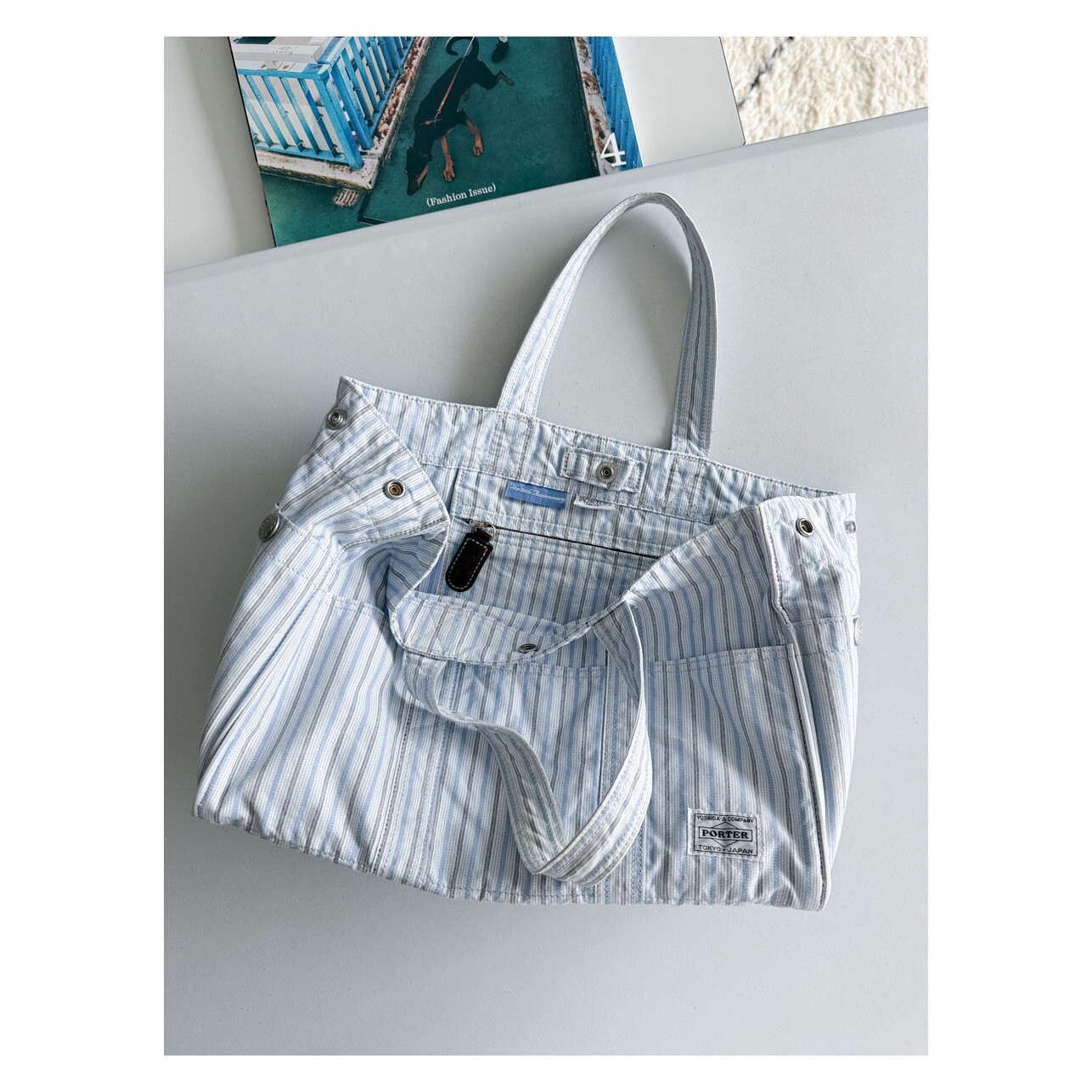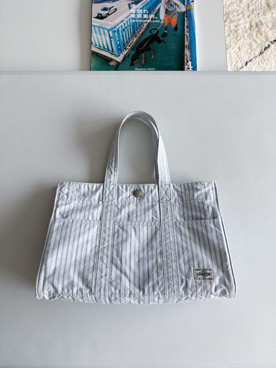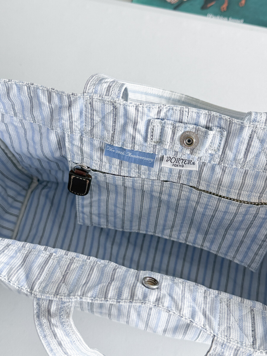 PORTER - 70th Ani TOTE BAG S (Stripe / White & Sky Blue)