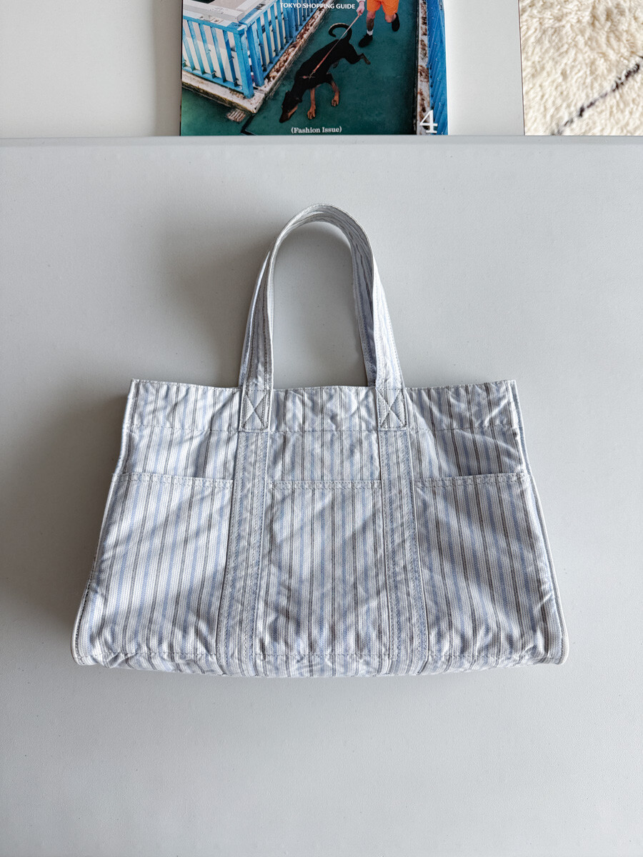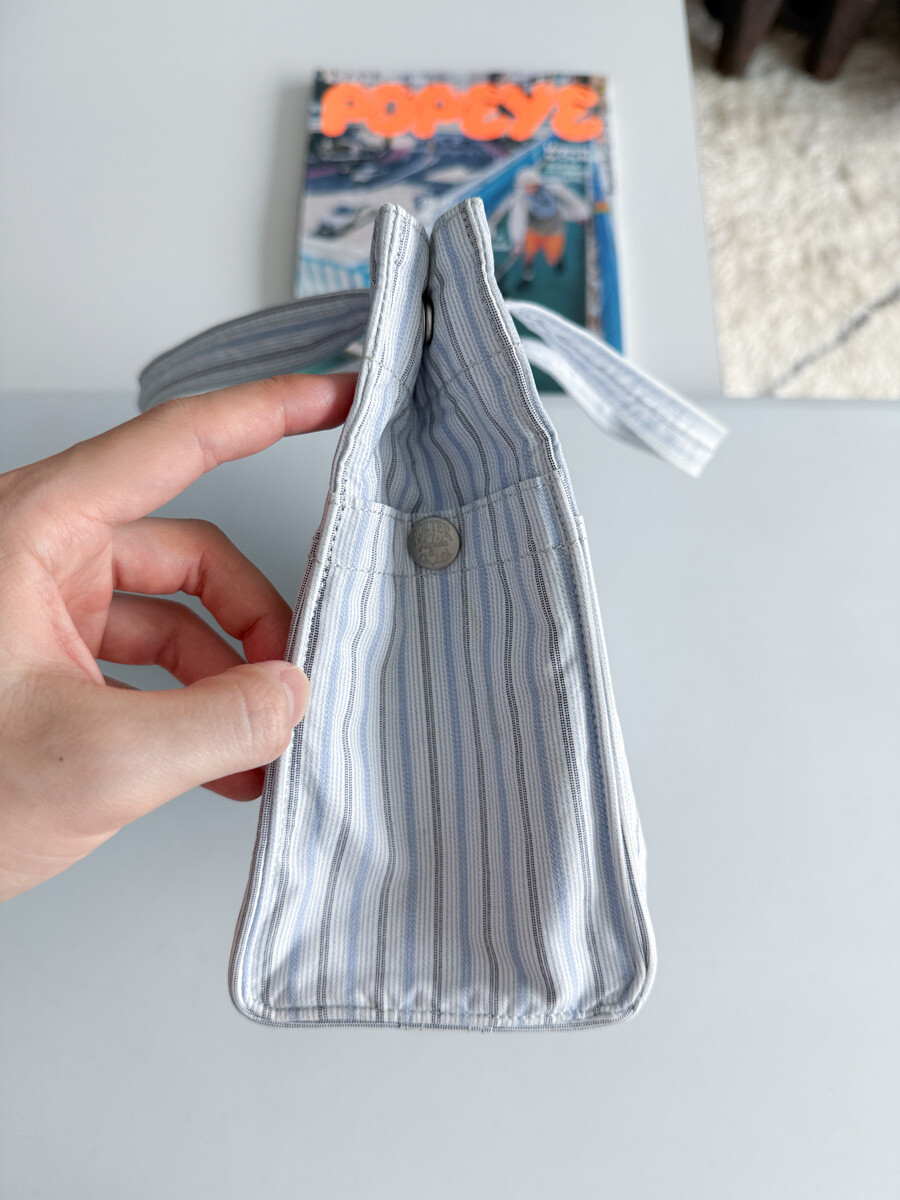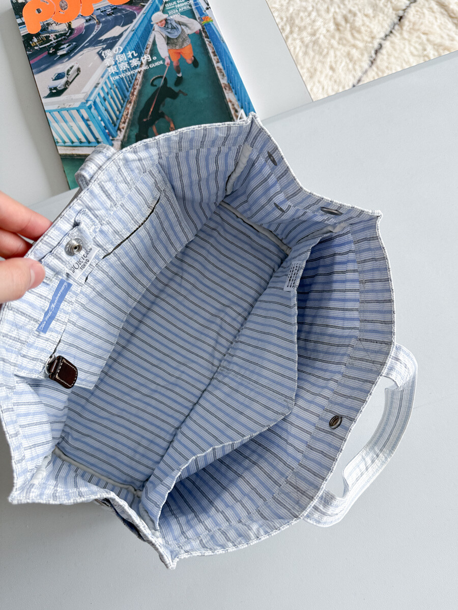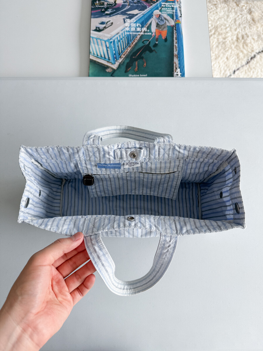 PORTER - 70th Ani TOTE BAG S (Stripe / White & Sky Blue)