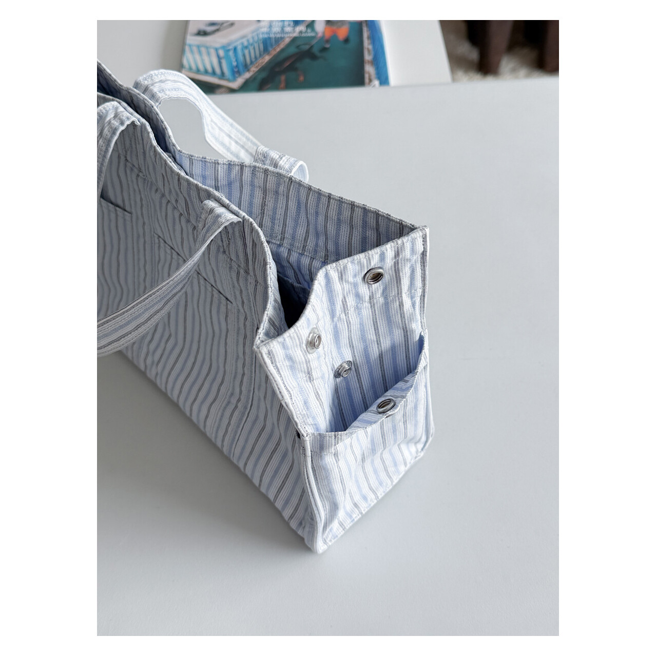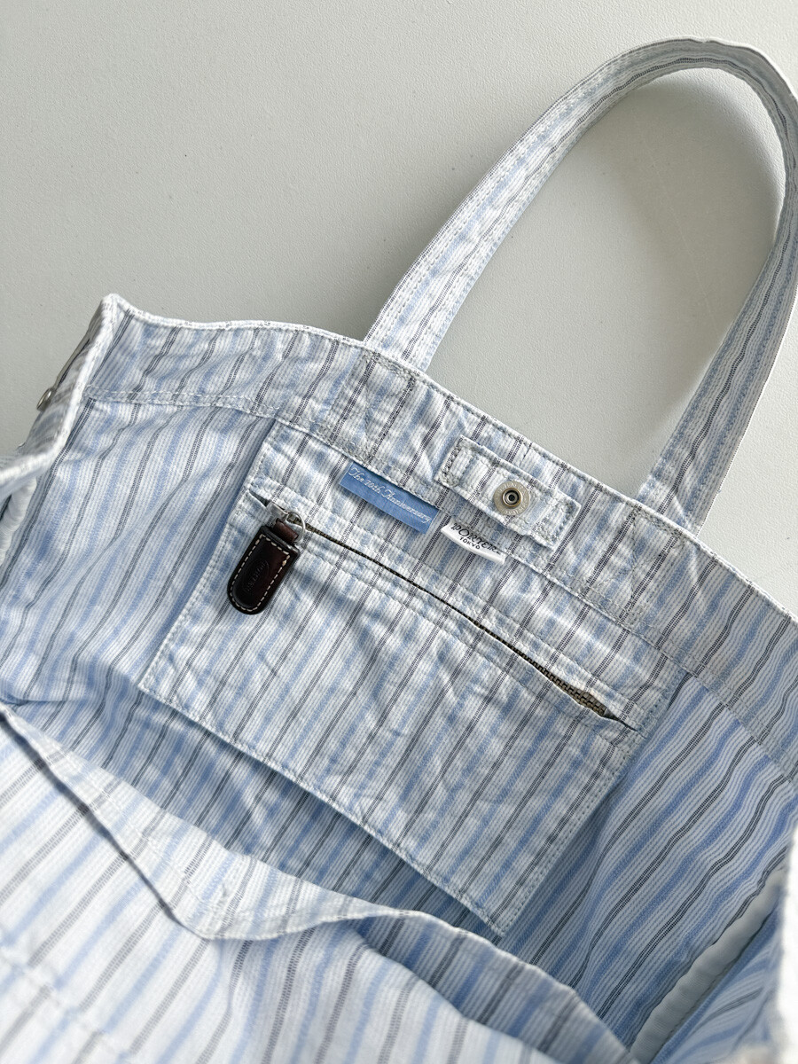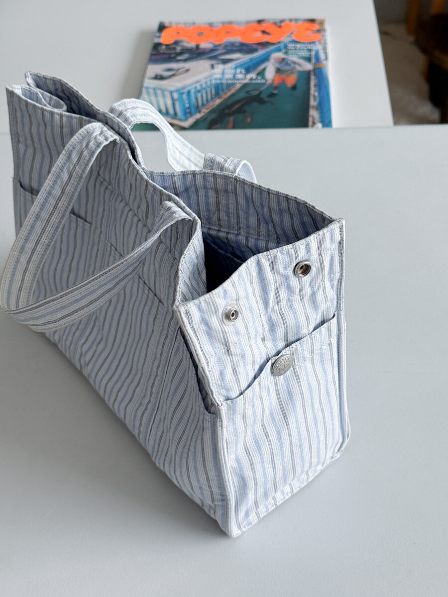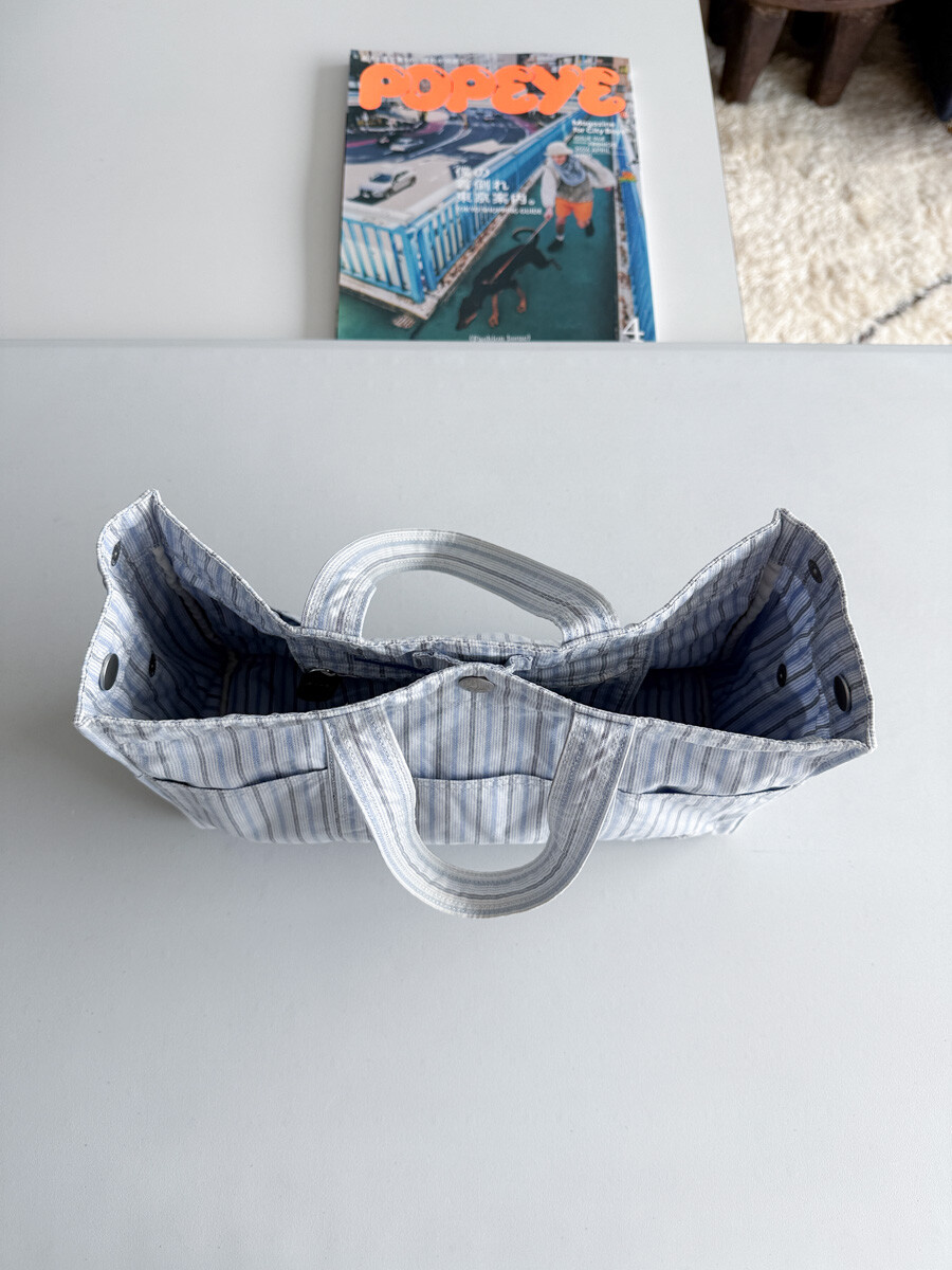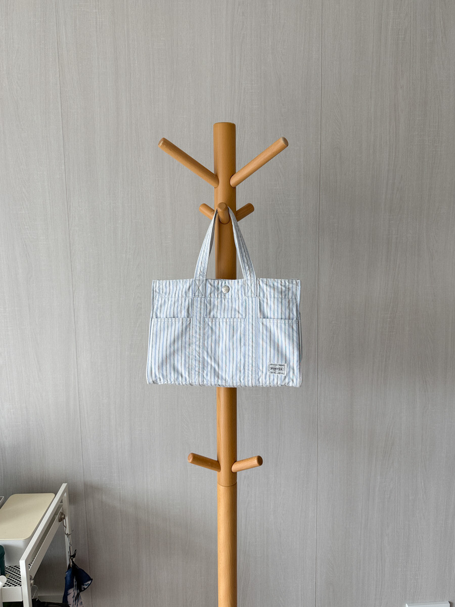 PORTER - 70th Ani TOTE BAG S (Stripe / White & Sky Blue)