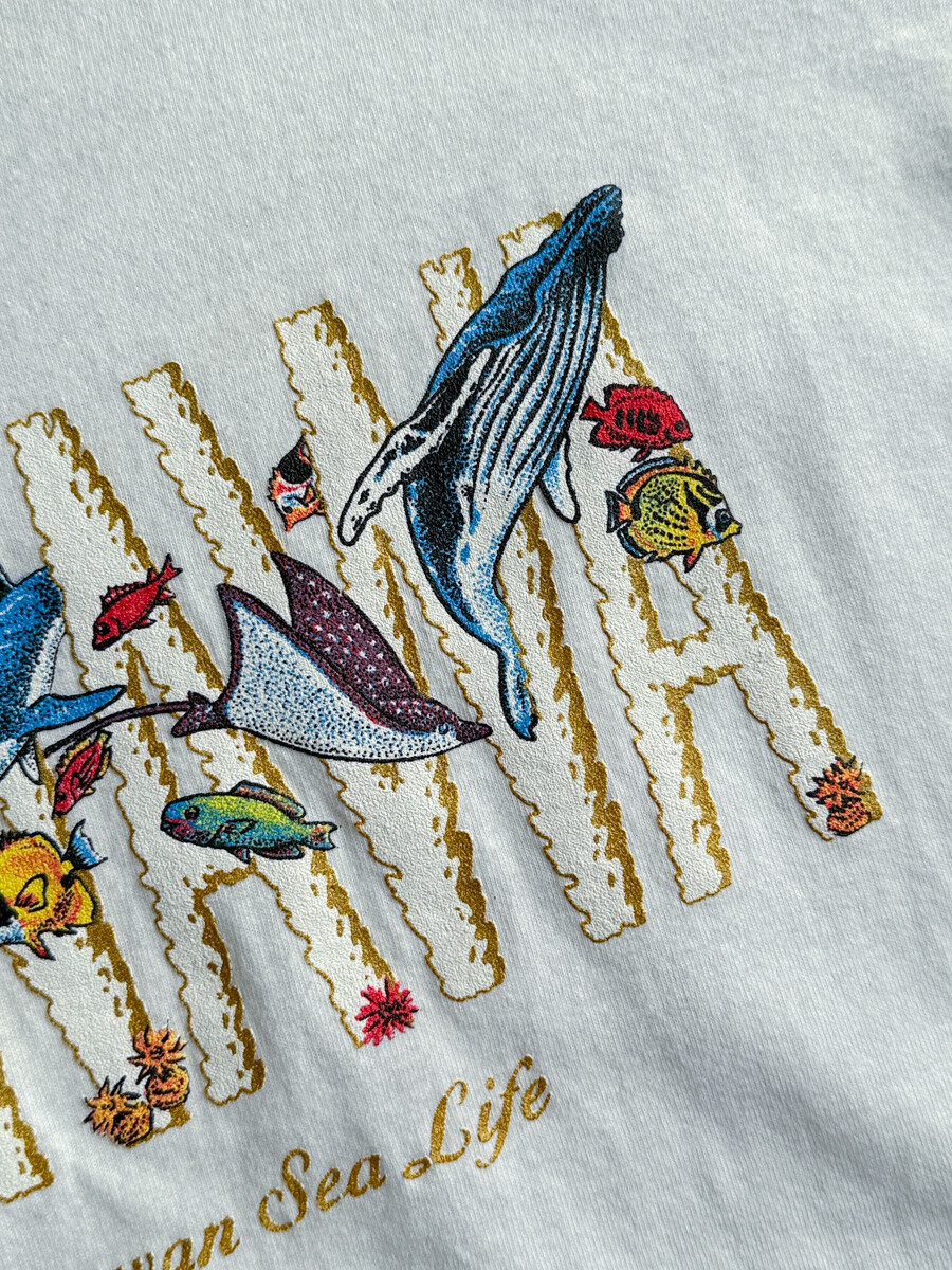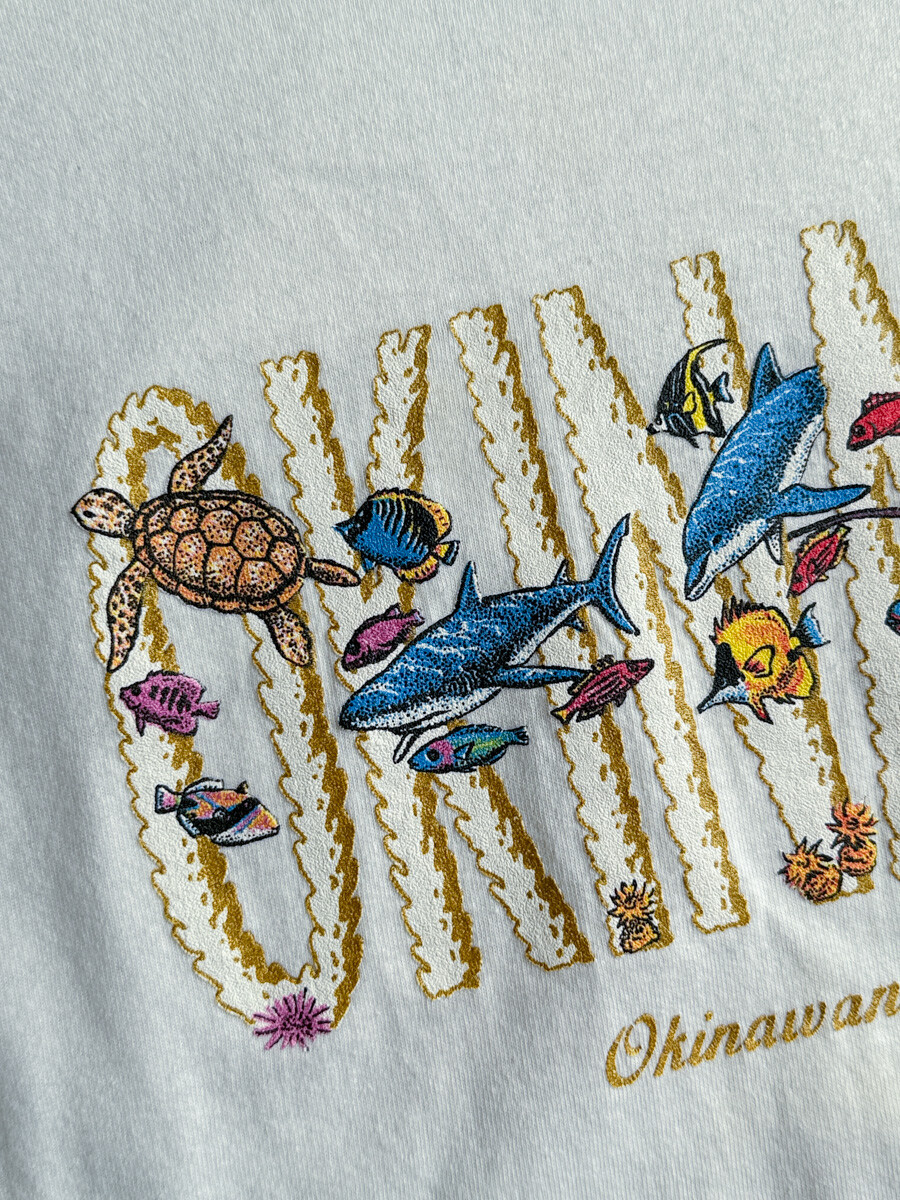 πΊπΈ 1990S USA Vintage - T Shirt (Natural White) *OKINAWA SEA LIFE