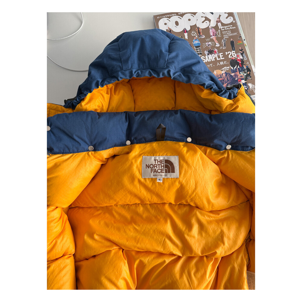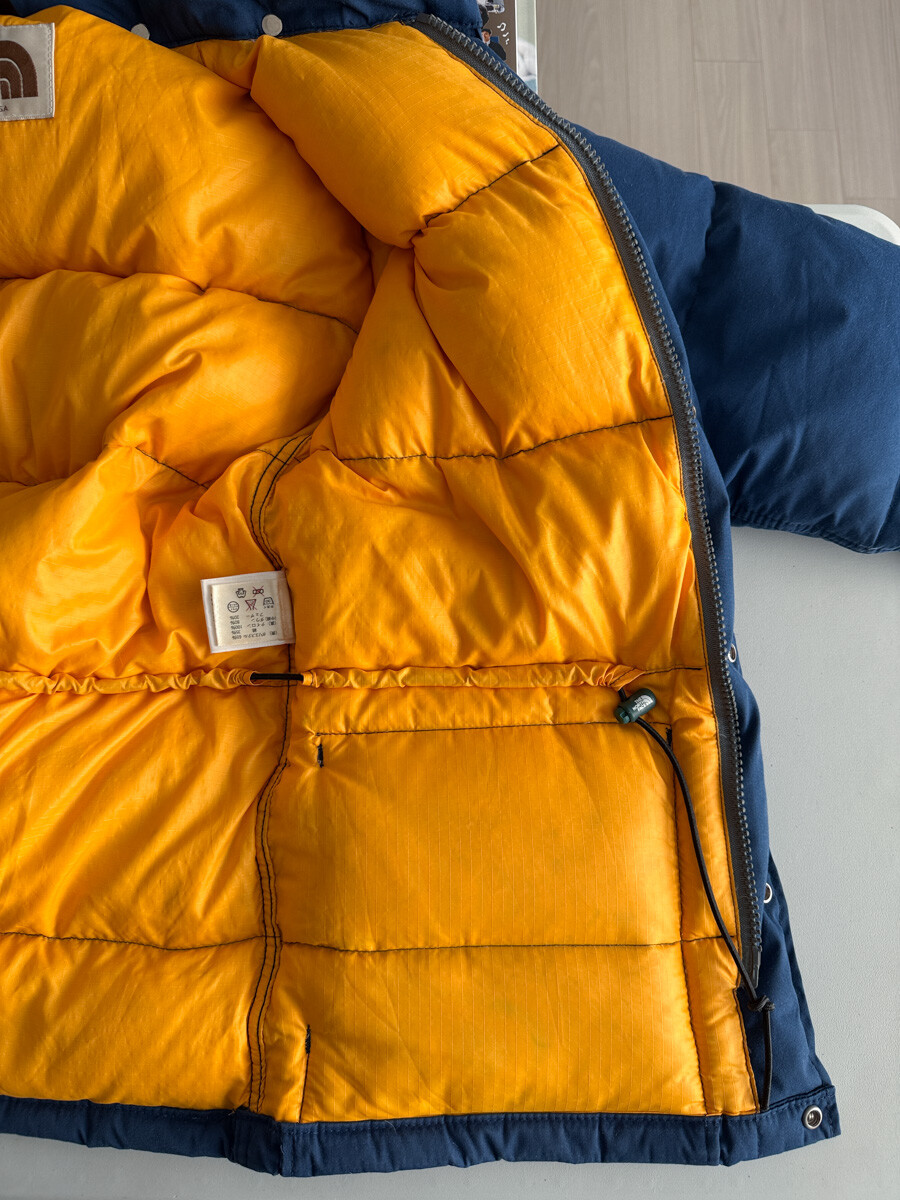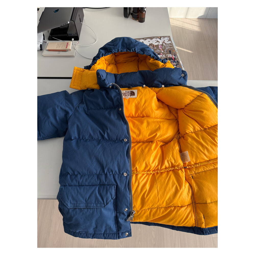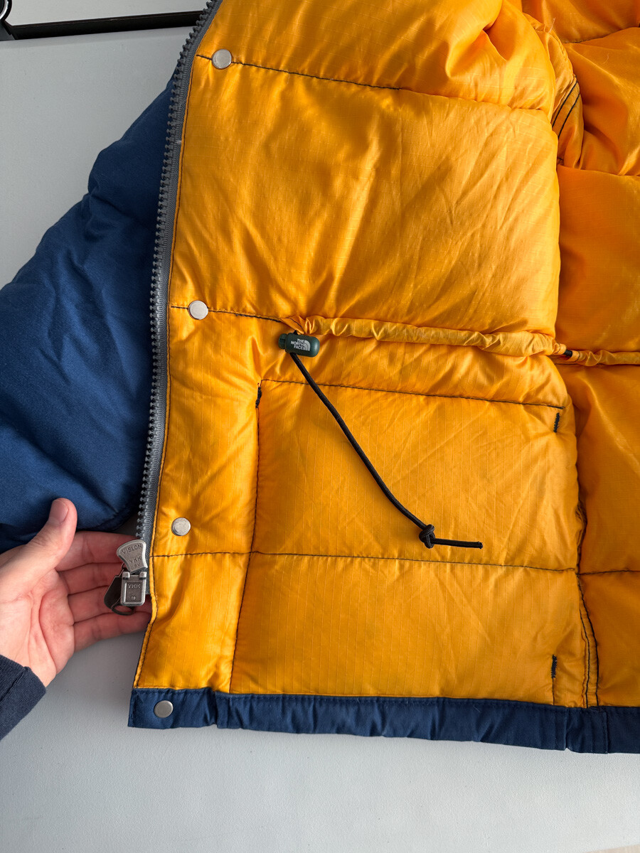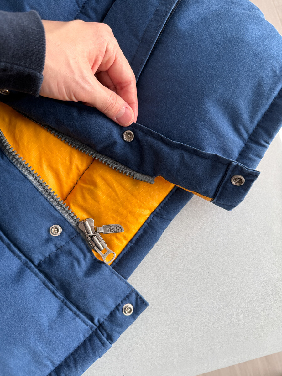 old THE NORTH FACE - Hood Down Puffer (Vintage Blue & Yellow) made in USA πΊπΈ