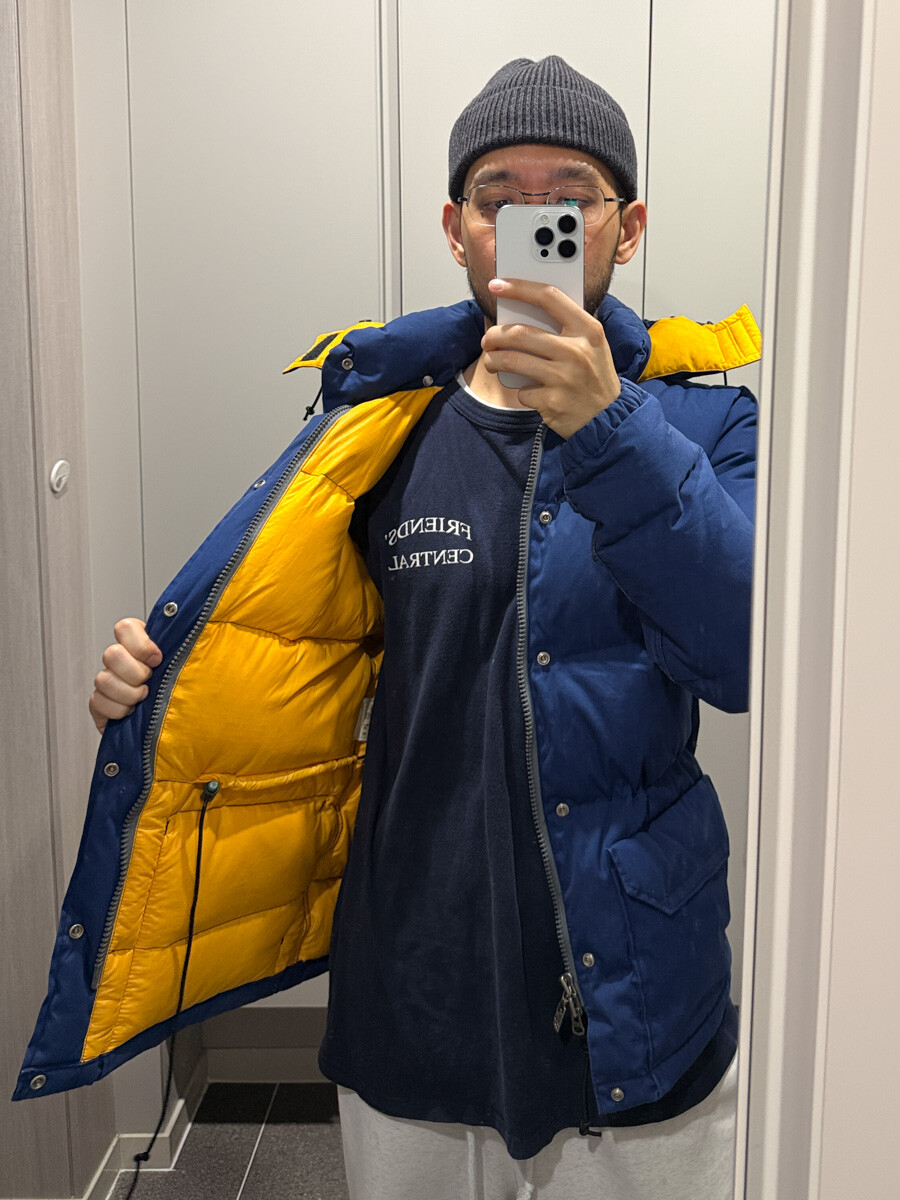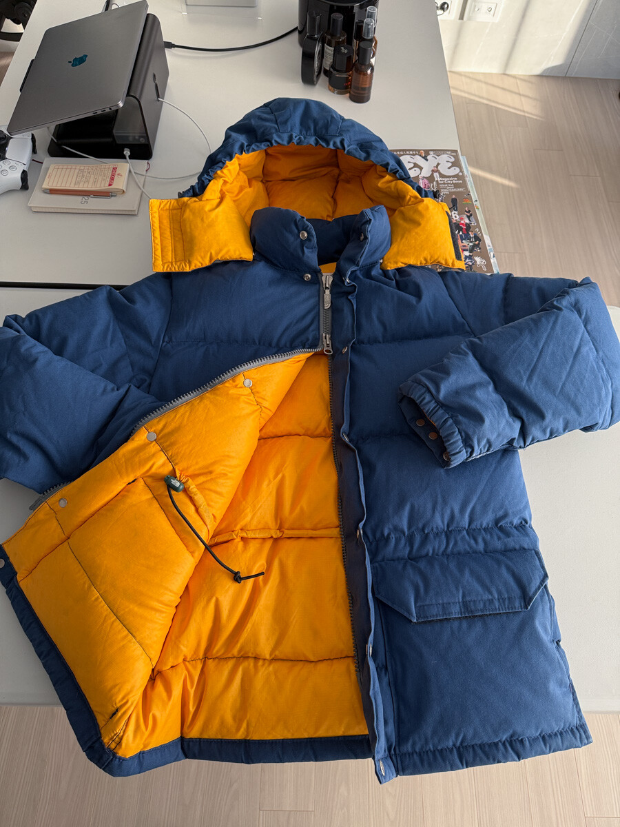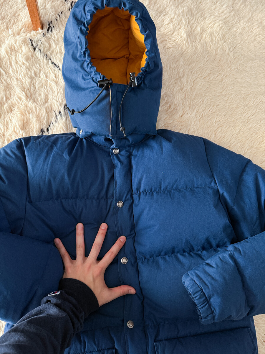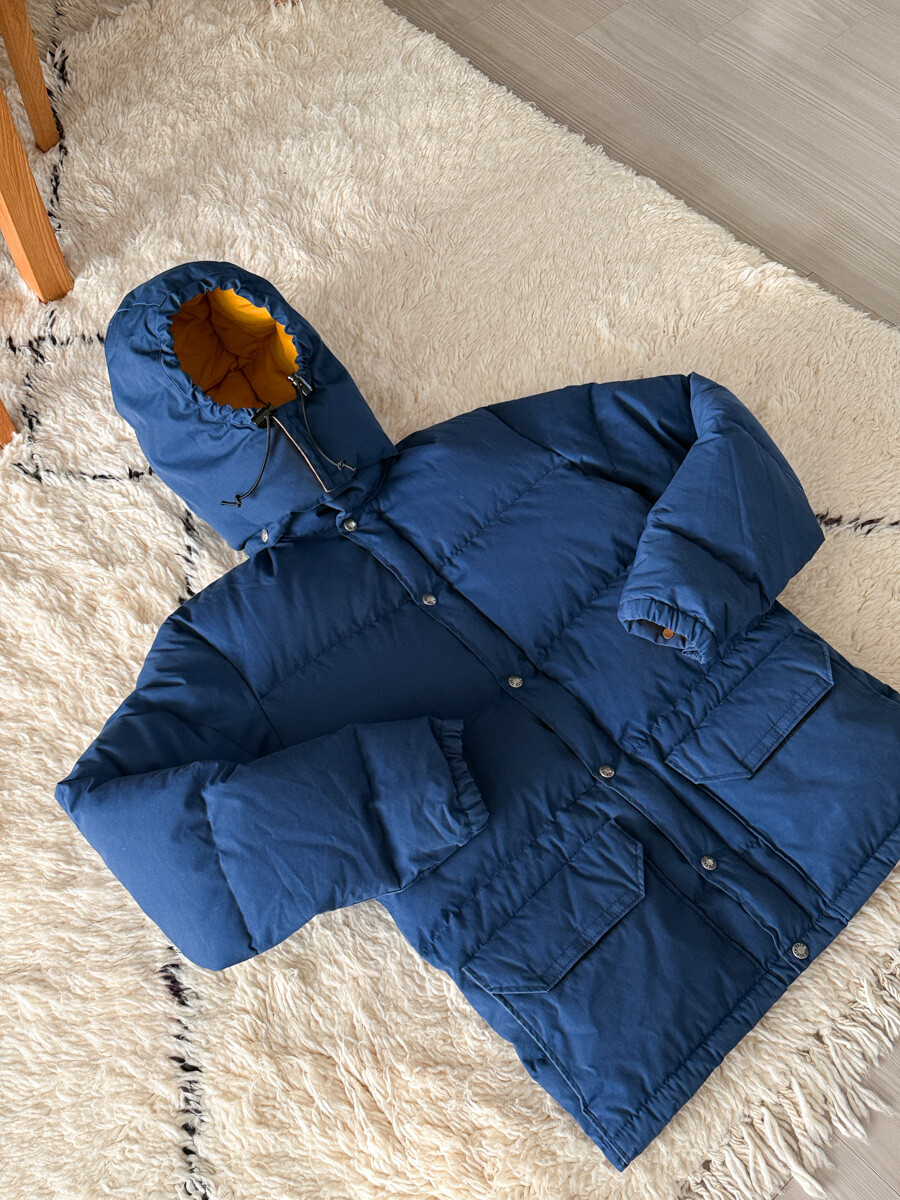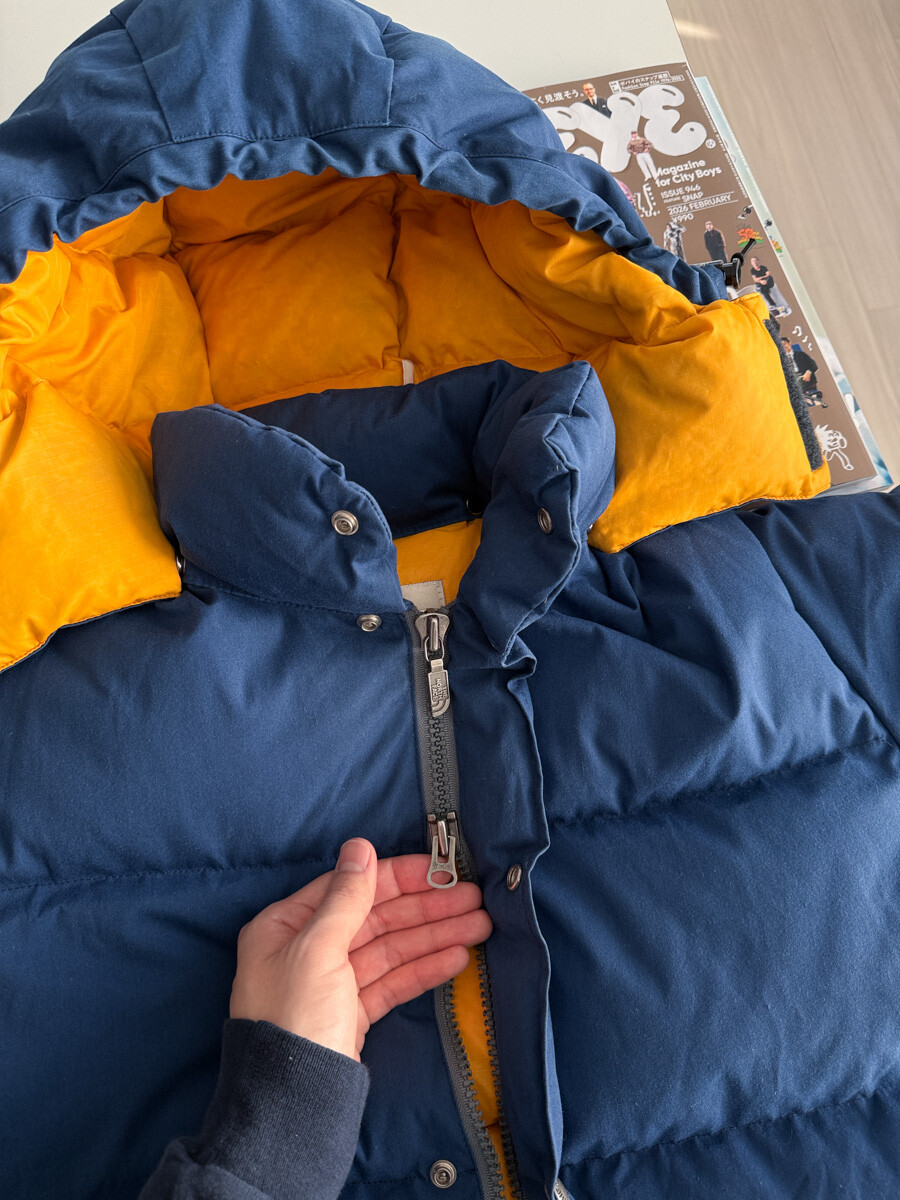 old THE NORTH FACE - Hood Down Puffer (Vintage Blue & Yellow) made in USA πΊπΈ
