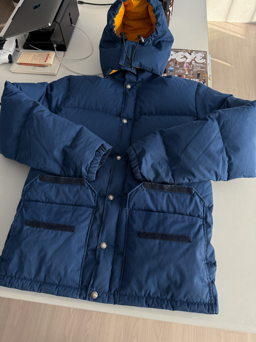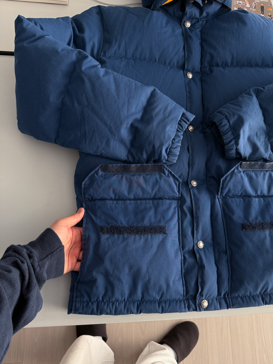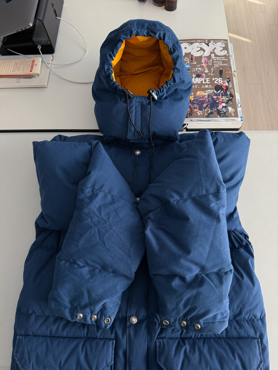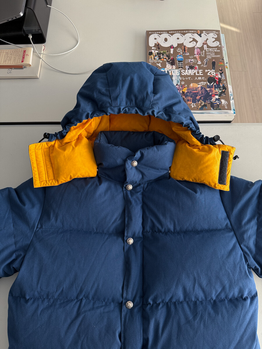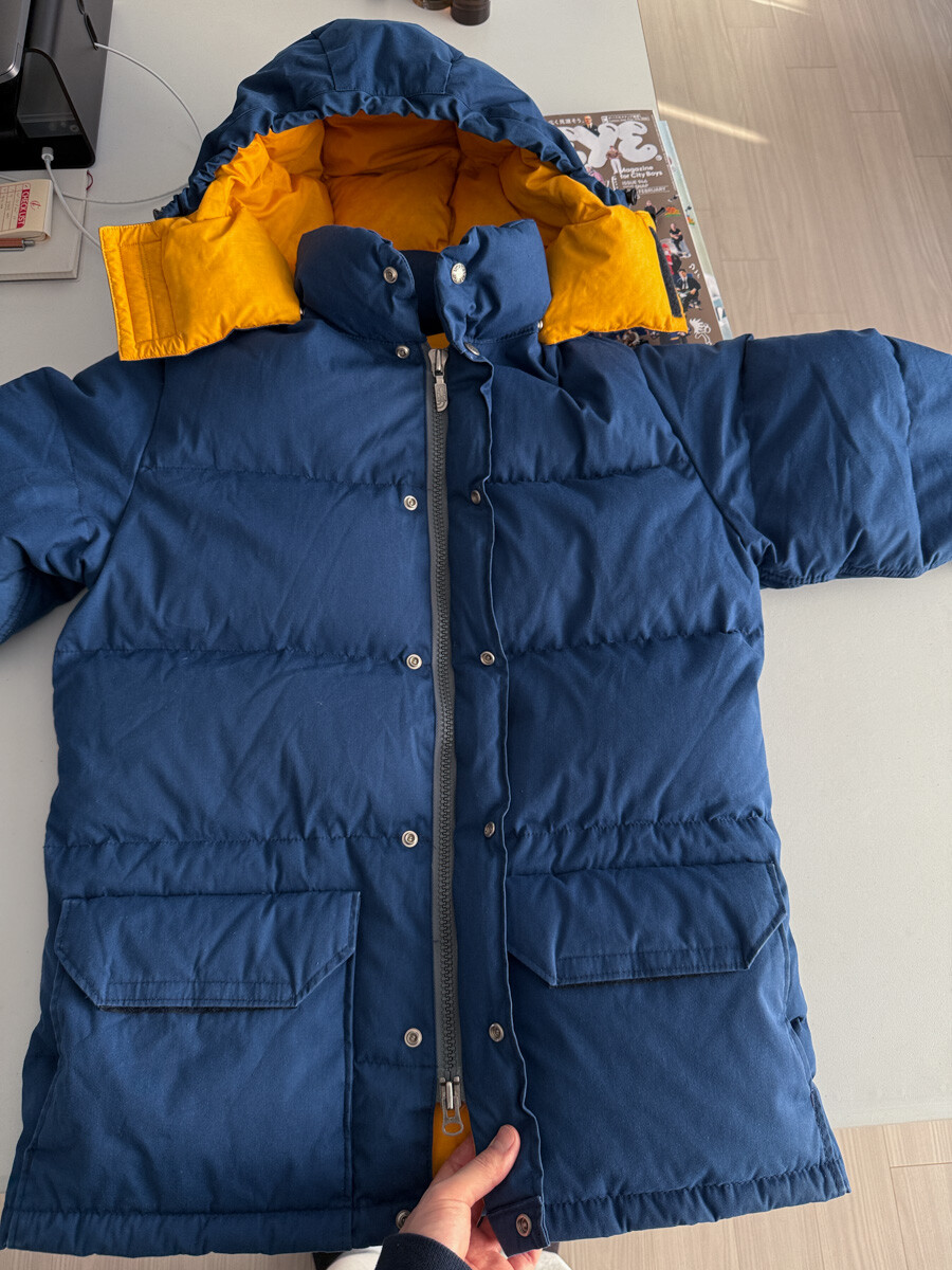 old THE NORTH FACE - Hood Down Puffer (Vintage Blue & Yellow) made in USA πΊπΈ