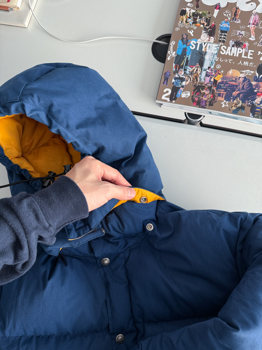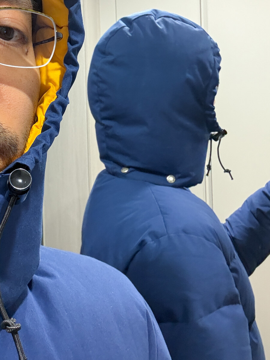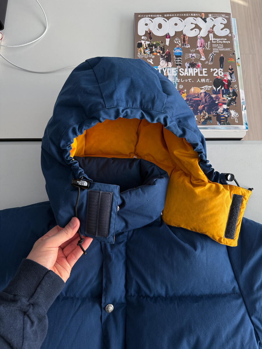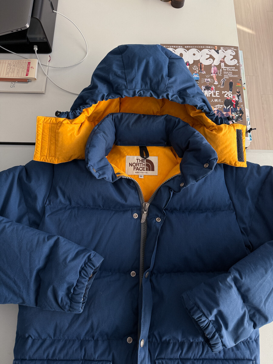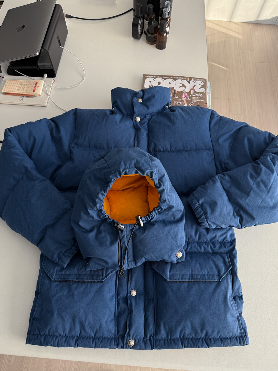 old THE NORTH FACE - Hood Down Puffer (Vintage Blue & Yellow) made in USA πΊπΈ