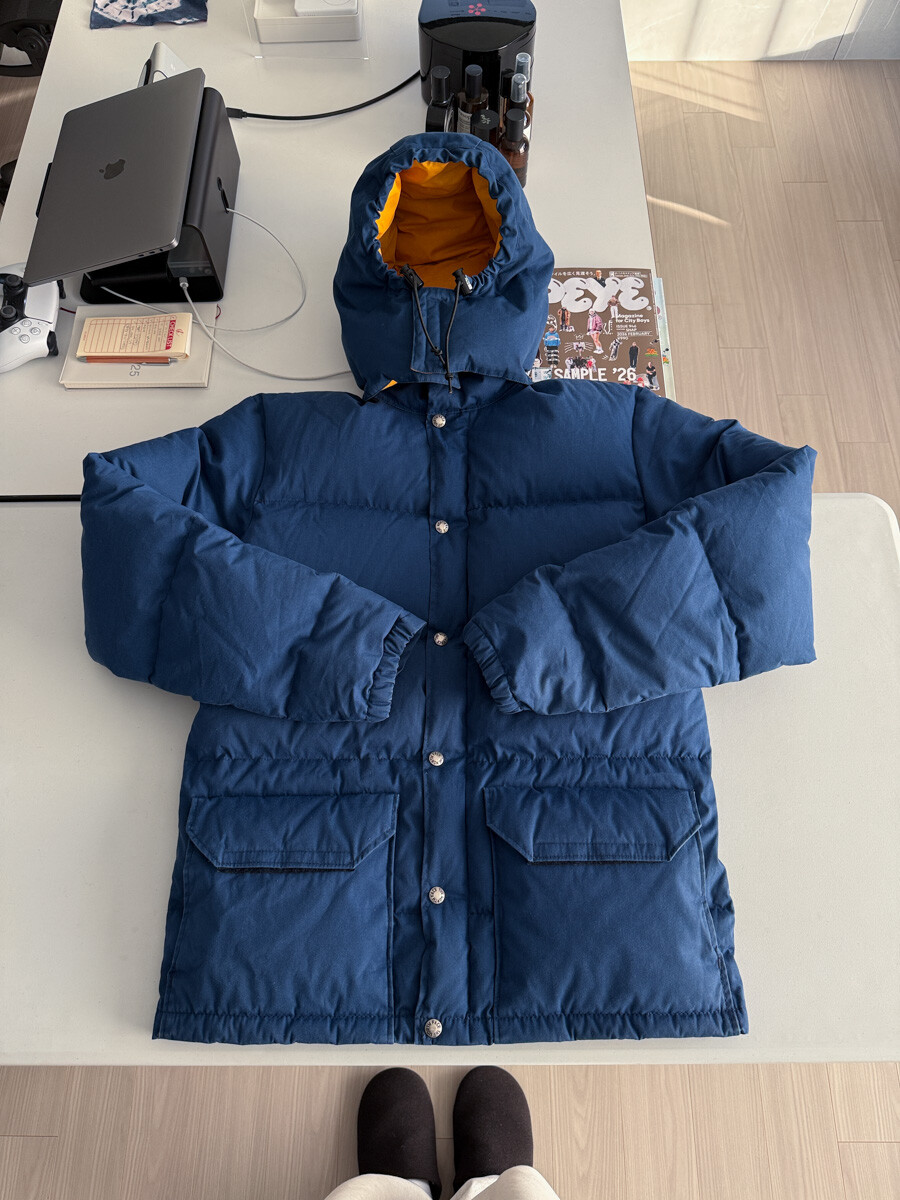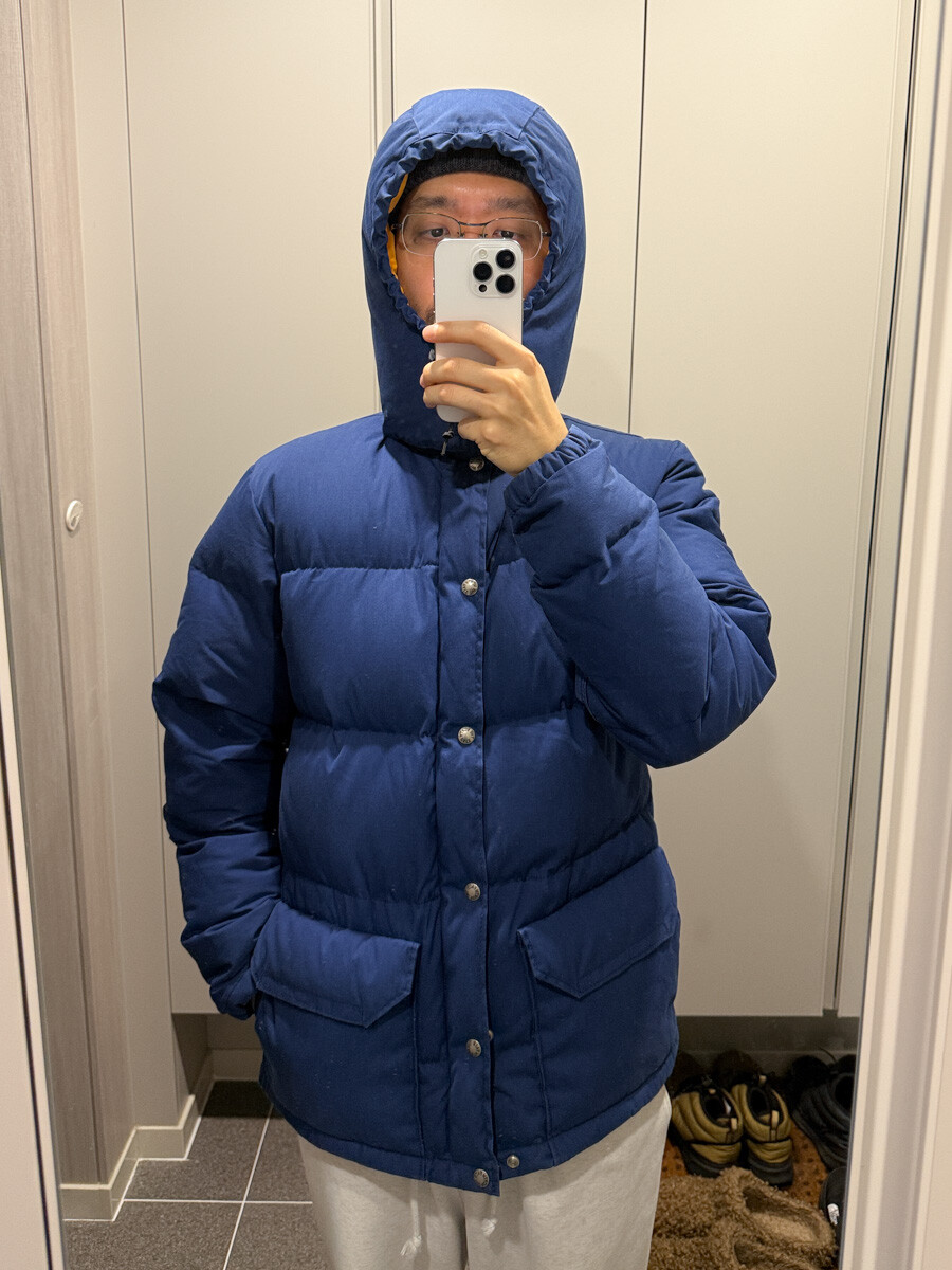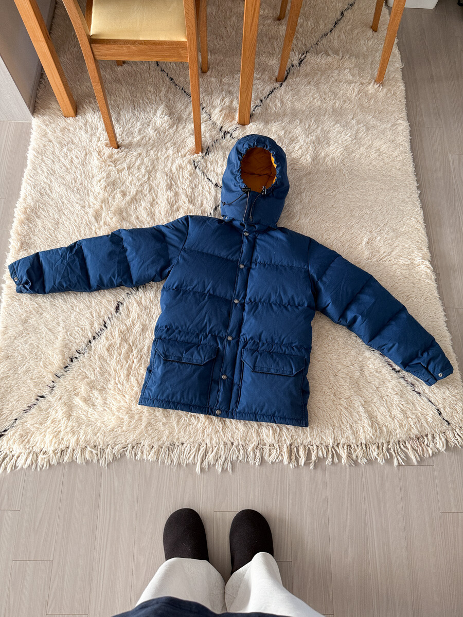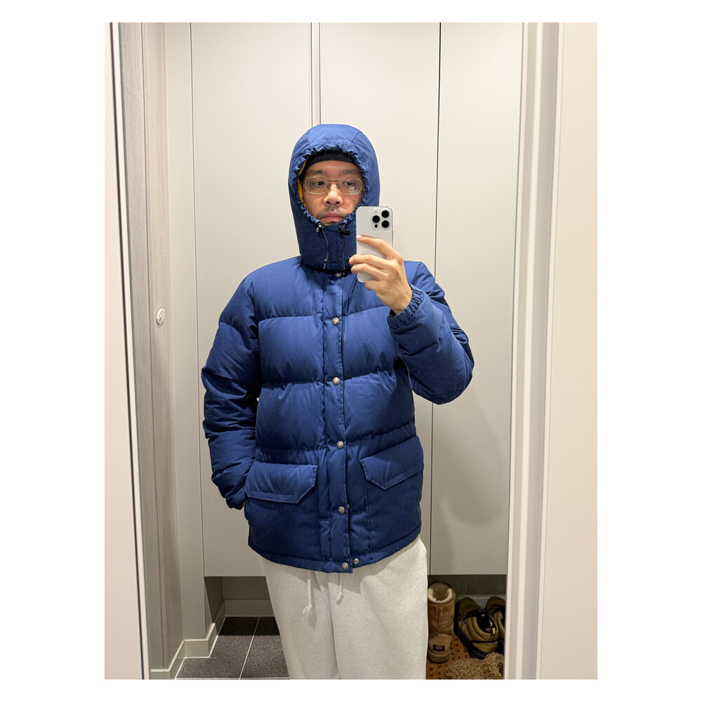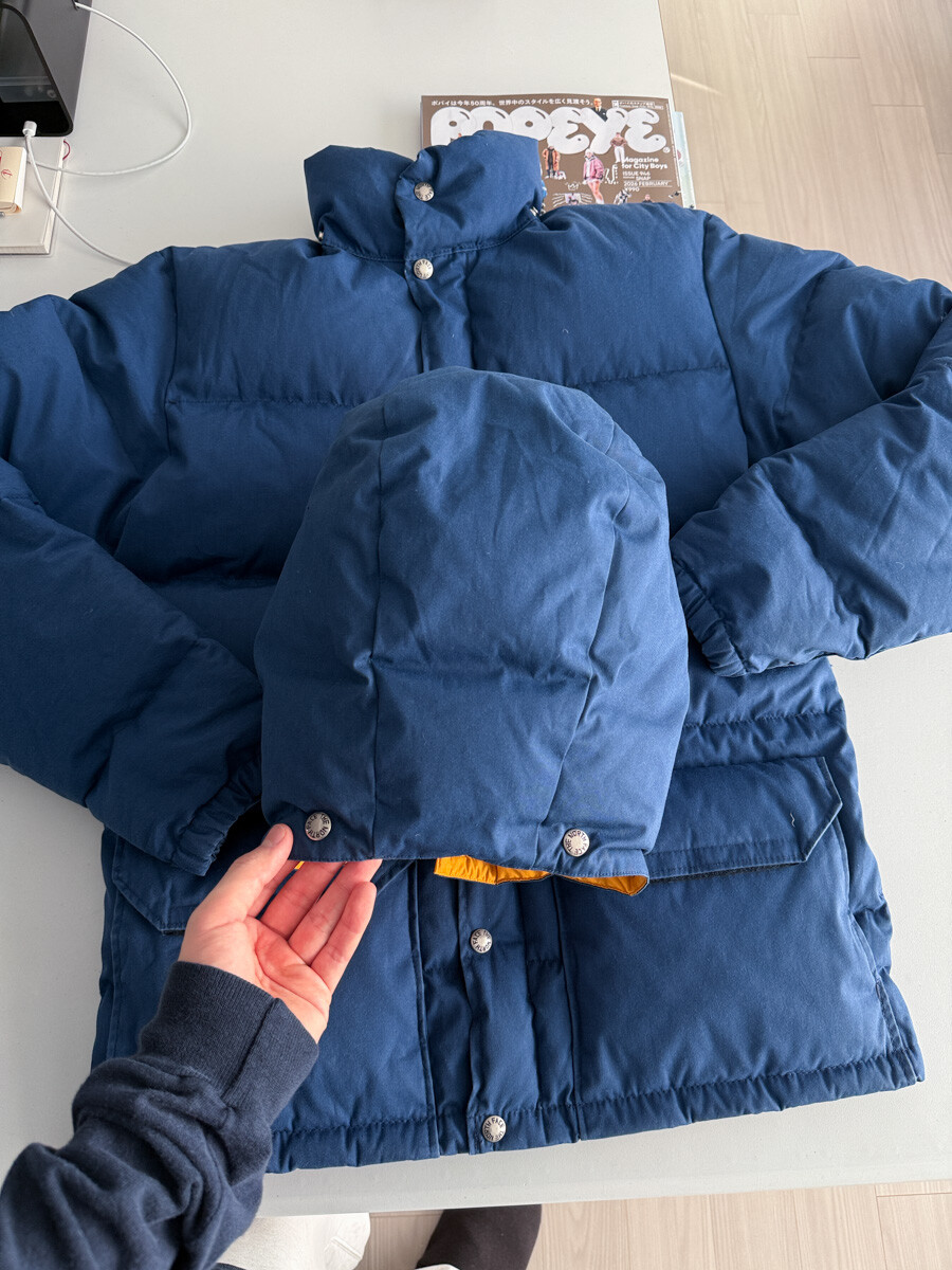old THE NORTH FACE - Hood Down Puffer (Vintage Blue & Yellow) made in USA πΊπΈ