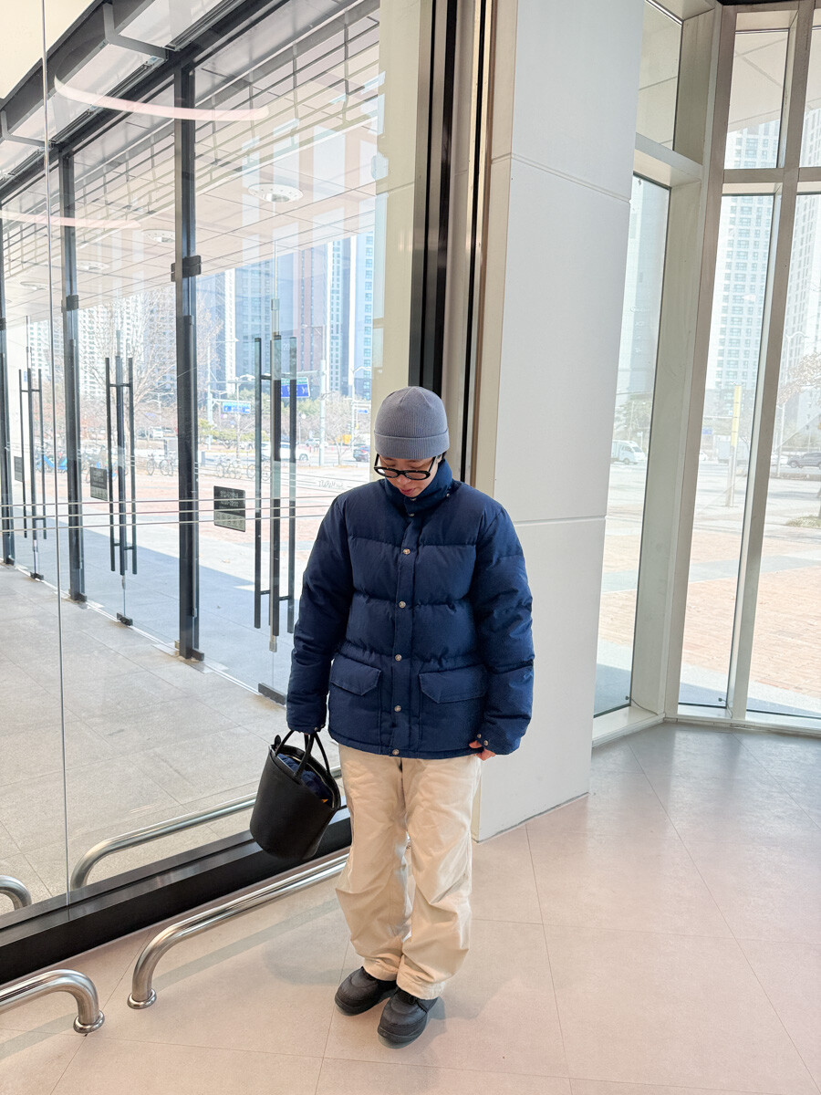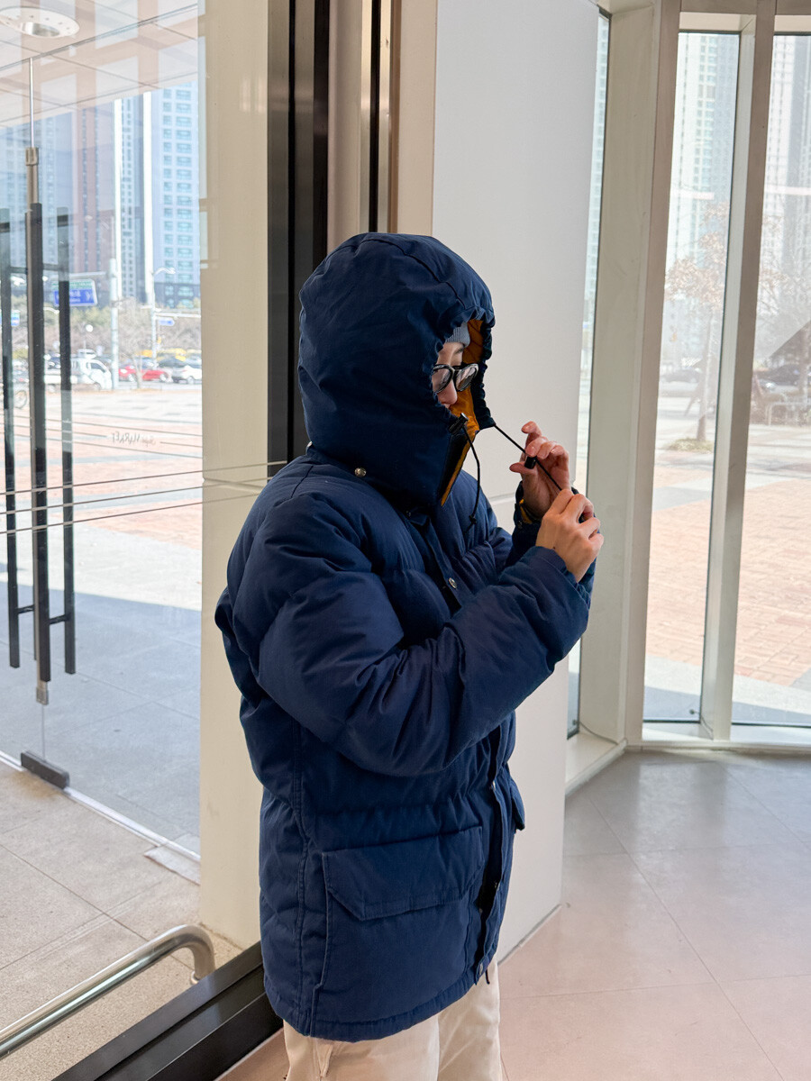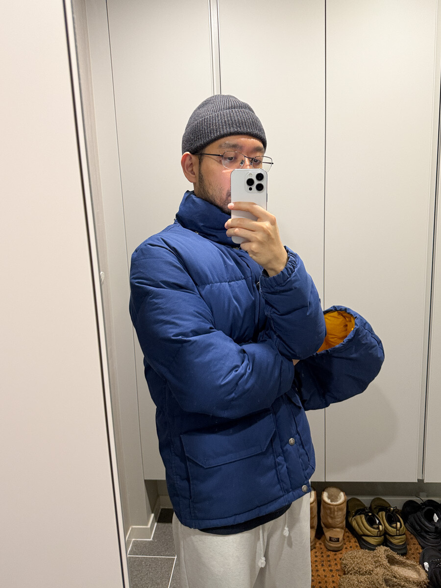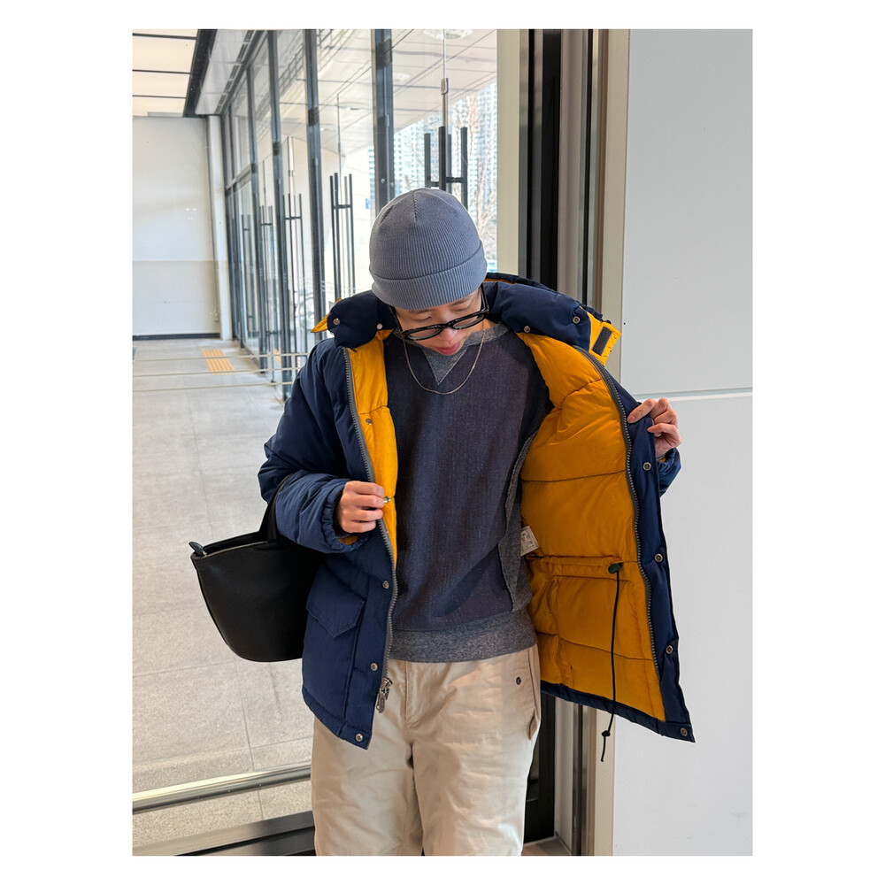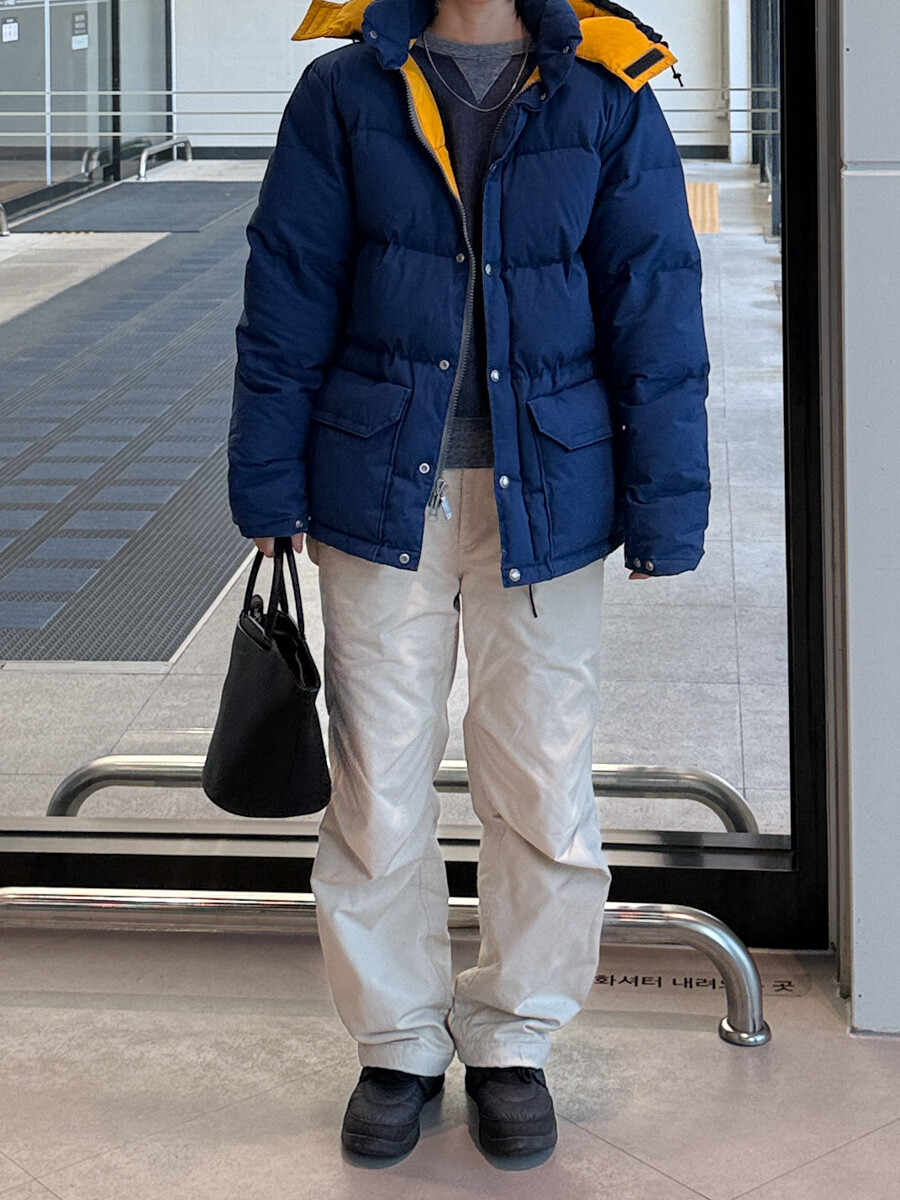 old THE NORTH FACE - Hood Down Puffer (Vintage Blue & Yellow) made in USA πΊπΈ