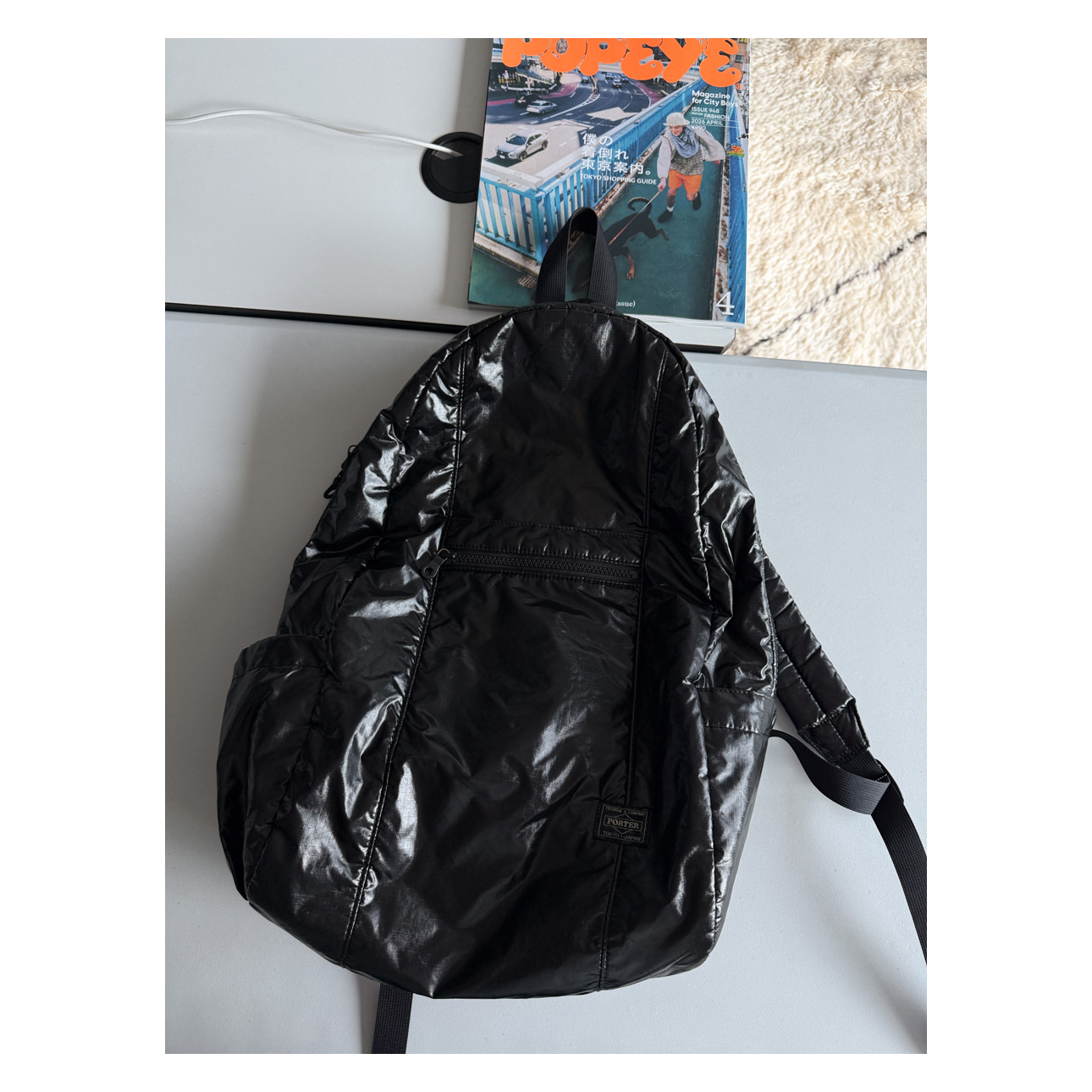 소재의 반짝이는 질감에 맞춰 디자인된 PORTER 라벨,