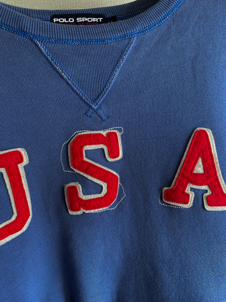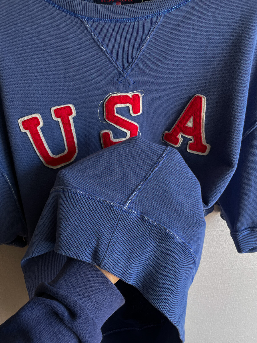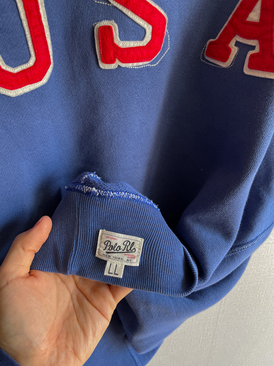 1990S POLO RALPH LAUREN - USA SWEATSHIRT Half (Vintage Blue)