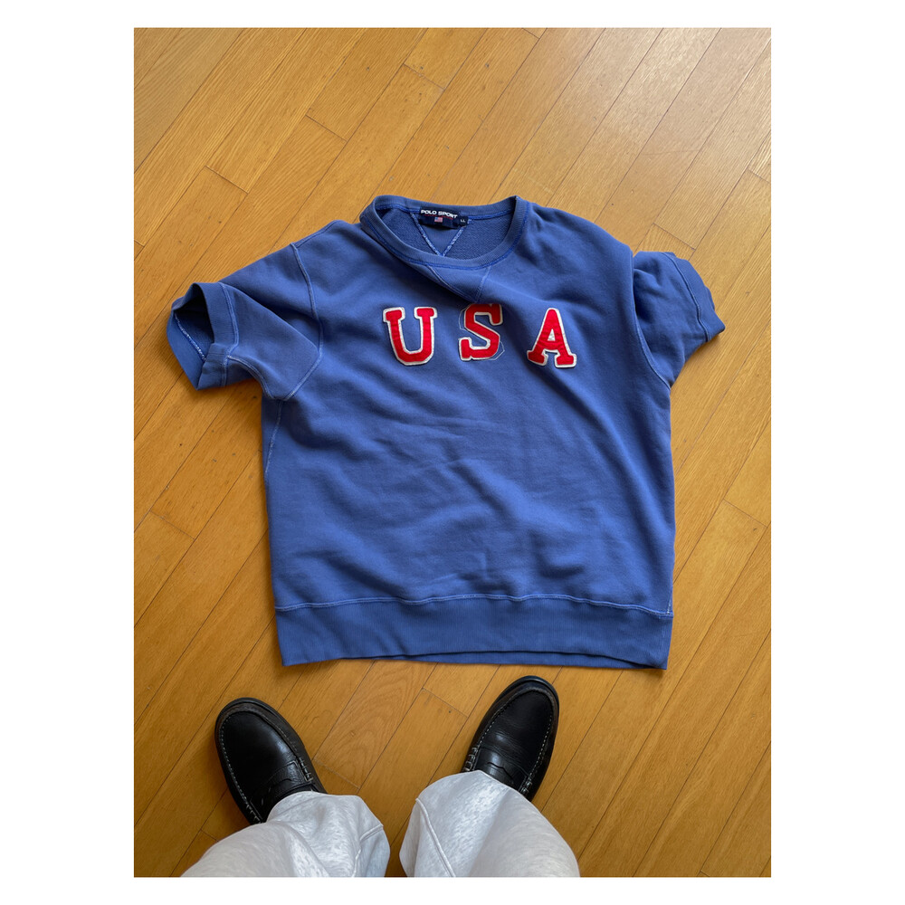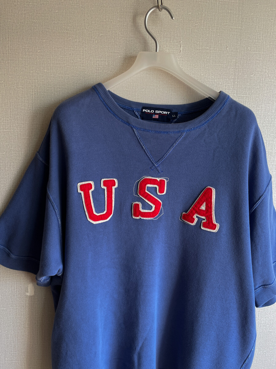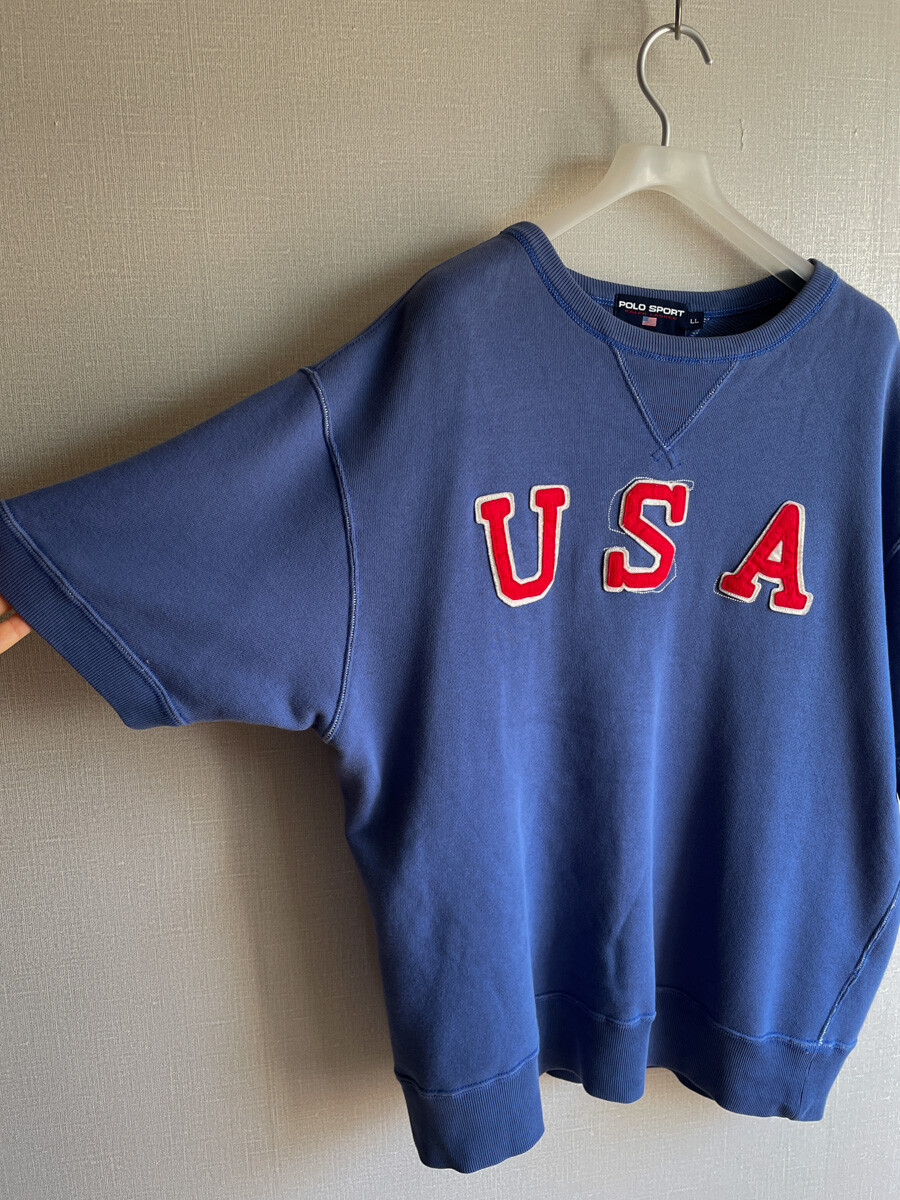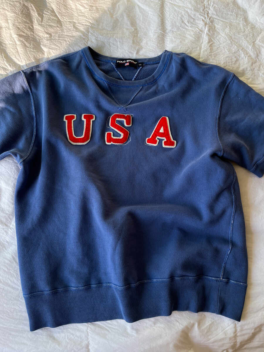 1990S POLO RALPH LAUREN - USA SWEATSHIRT Half (Vintage Blue)