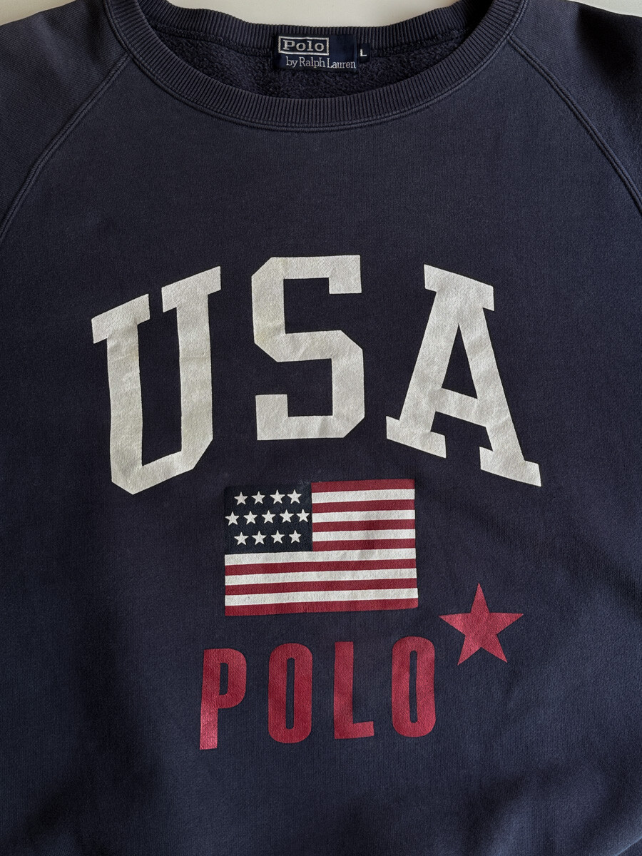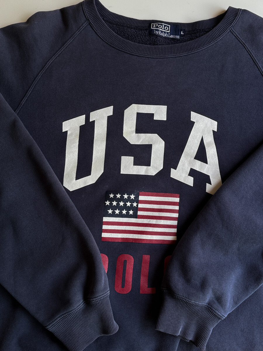 1990S POLO RALPH LAUREN - USA SWEATSHIRT (Fade Navy)