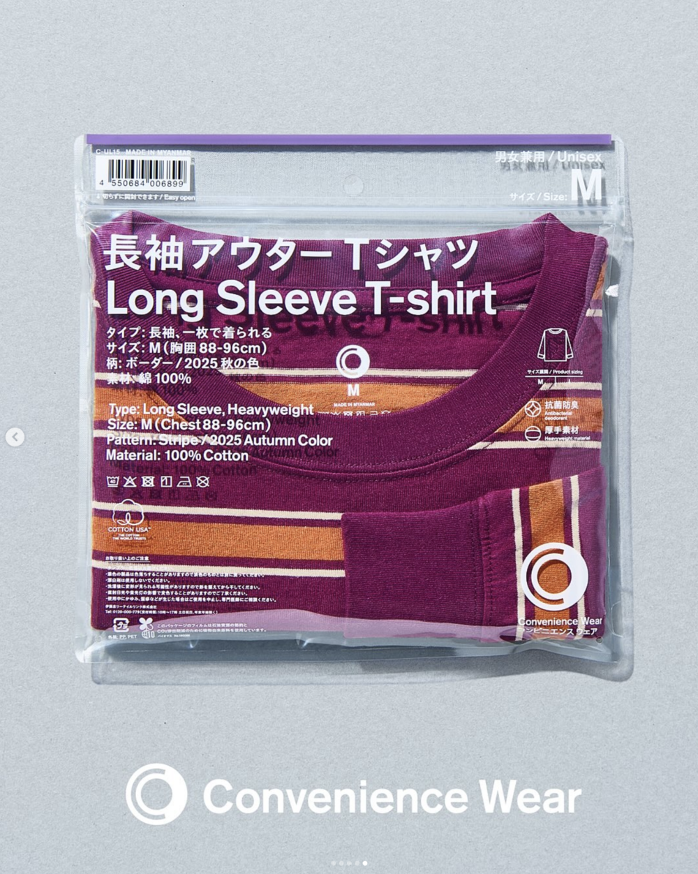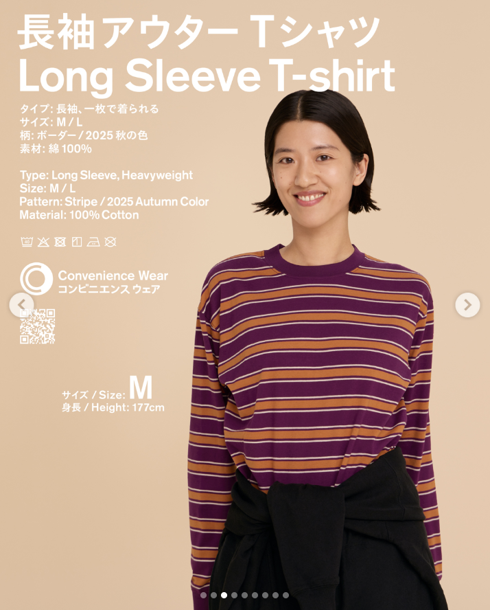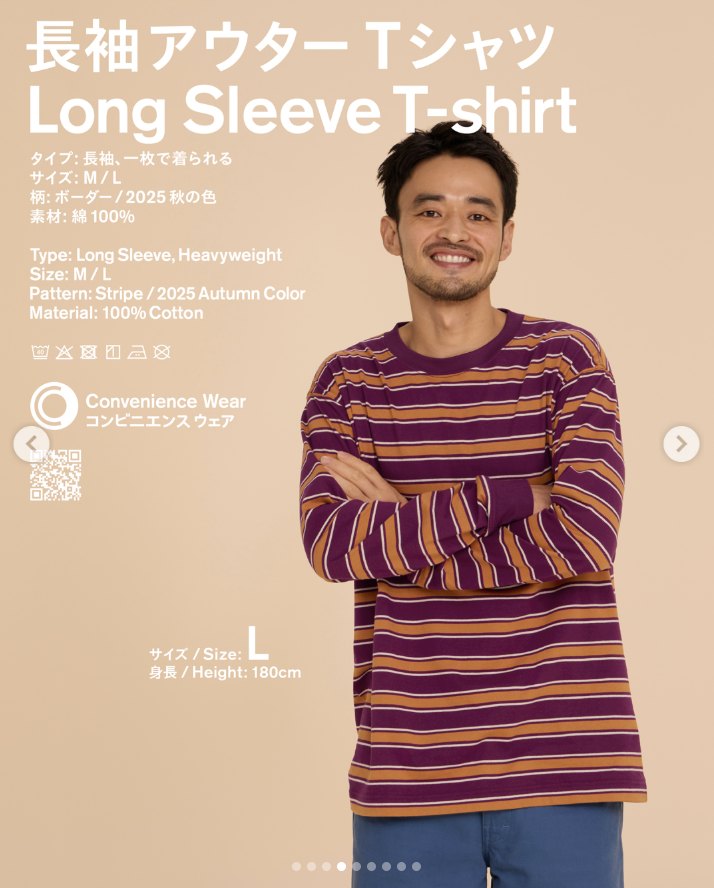 Convenience Wear - Long Sleeved Outer T shirt (Stripe / Sweet Potatoes & Carrots)