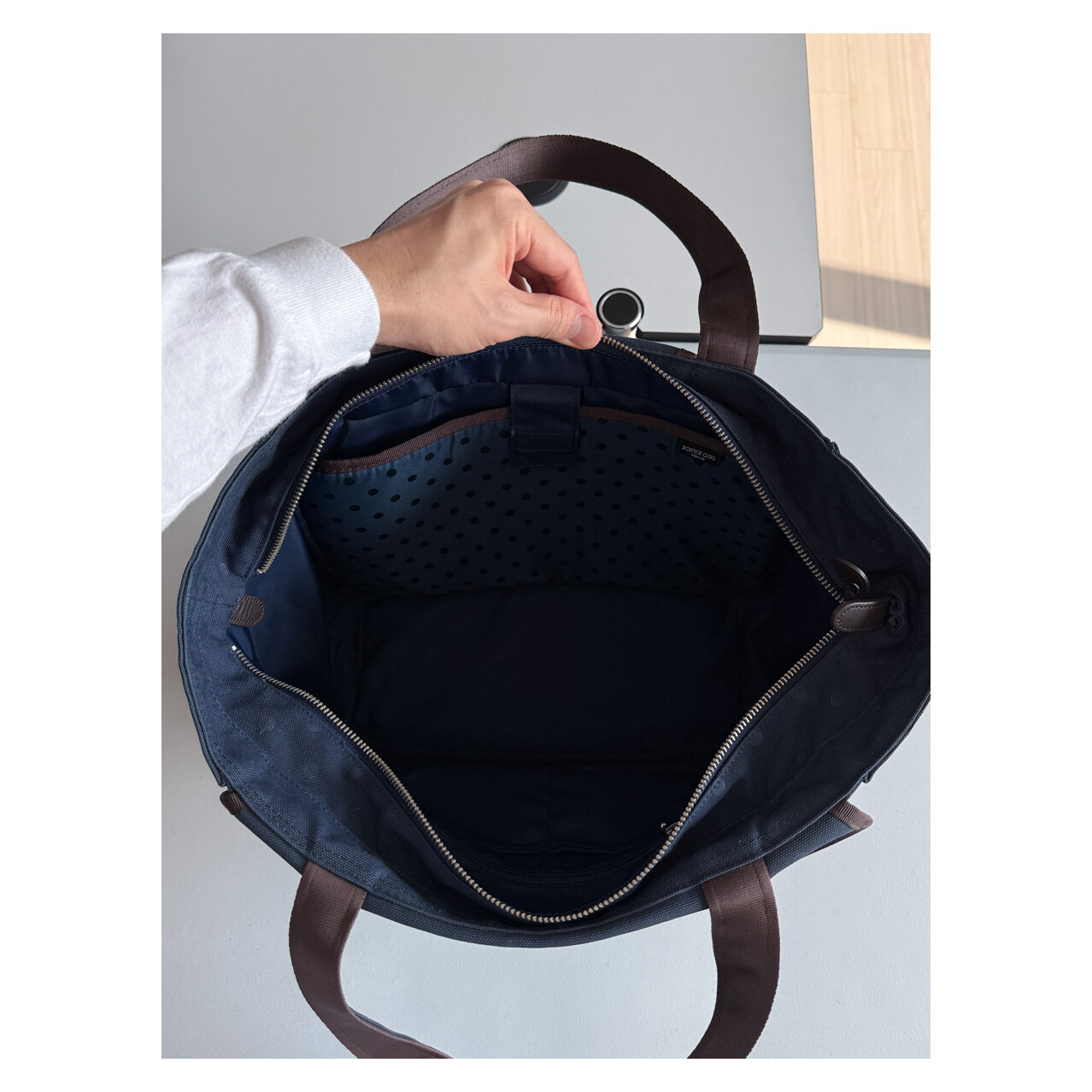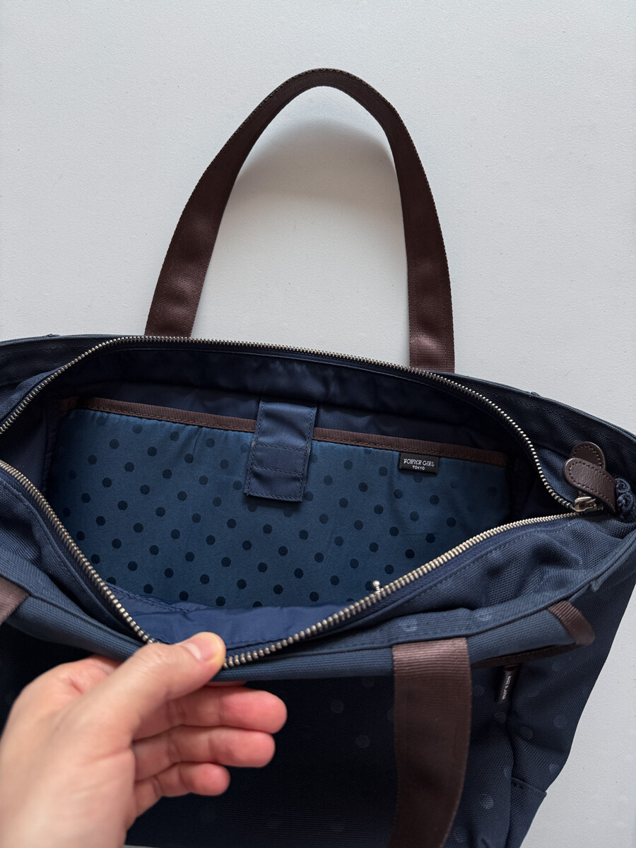PORTER GIRL - Tote Bag Small (Navy & Hidden Dot)
