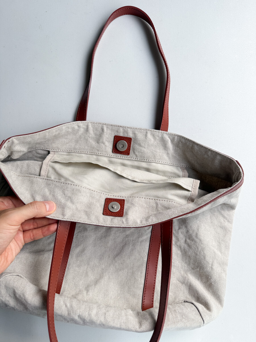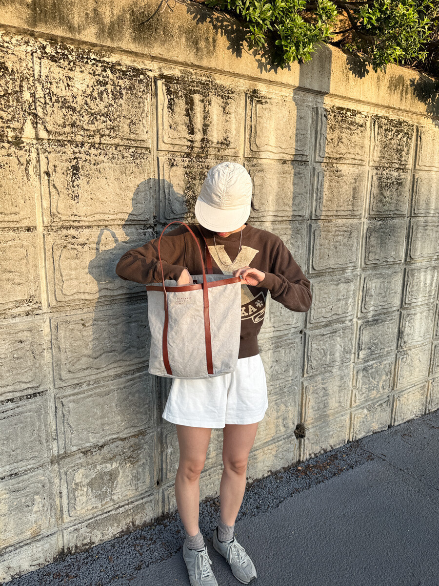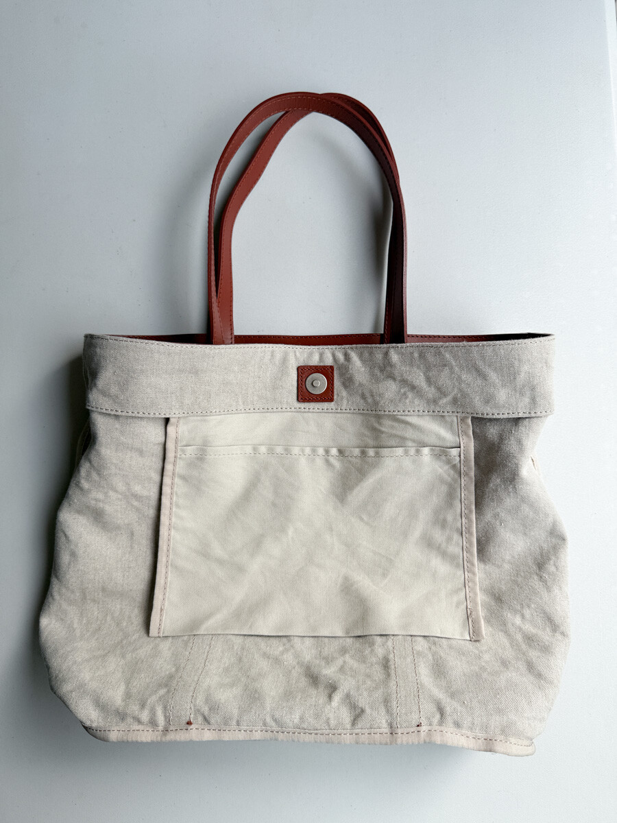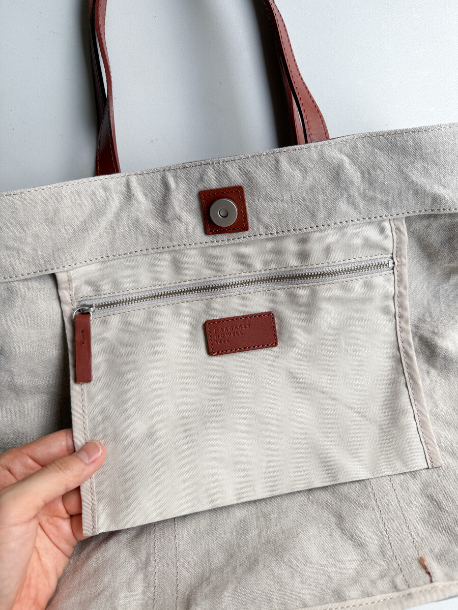 MARGARET HOWELL - Linen Tote Bag (Oatmeal / Wine Brown)