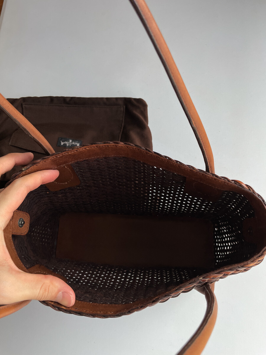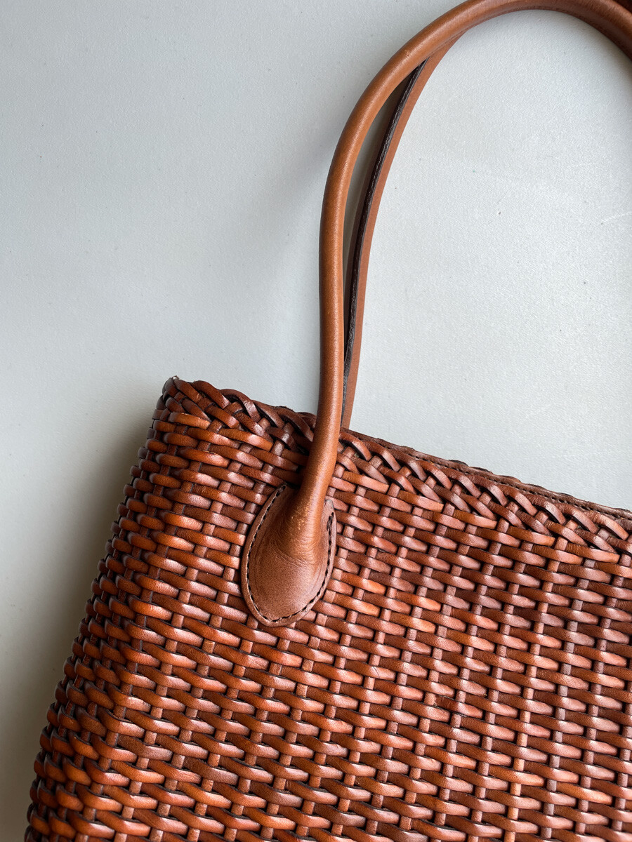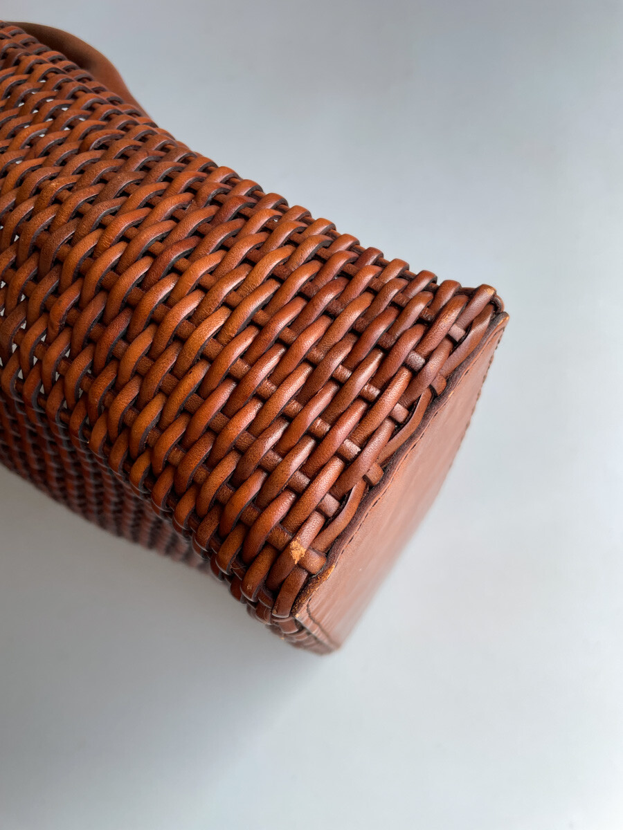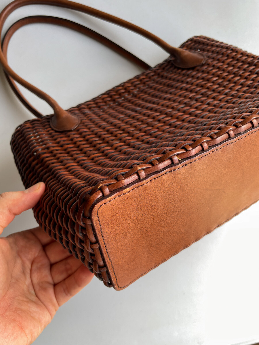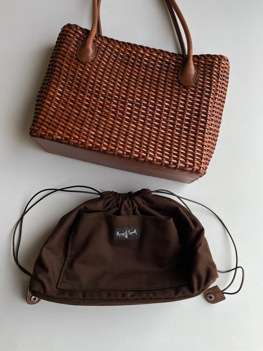 old MARGARET HOWELL - Leather Weaving Square Tote Bag M (Natural Brown)