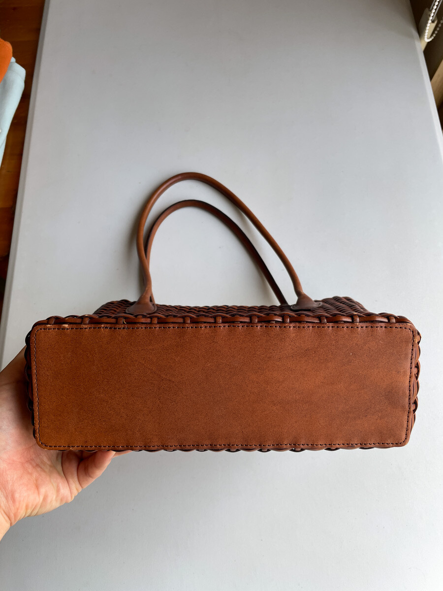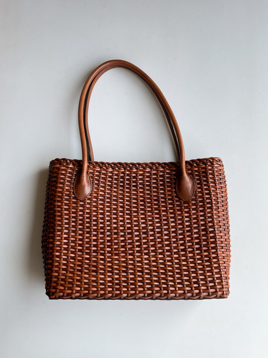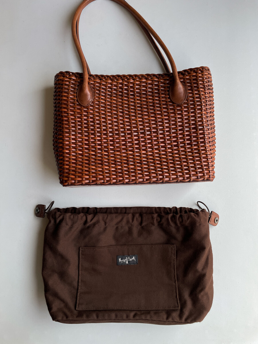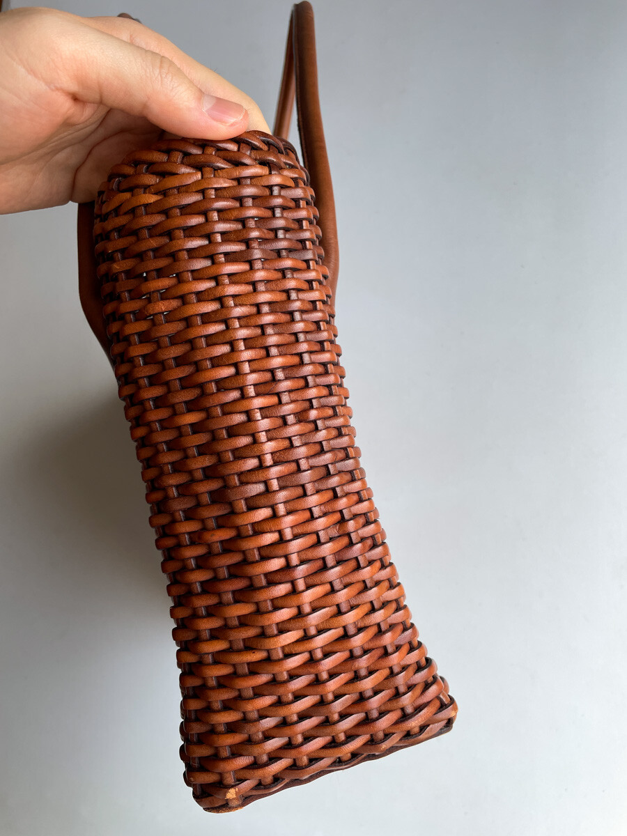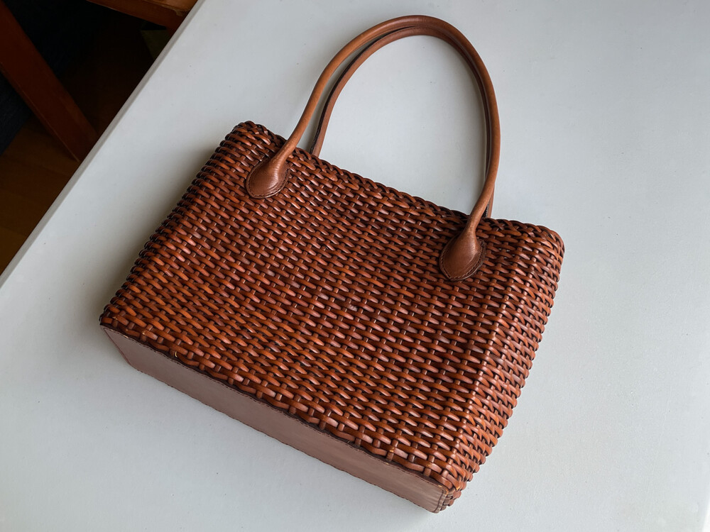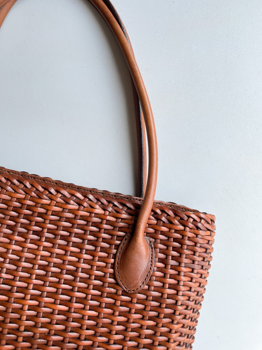 old MARGARET HOWELL - Leather Weaving Square Tote Bag M (Natural Brown)