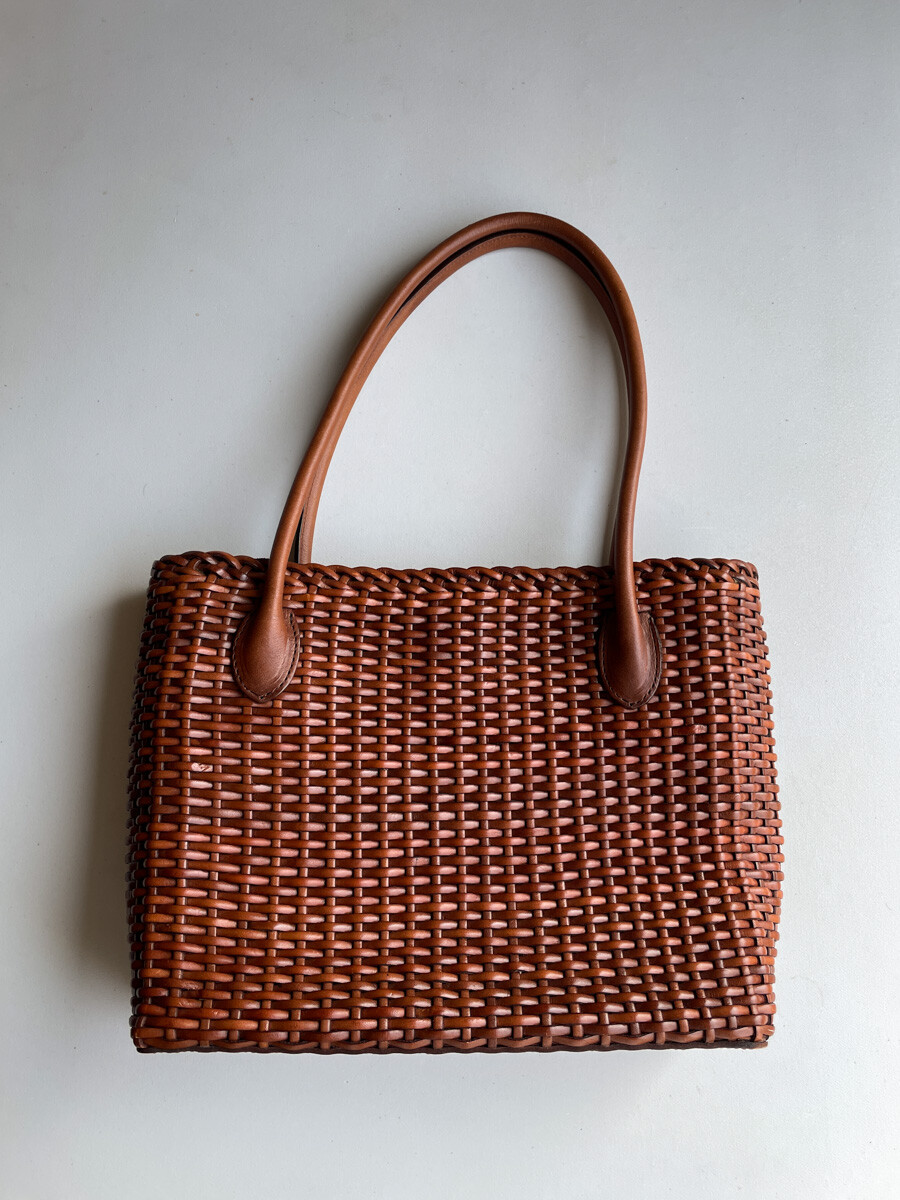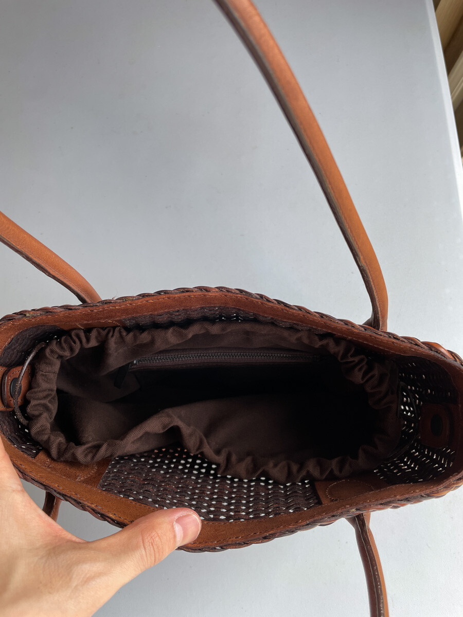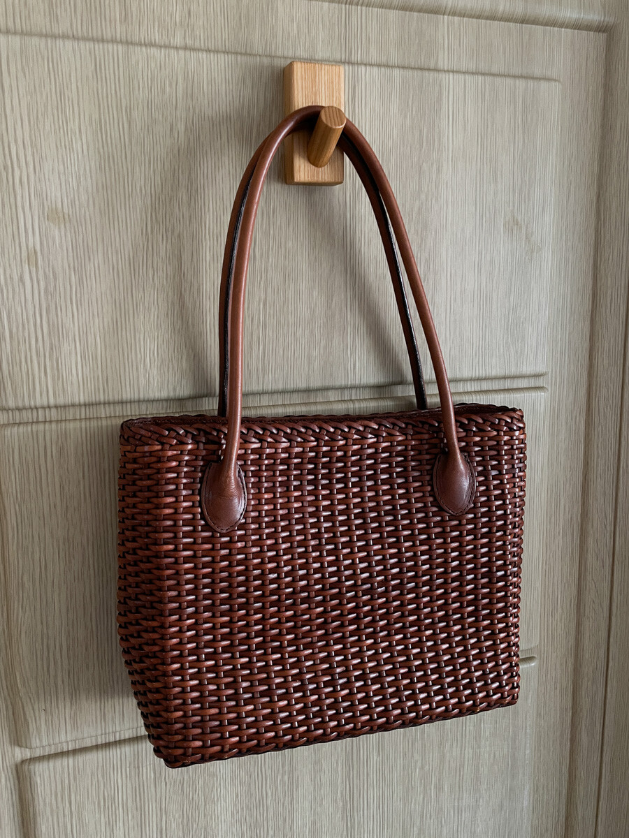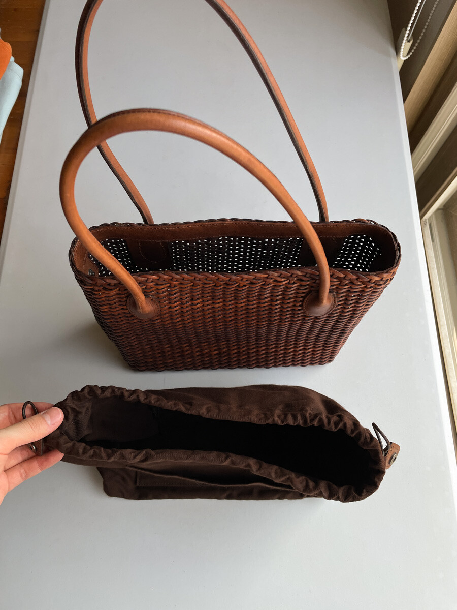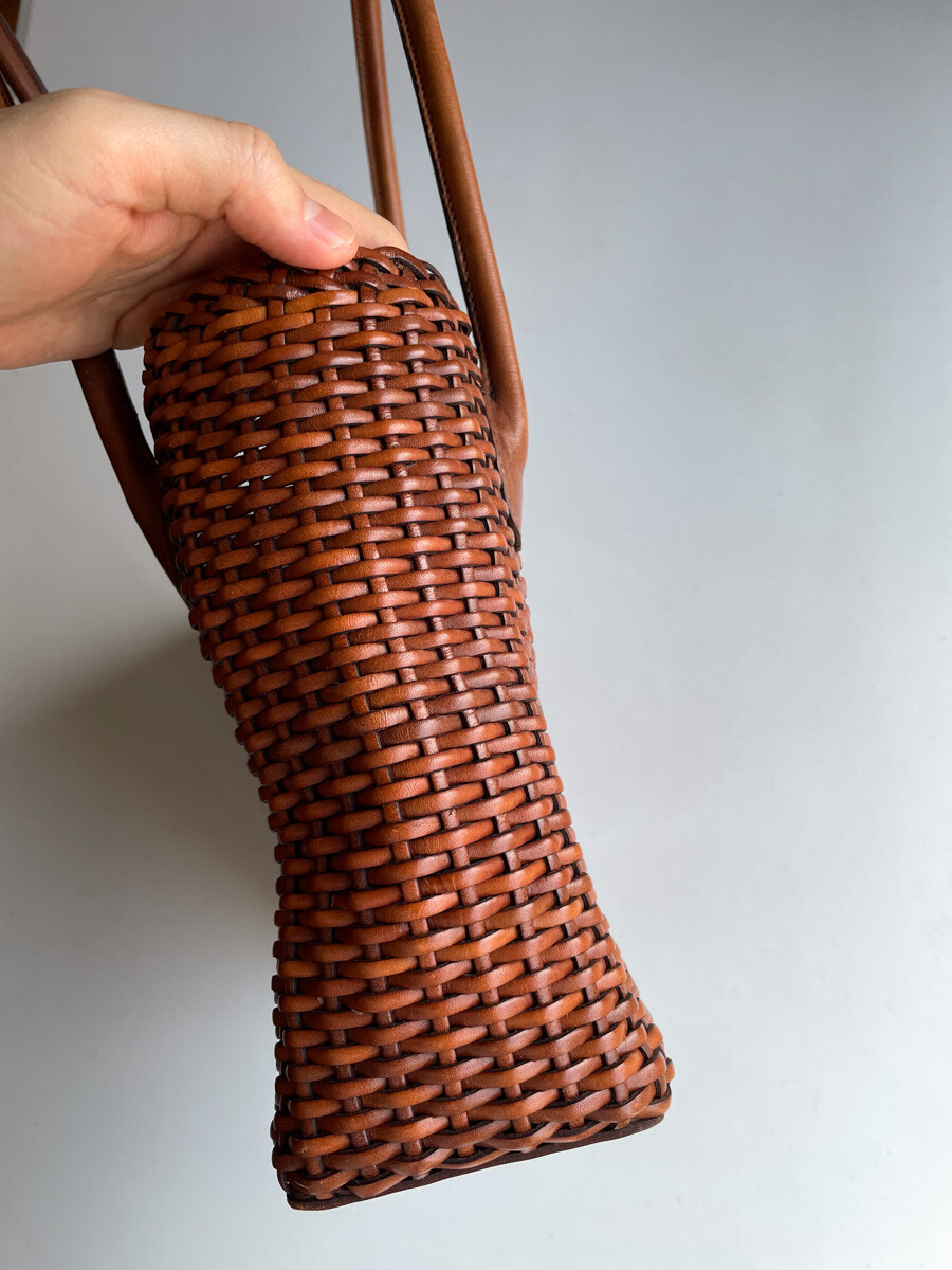 old MARGARET HOWELL - Leather Weaving Square Tote Bag M (Natural Brown)