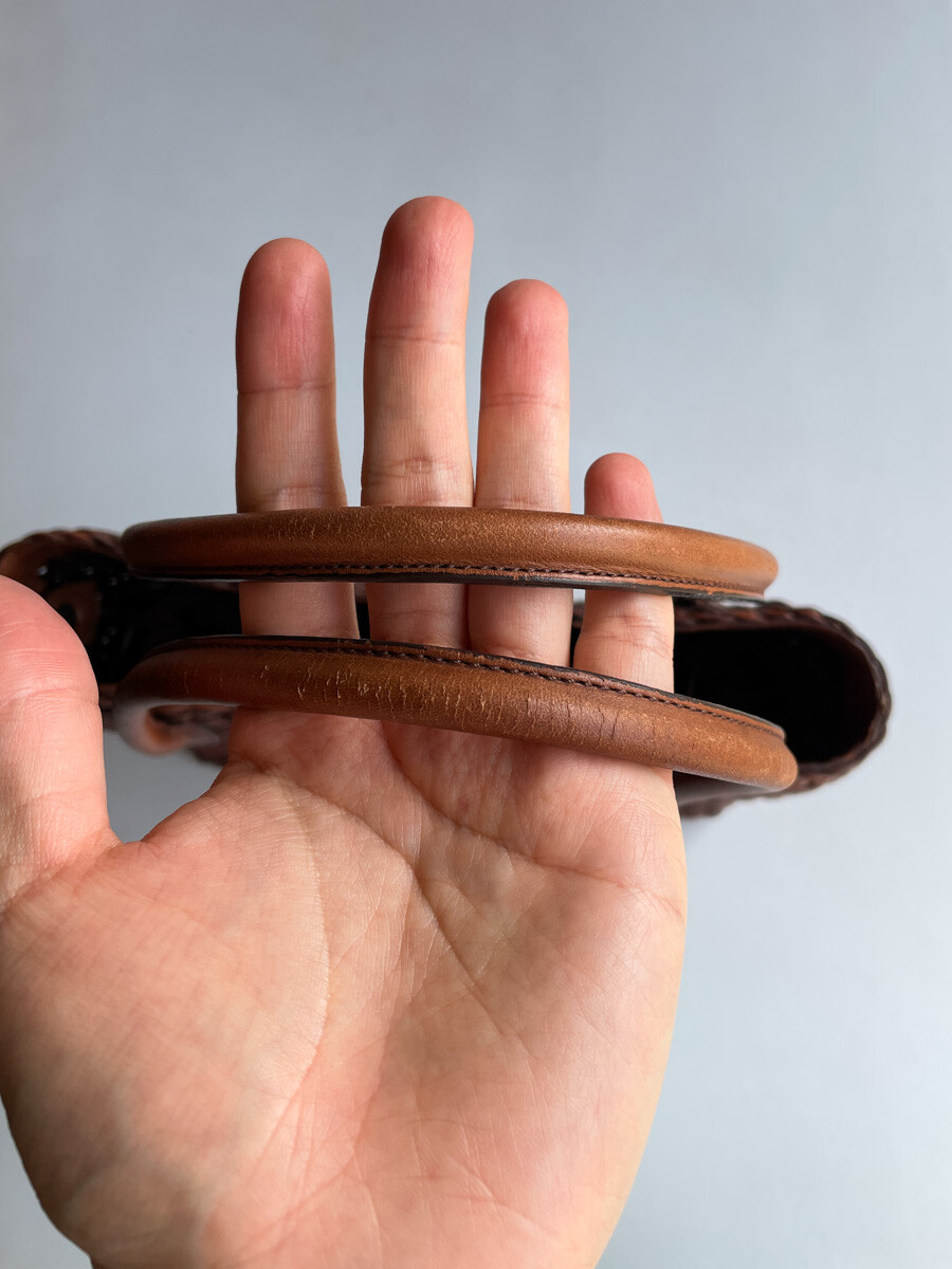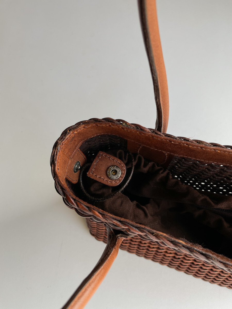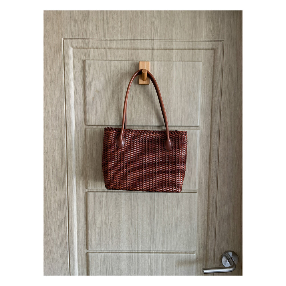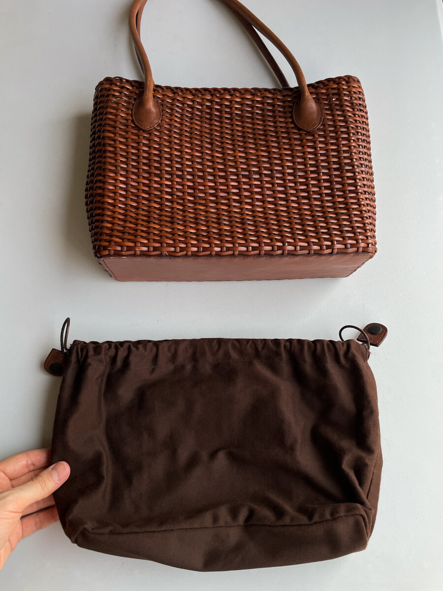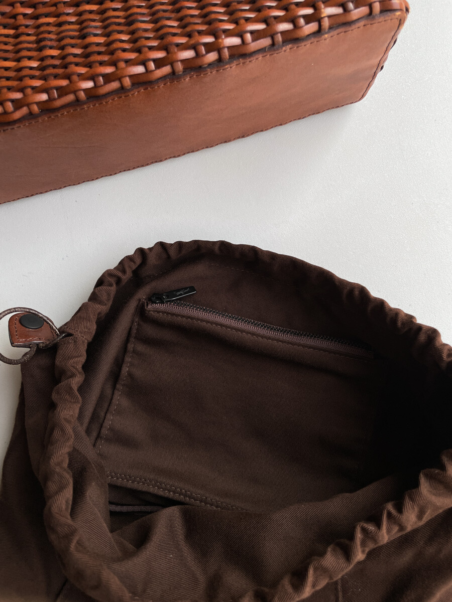 old MARGARET HOWELL - Leather Weaving Square Tote Bag M (Natural Brown)