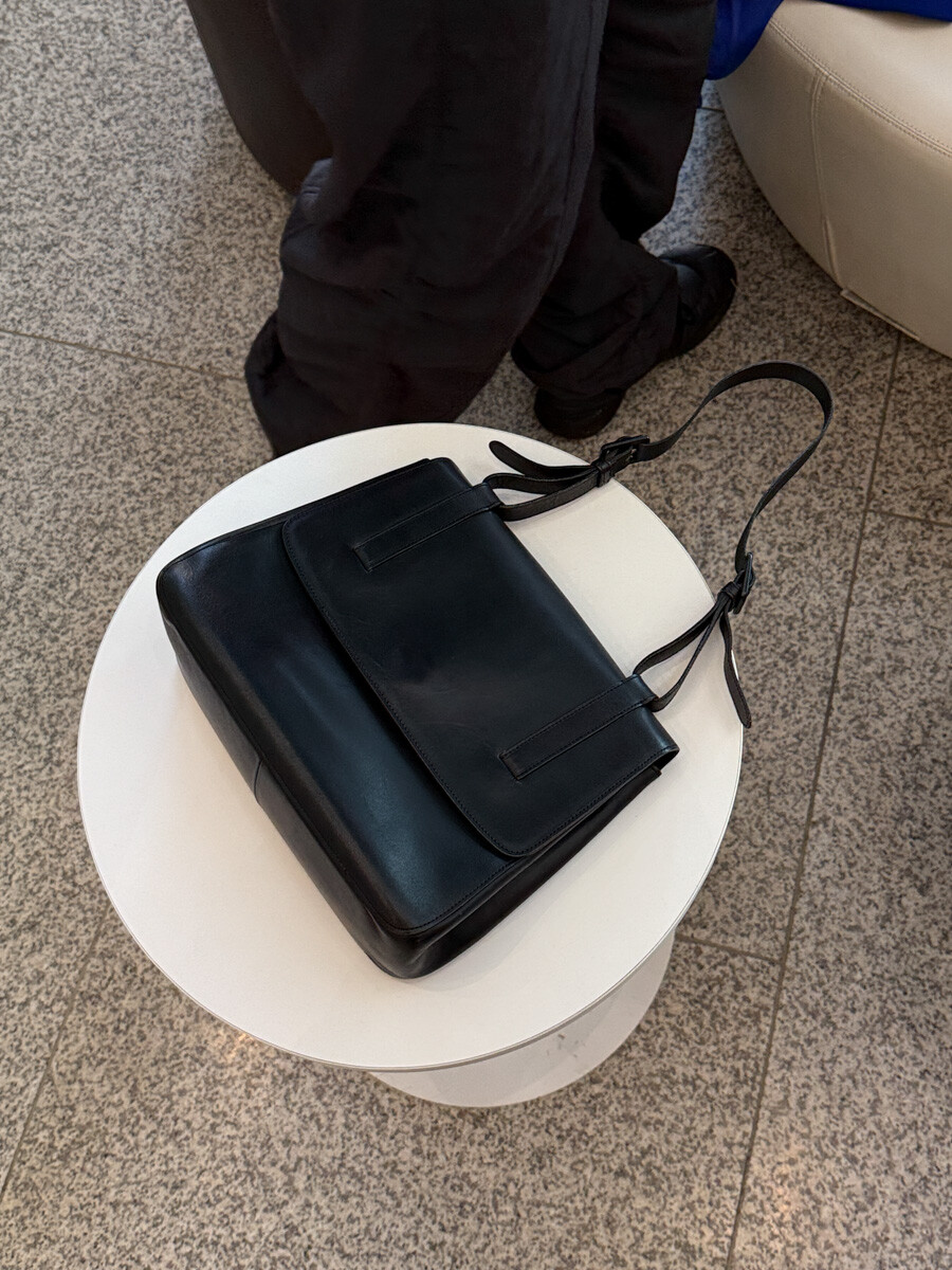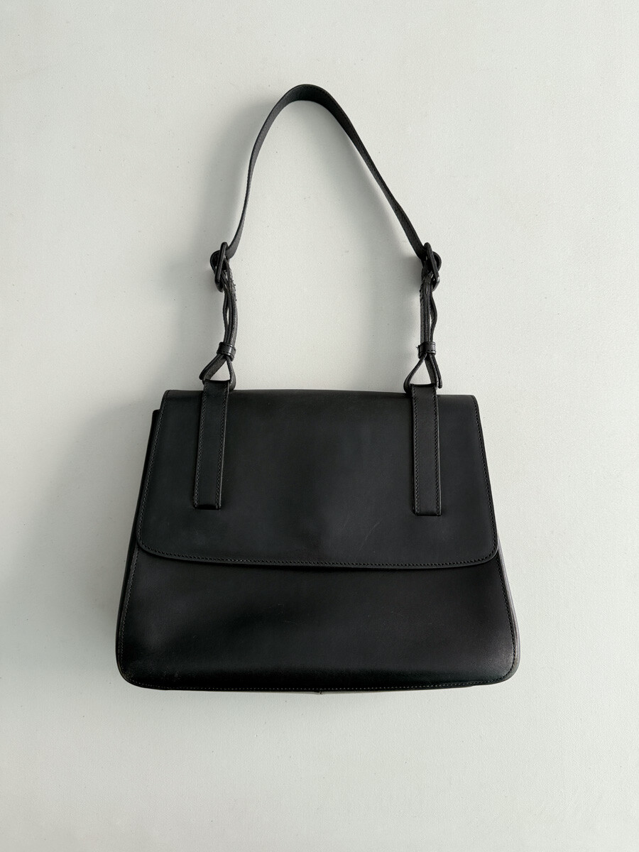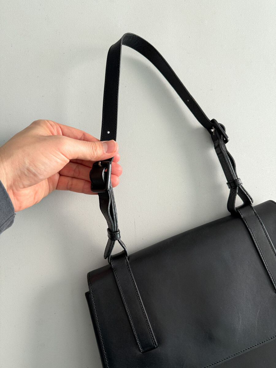 old MARGARET HOWELL - Leather Strap Tote Bag (Black)