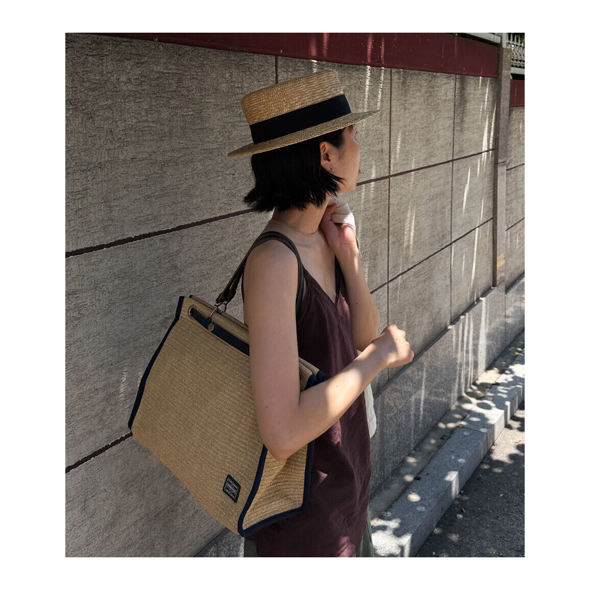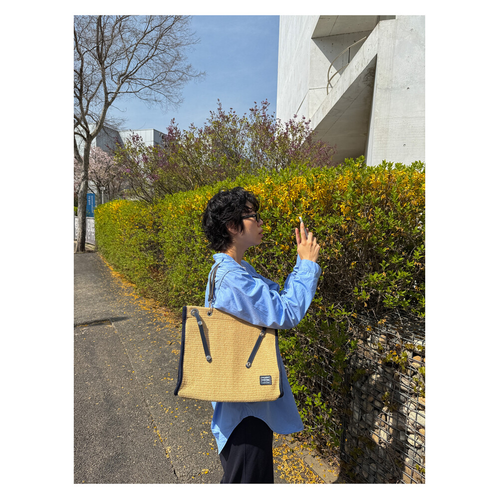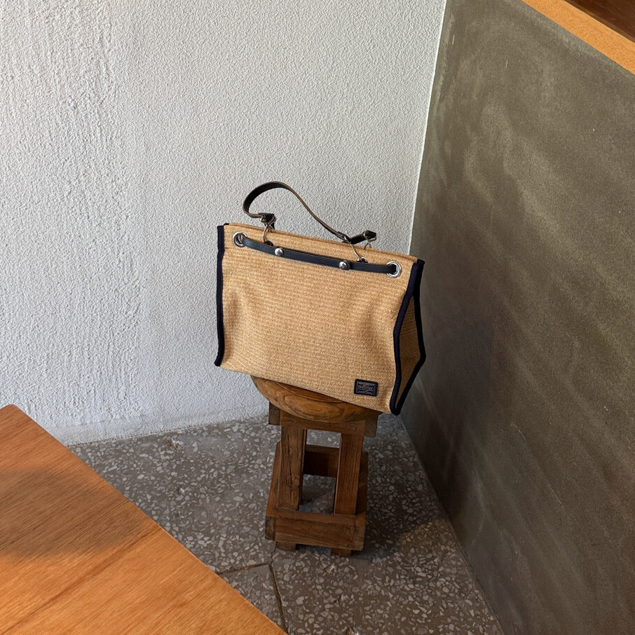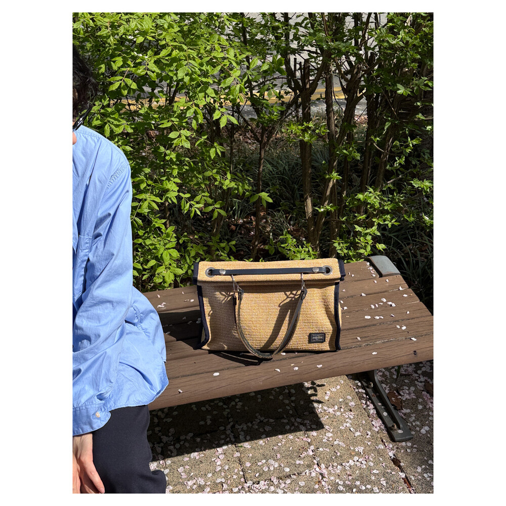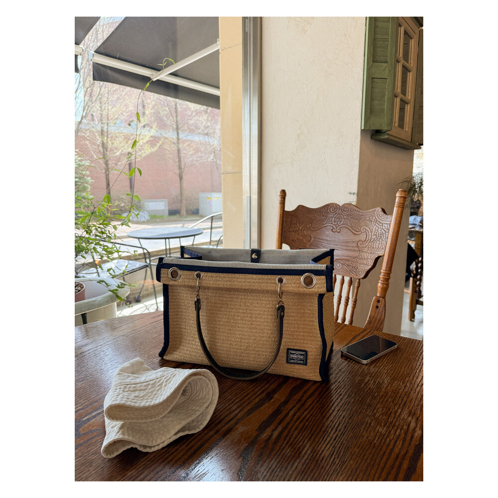 PORTER GIRL MARCHE - Straw Tote Bag L (Natural / Dark Navy)