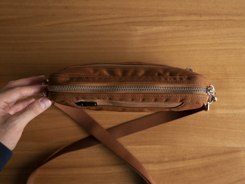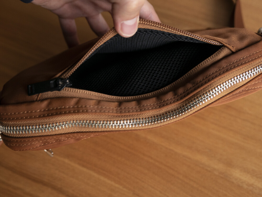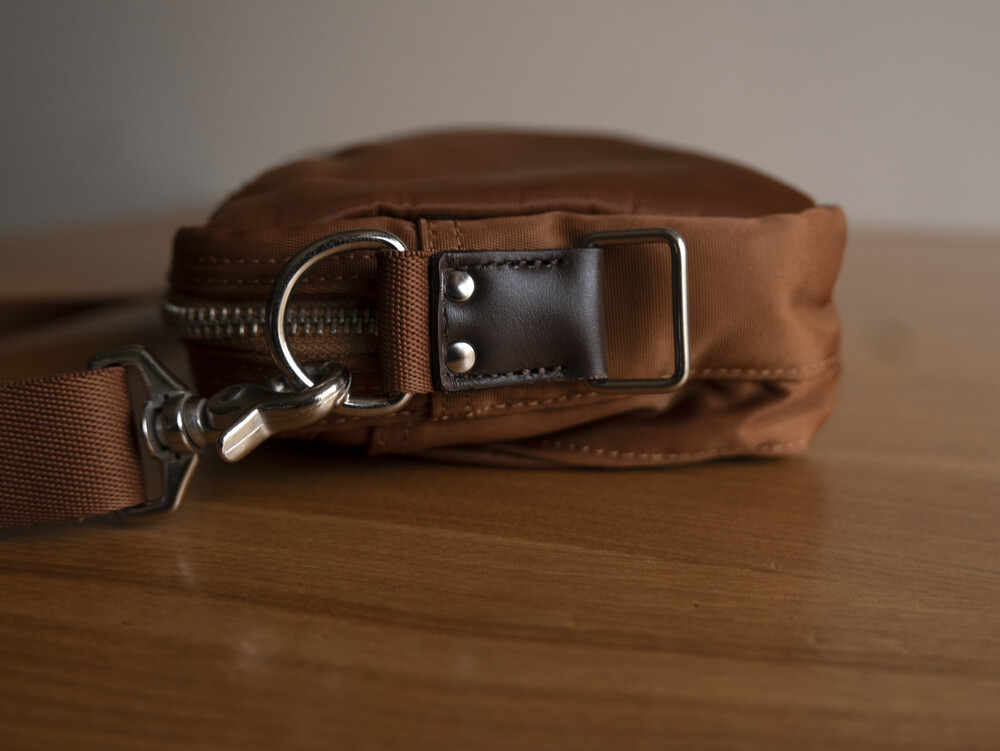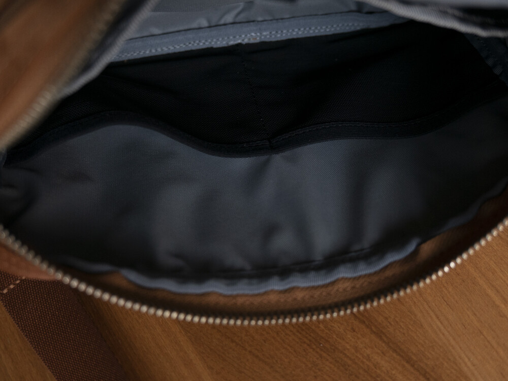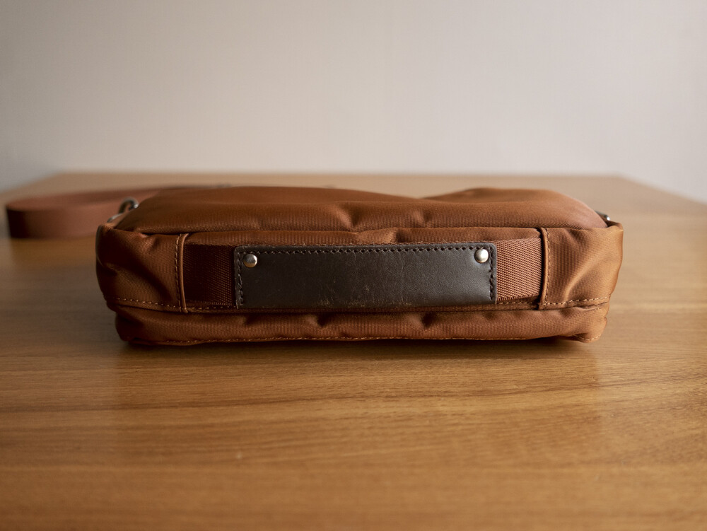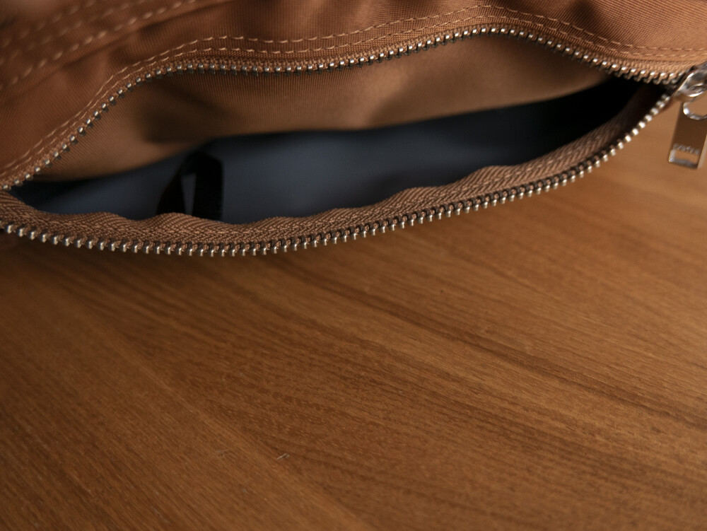 메인 원단은 2 종류의 실을 사용하여 짜낸 오리지날의 나일론 트윌로 세로사에는 210 데니어의 나일론 실, 가로실에는 중공상의 섬유를 복수 꼬아 방적한 “강합 연 나일론 중공사 ”를 사용하여 초고밀도로 짜고 있습니다. 극세의 실을 이용해 두꺼운 천을 짜는 것으로, 경량이면서도 매우 볼륨감이 있어, 실크와 같이 품위있는 광택감을 표현할 수 있는 것이 특징입니다. 가방류의 반죽의 이면에는 PVC 가공을 실시하는 것으로, 탄력감을 내고 가방의 형상을 정돈하는 것과 동시에, 물방울이 안에 스며드는 것을 막는 효과가 있습니다.