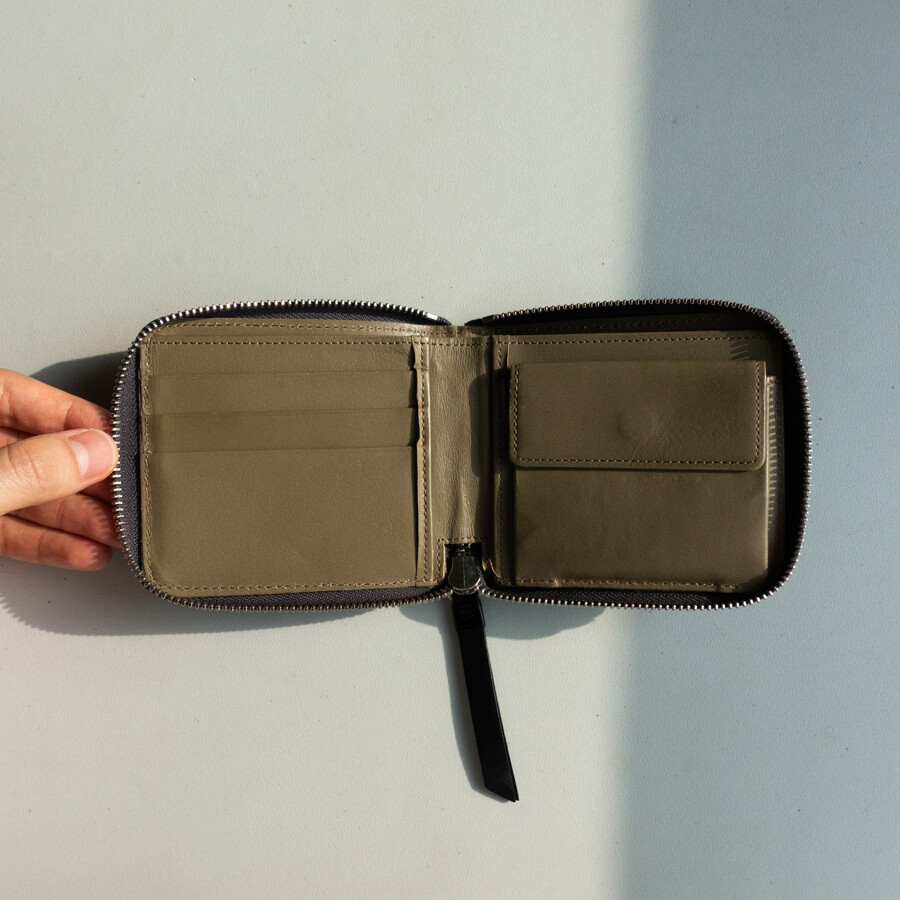 MARGARET HOWELL - Half Wallet (Black) *round zipper