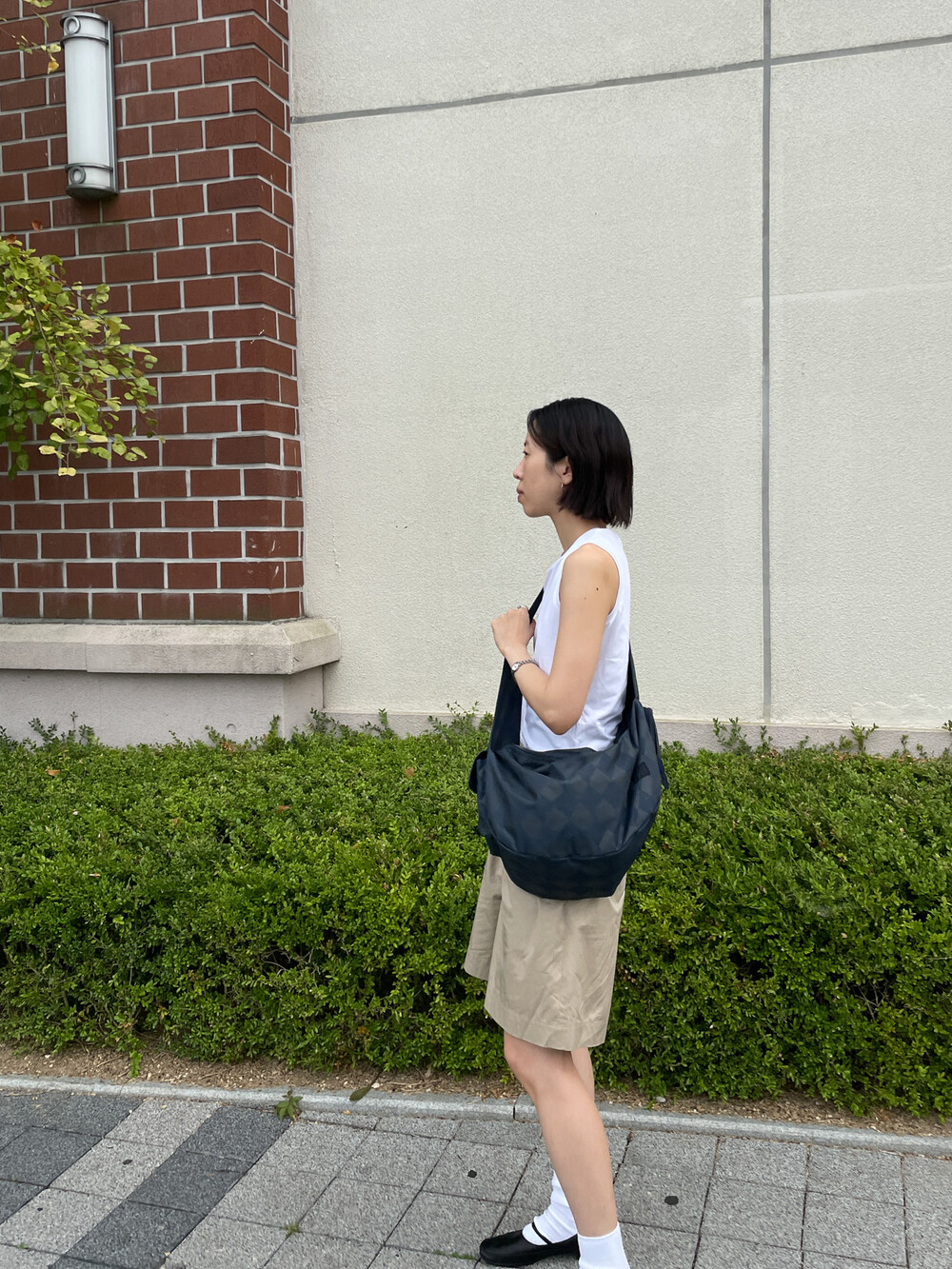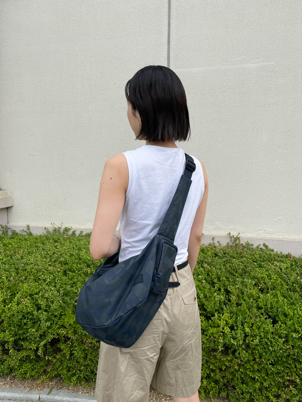 HEAD PORTER - Half Moon Shoulder Bag (Diamond Check / Mat Navy)
