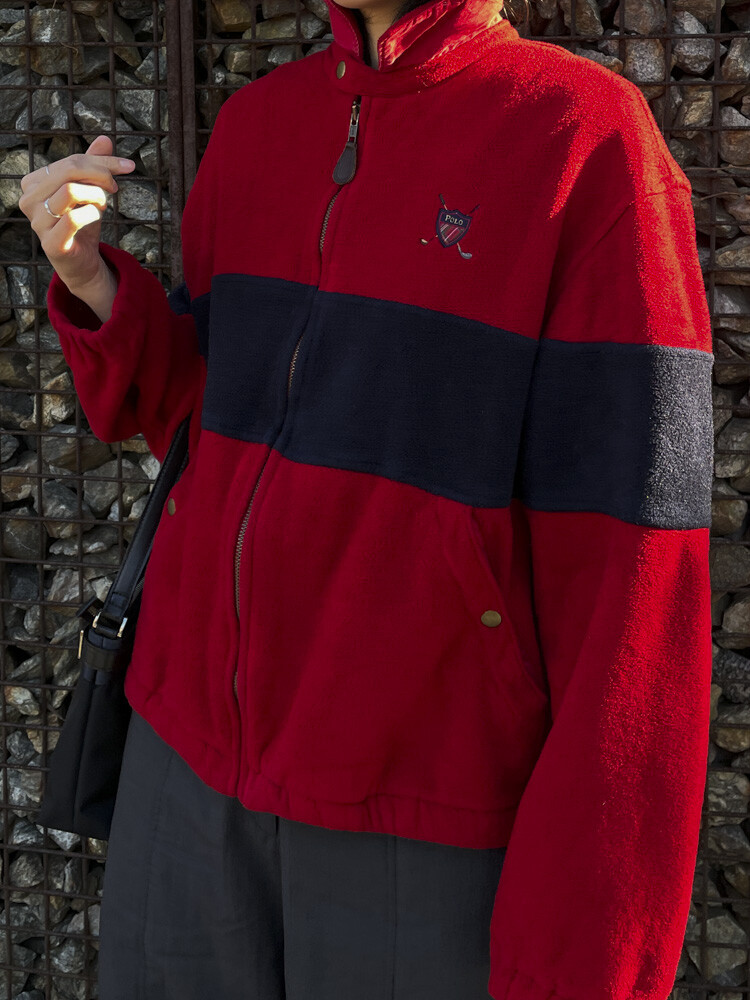 πΊπΈ 1990S POLO RALPH LAUREN - Polartec Fleece Swing Top (Red & Black) *women size