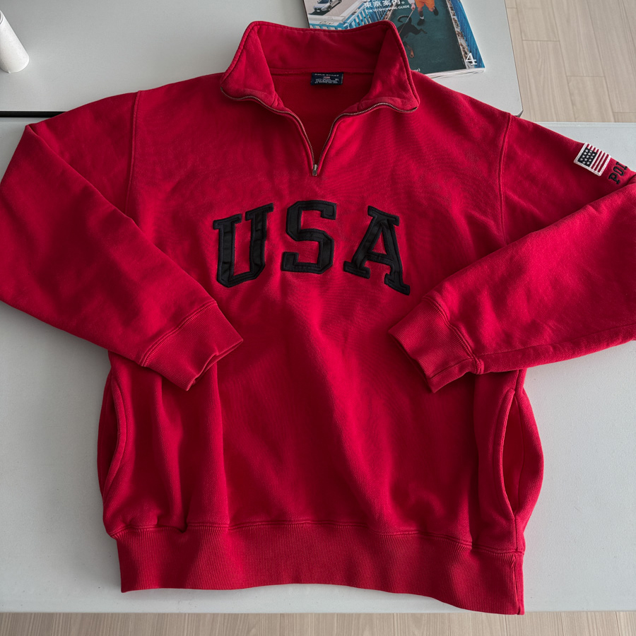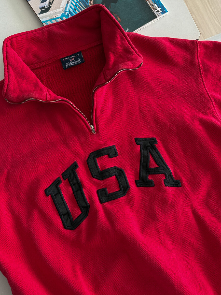 1990S POLO SPORT - USA Sweat Half Zip up (Classic Red)