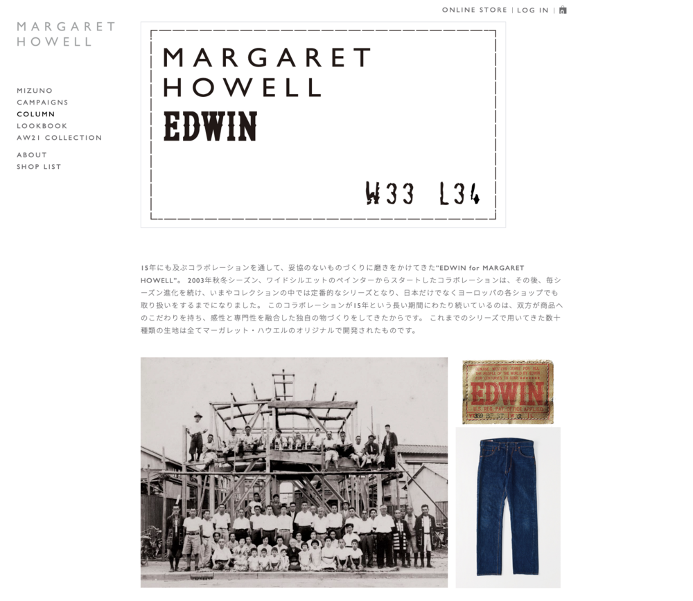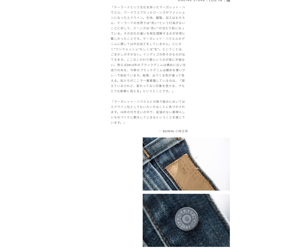 2003년 가을, 마가렛 하웰은 일본의 데님 레이블 에드윈과 함께 데님 컬렉션을 제작했다.