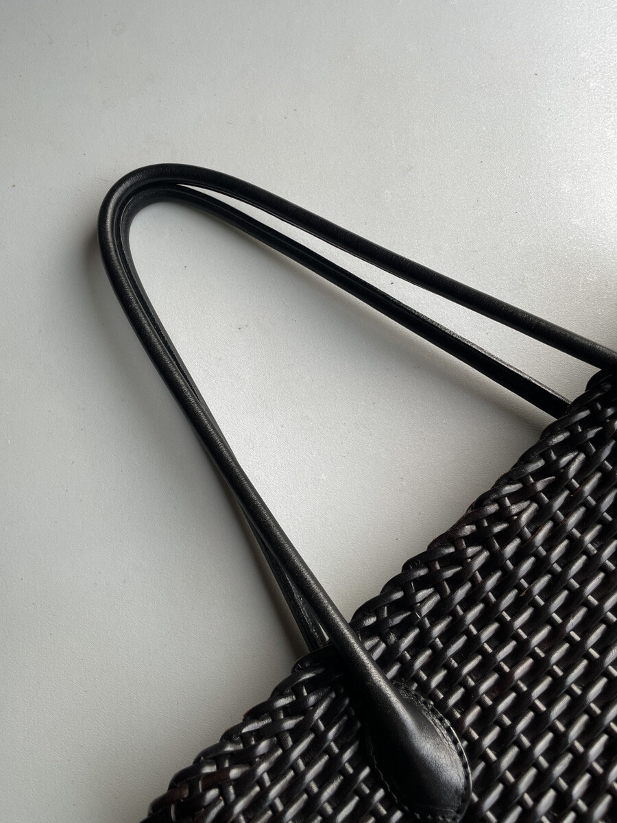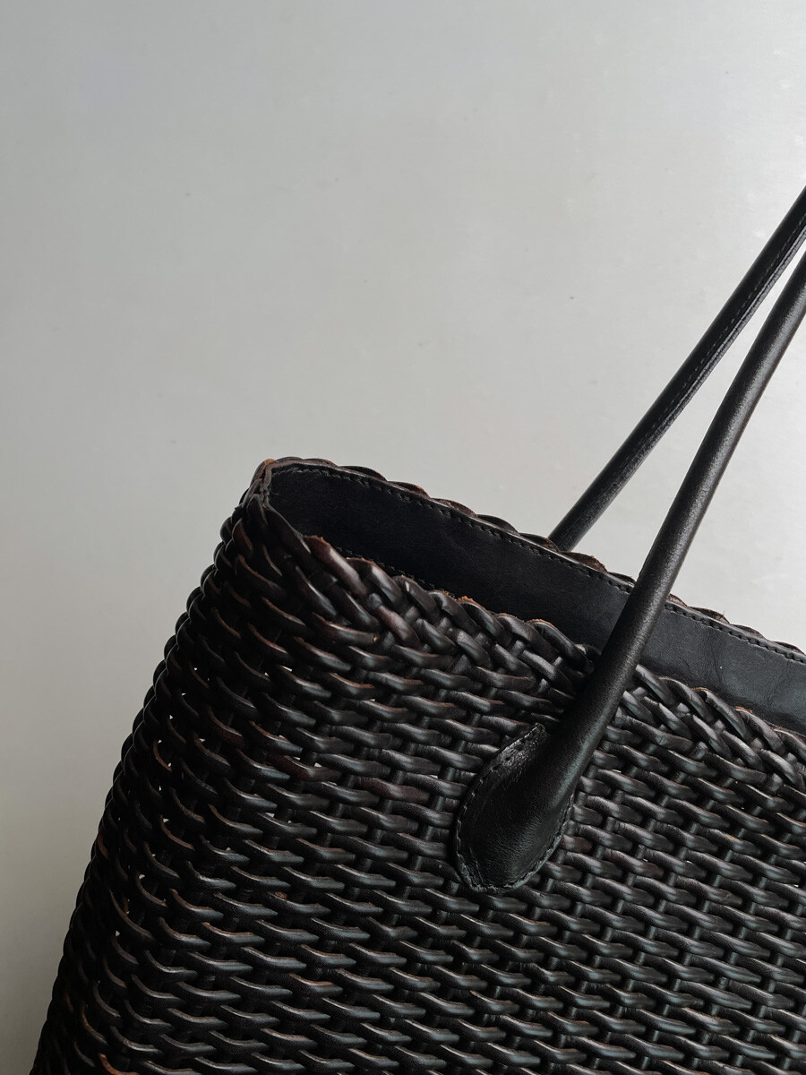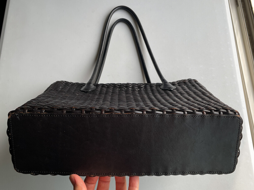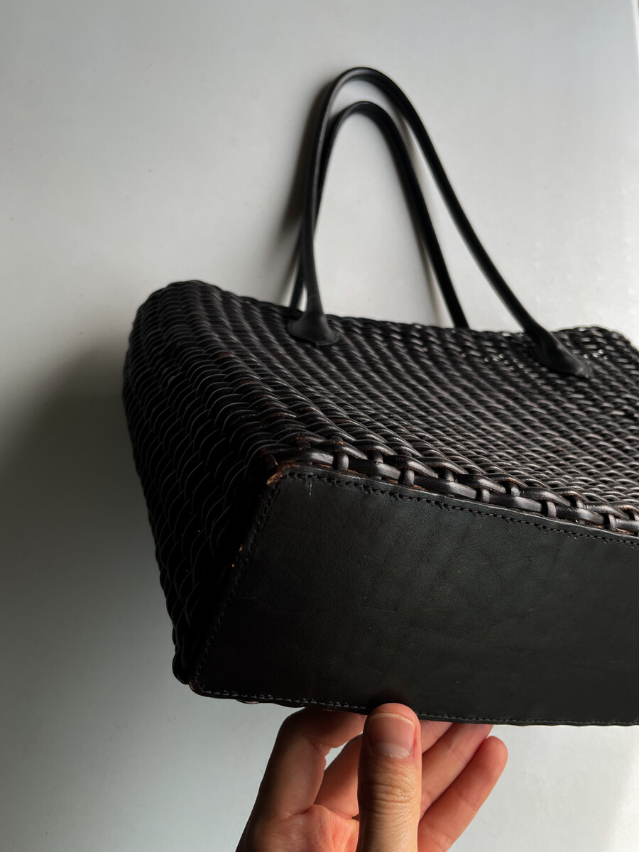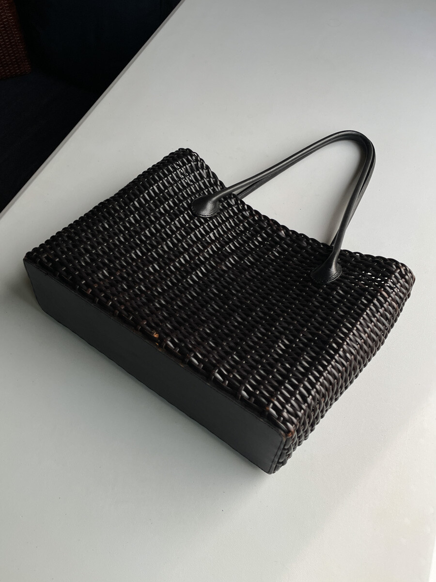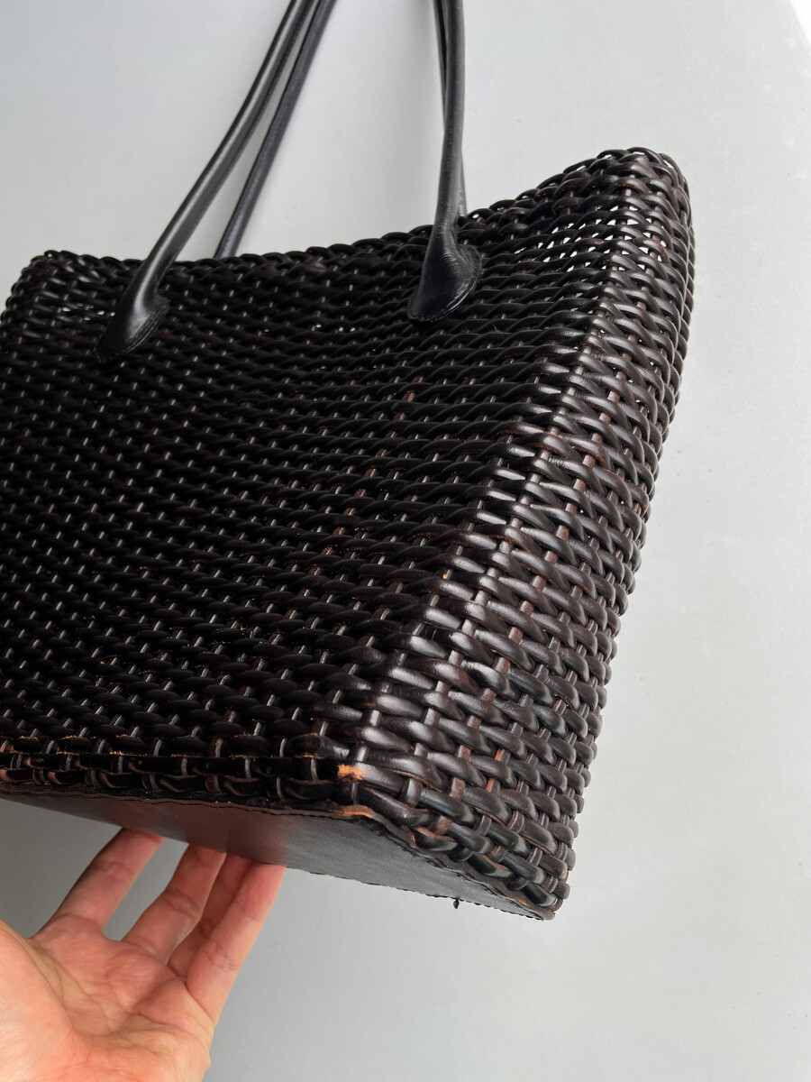 old MARGARET HOWELL - Leather Weaving Square Tote Bag L (Natural Black)