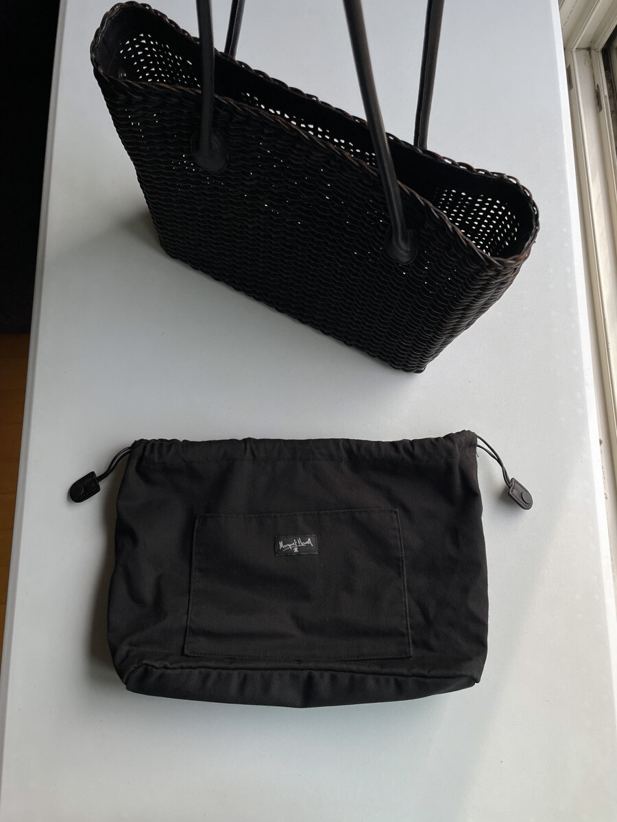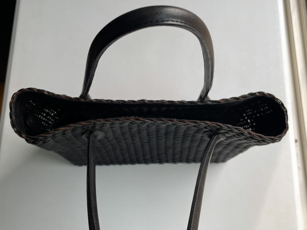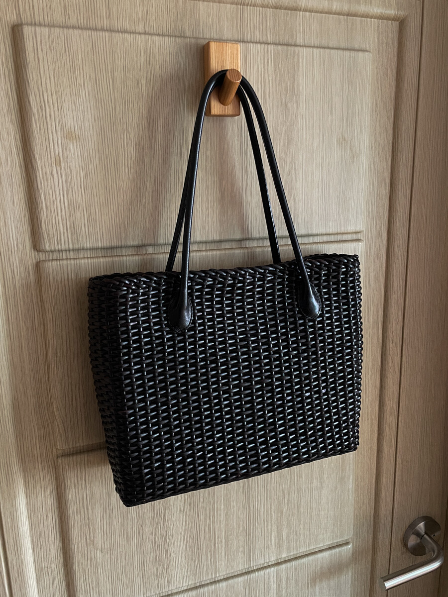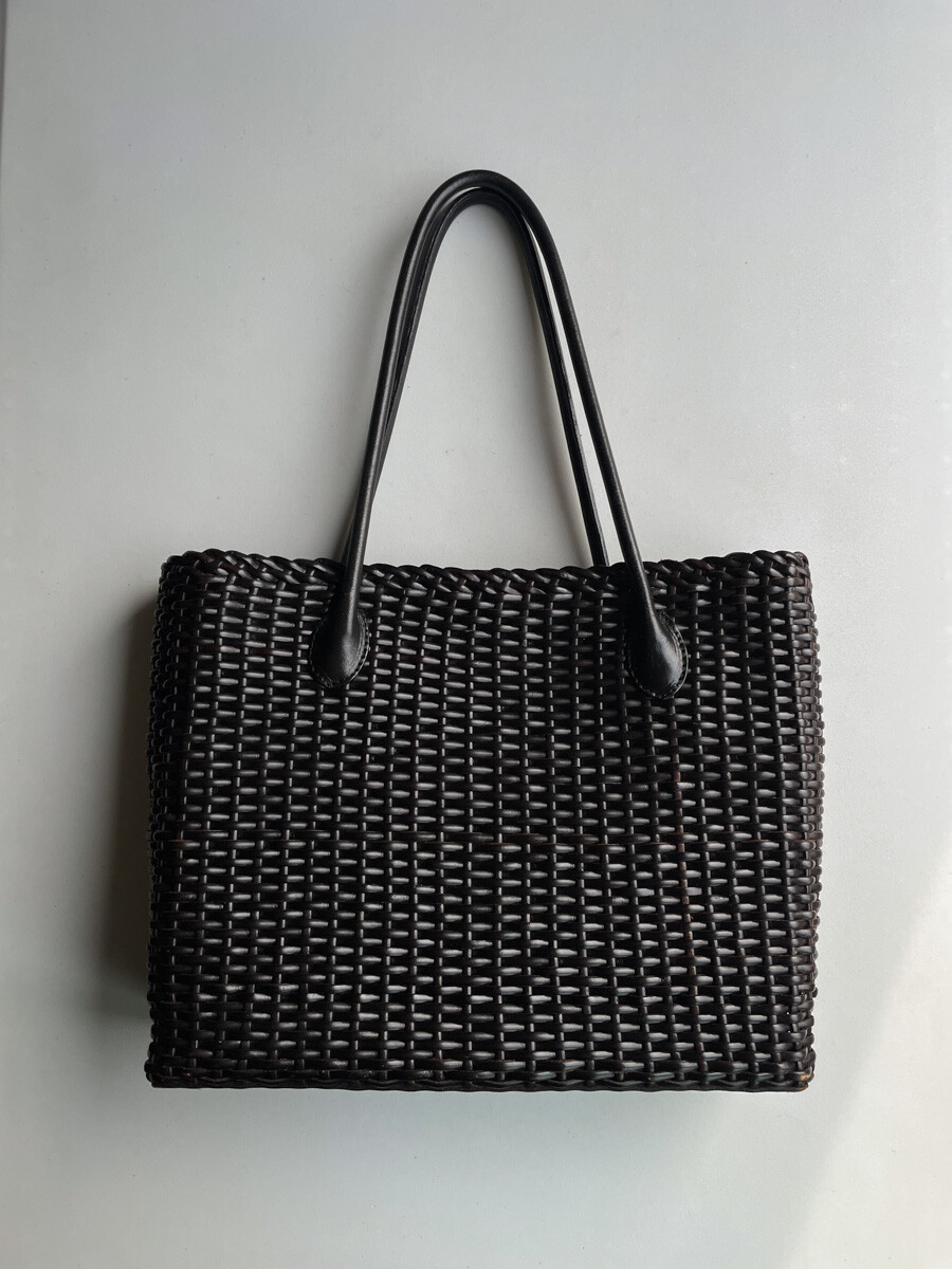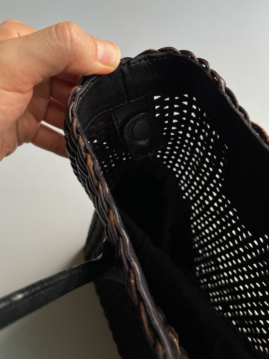 old MARGARET HOWELL - Leather Weaving Square Tote Bag L (Natural Black)