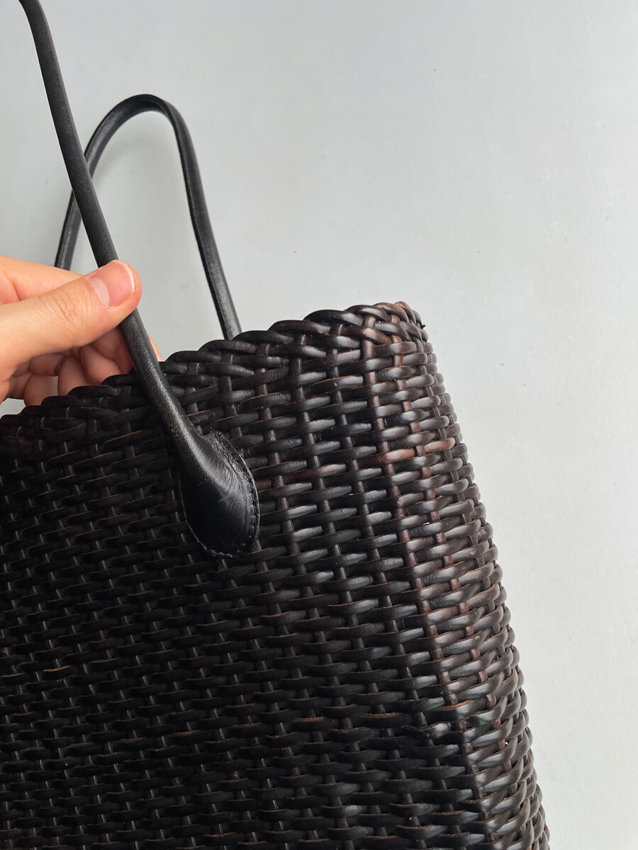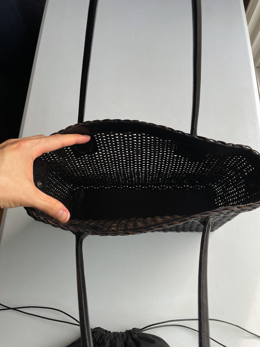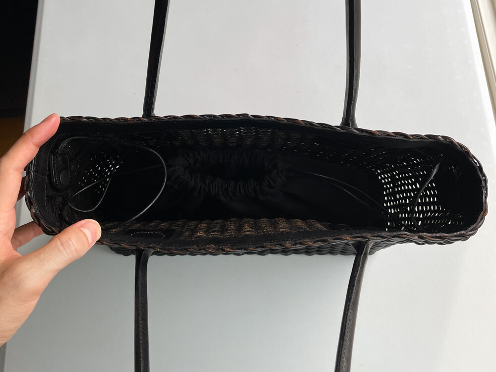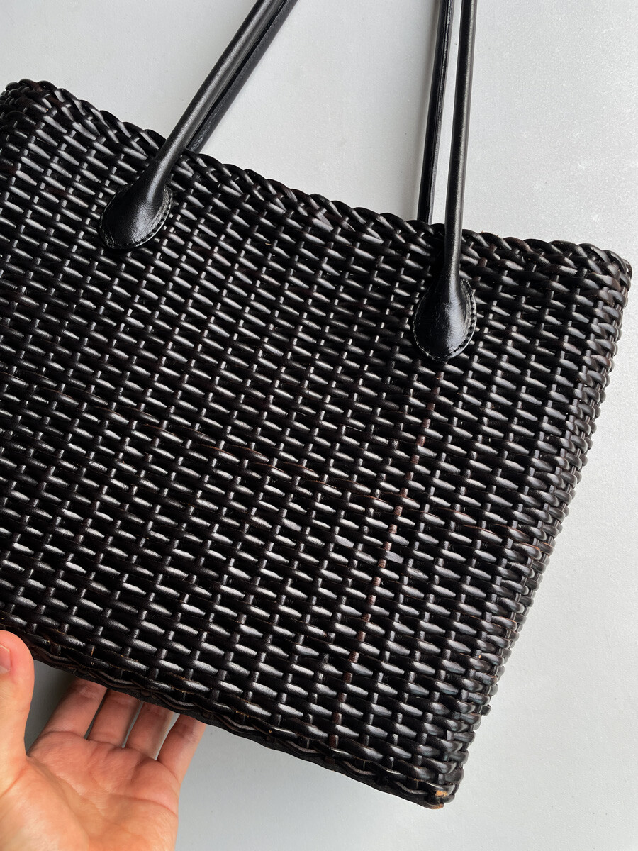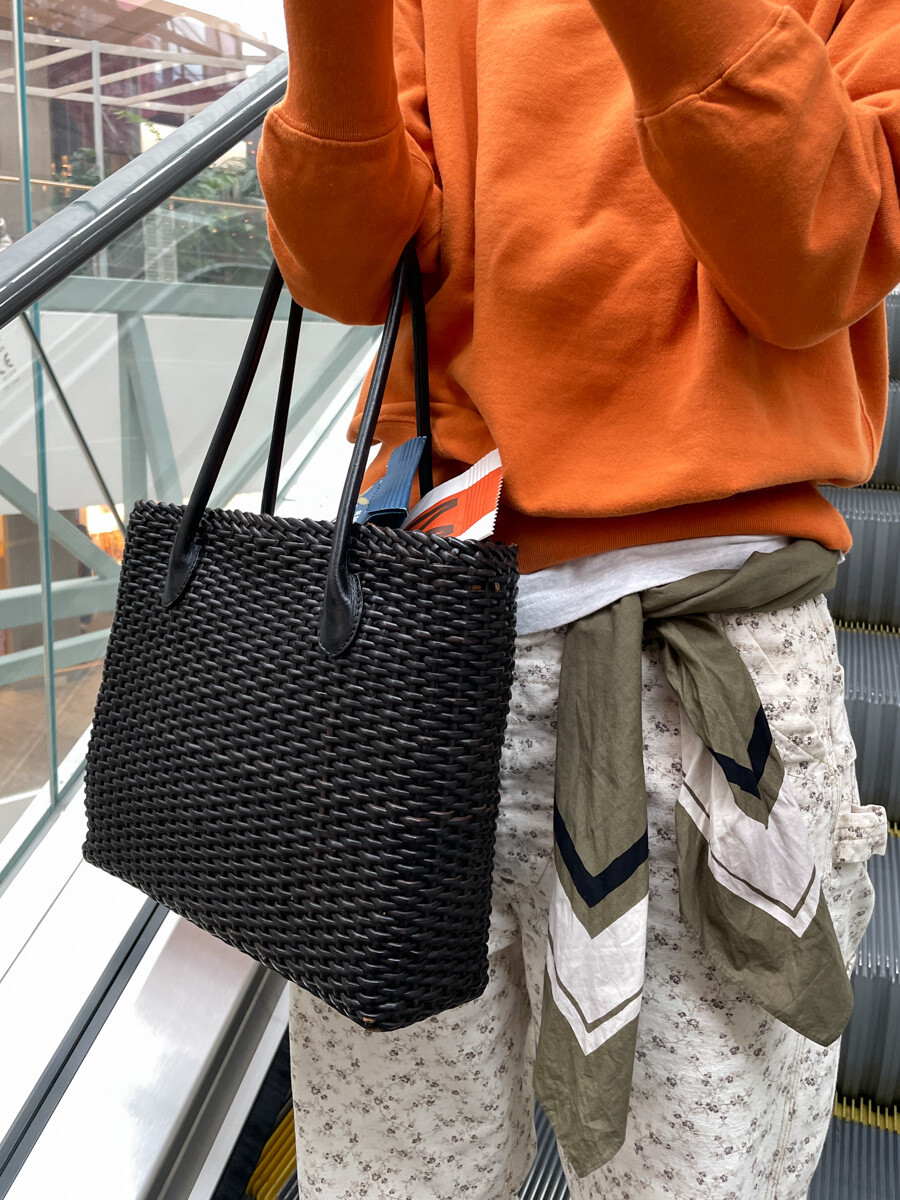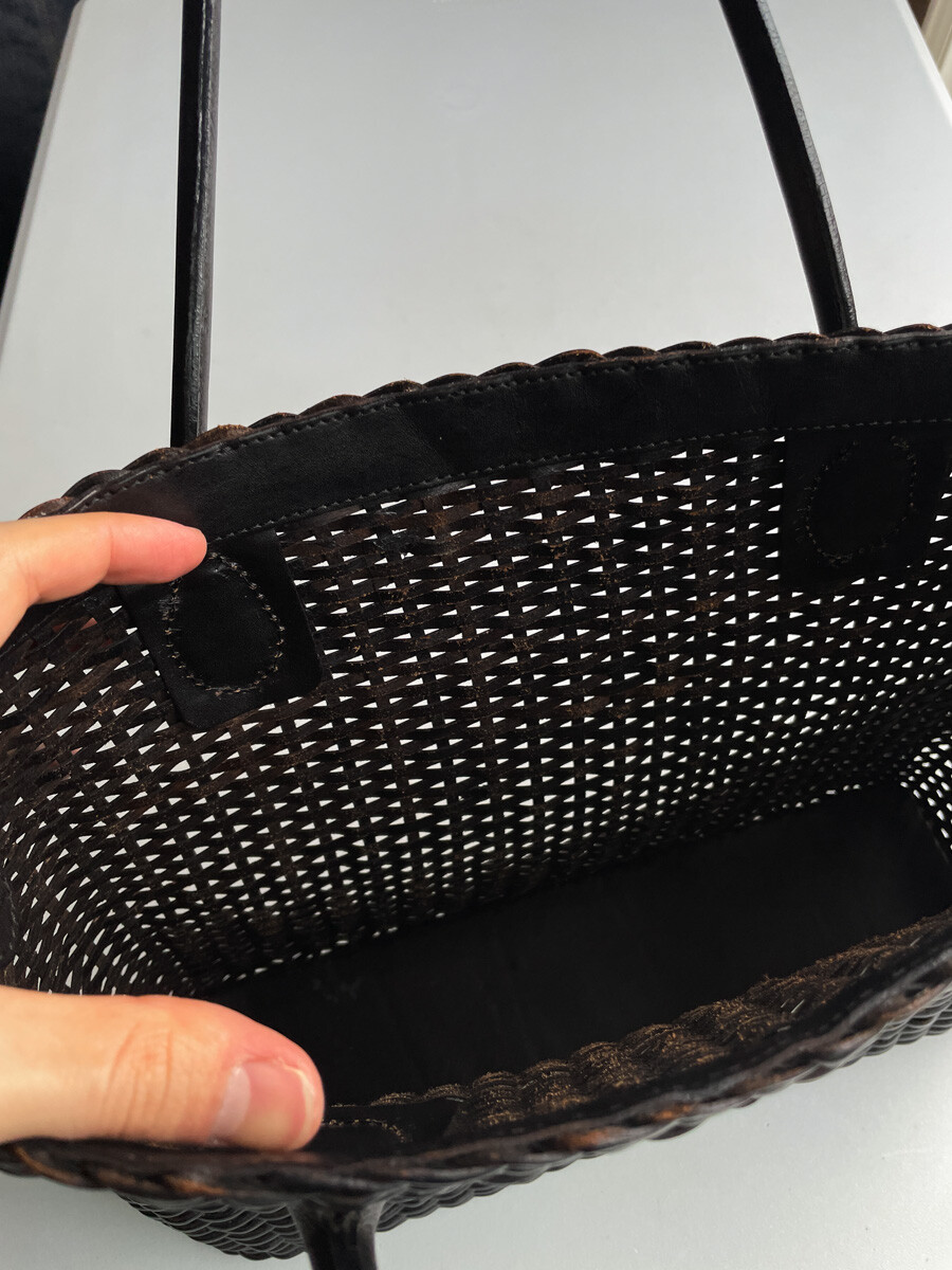 old MARGARET HOWELL - Leather Weaving Square Tote Bag L (Natural Black)