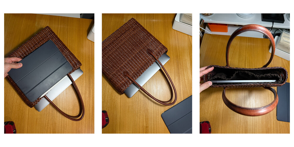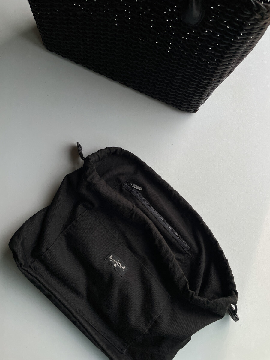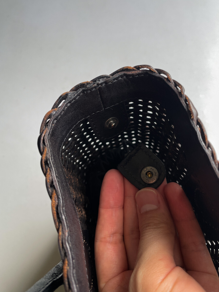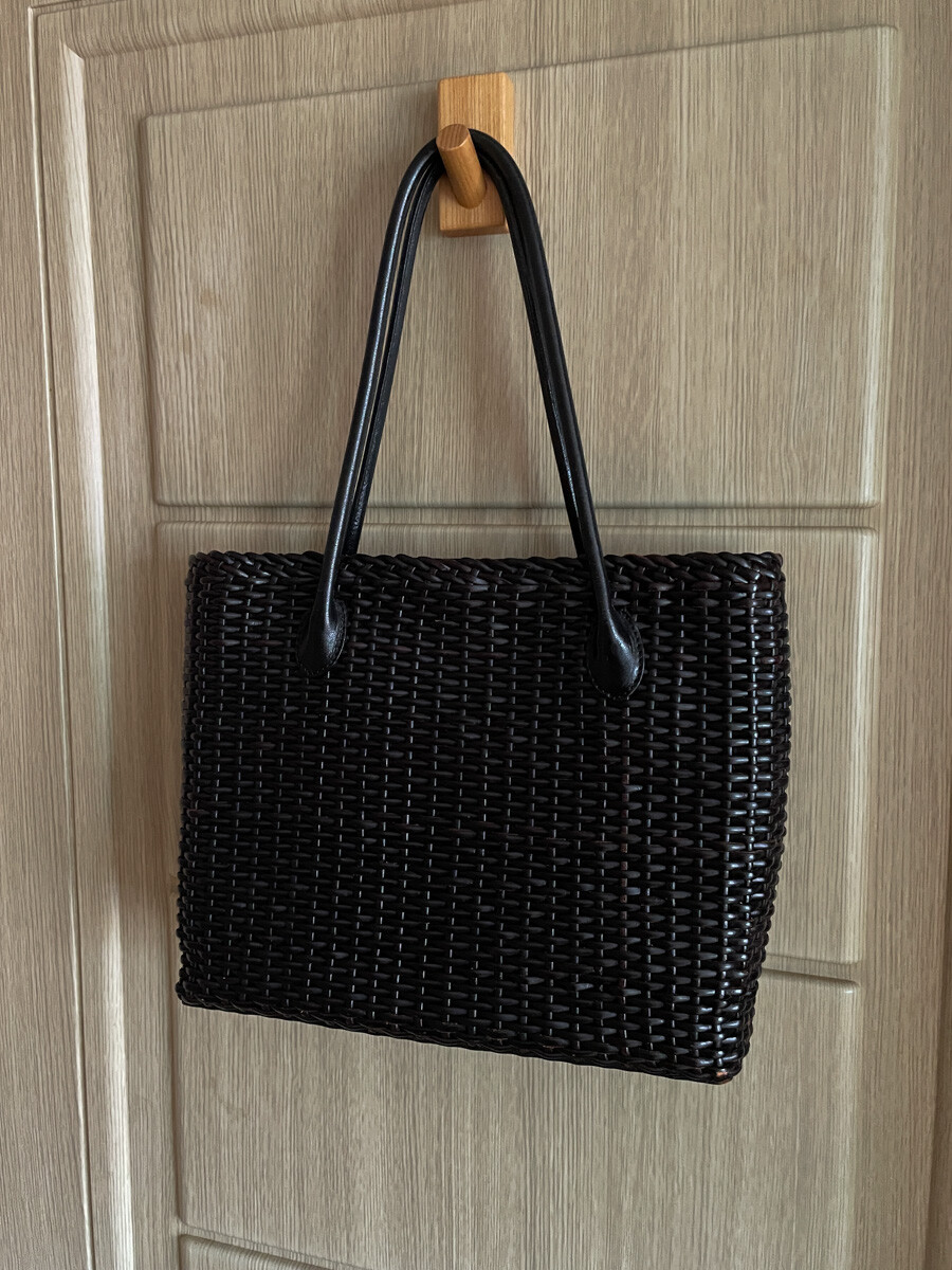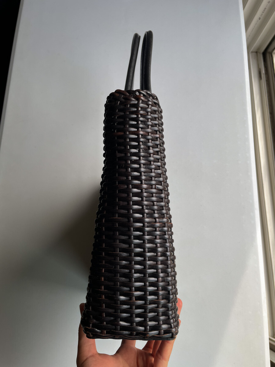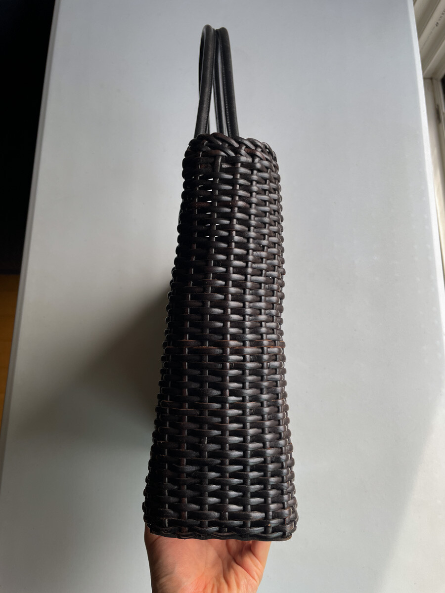 old MARGARET HOWELL - Leather Weaving Square Tote Bag L (Natural Black)