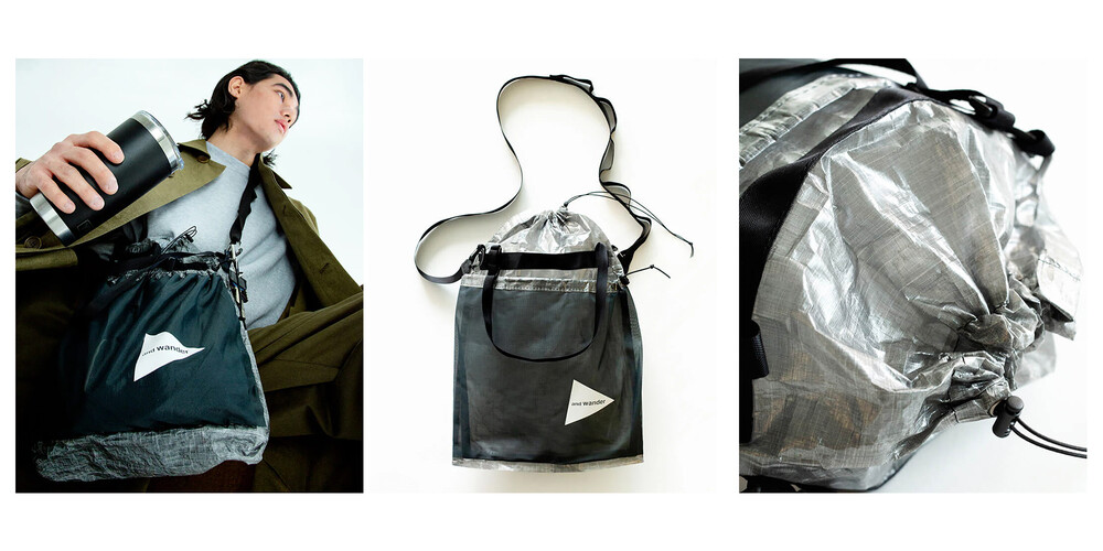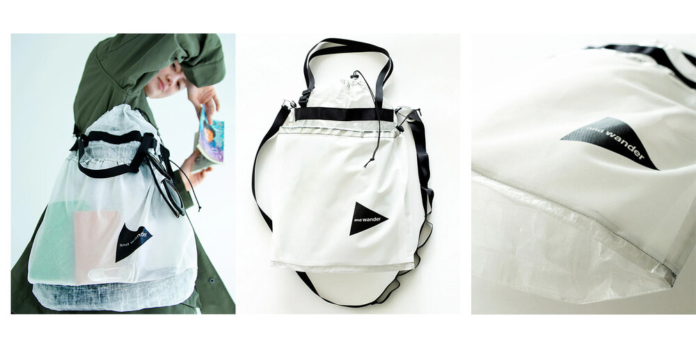 and wander - 2way TOTE SHOULDER STUFF SACK (Black, White)