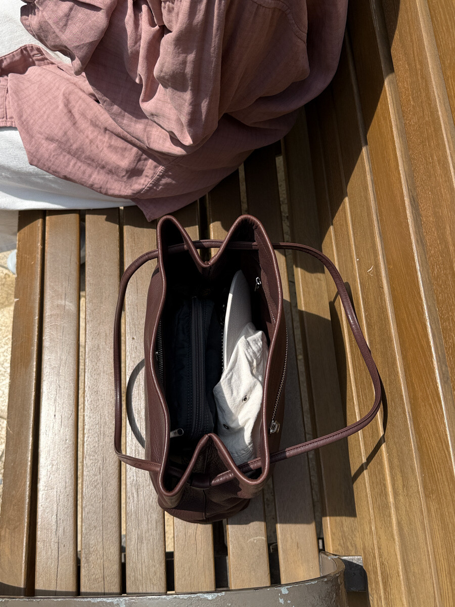 old MARGARET HOWELL - Leather Strap Tote (Deep Brown)