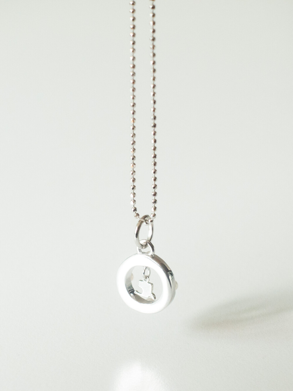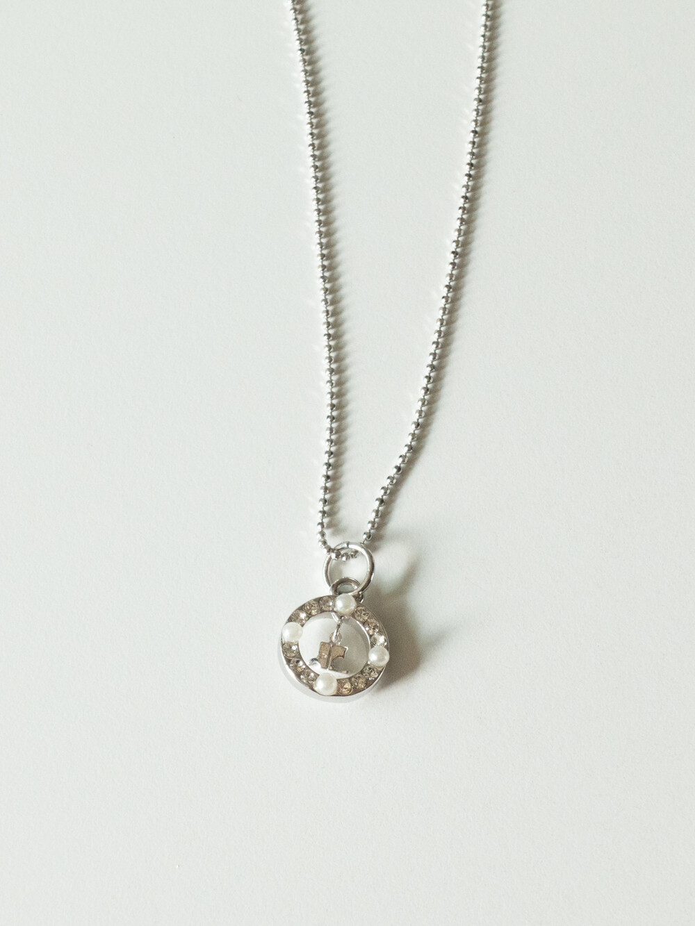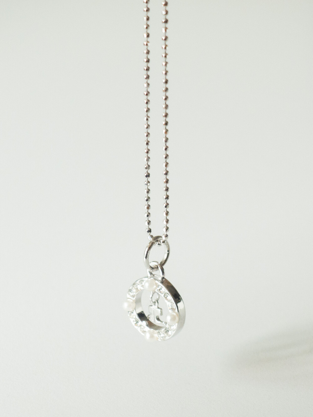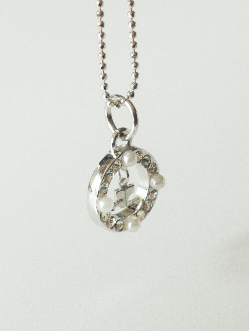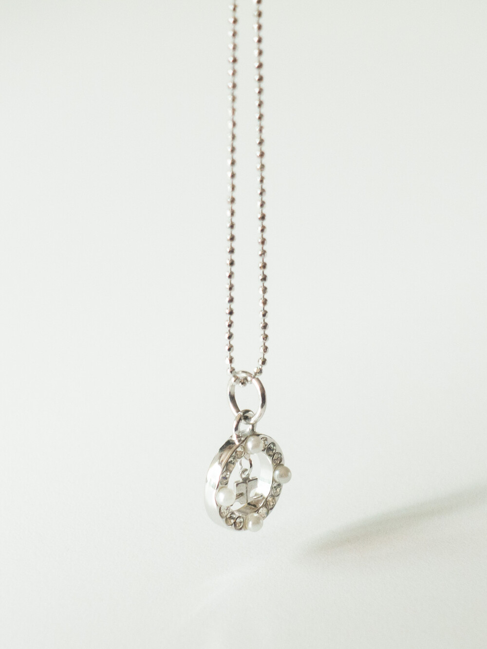 Vintage COURREGES - Ring Pearl Logo Symbol Necklace (Silver)