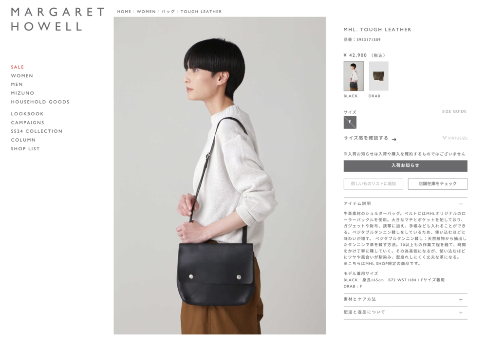 MHL - TOUGH LEATHER SHOULDER BAG L (Vintage Black)