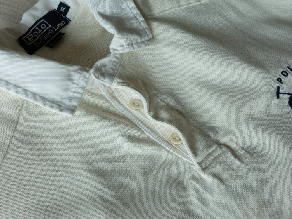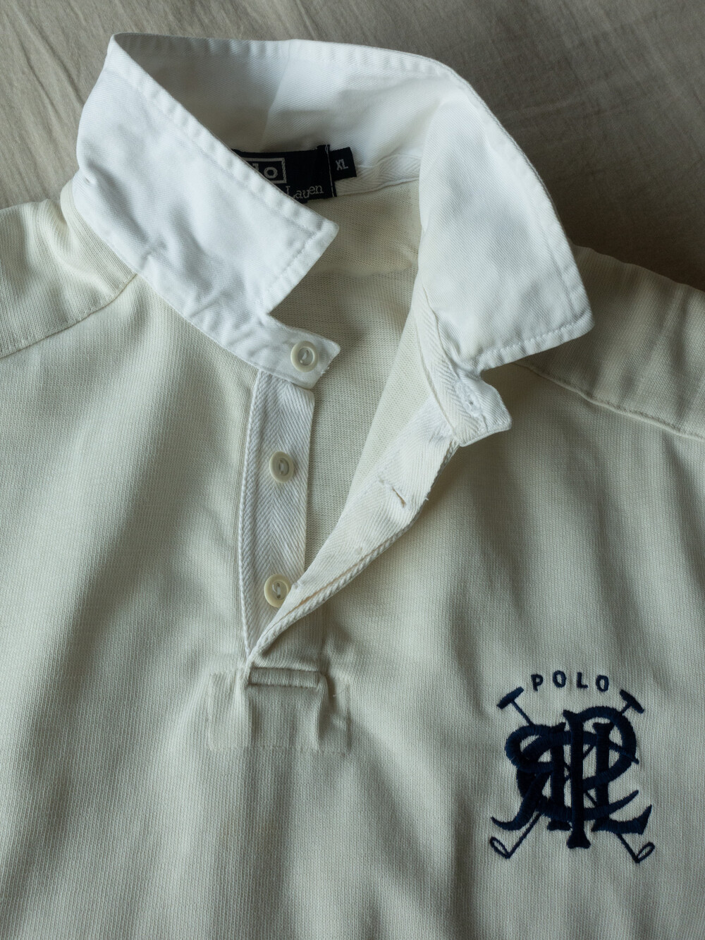 1990S POLO RALPH LAUREN - Unique Rugby PK Shirt (Cream Ivory)