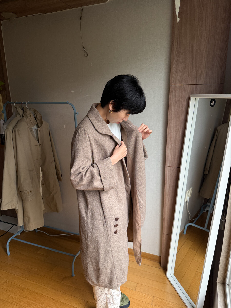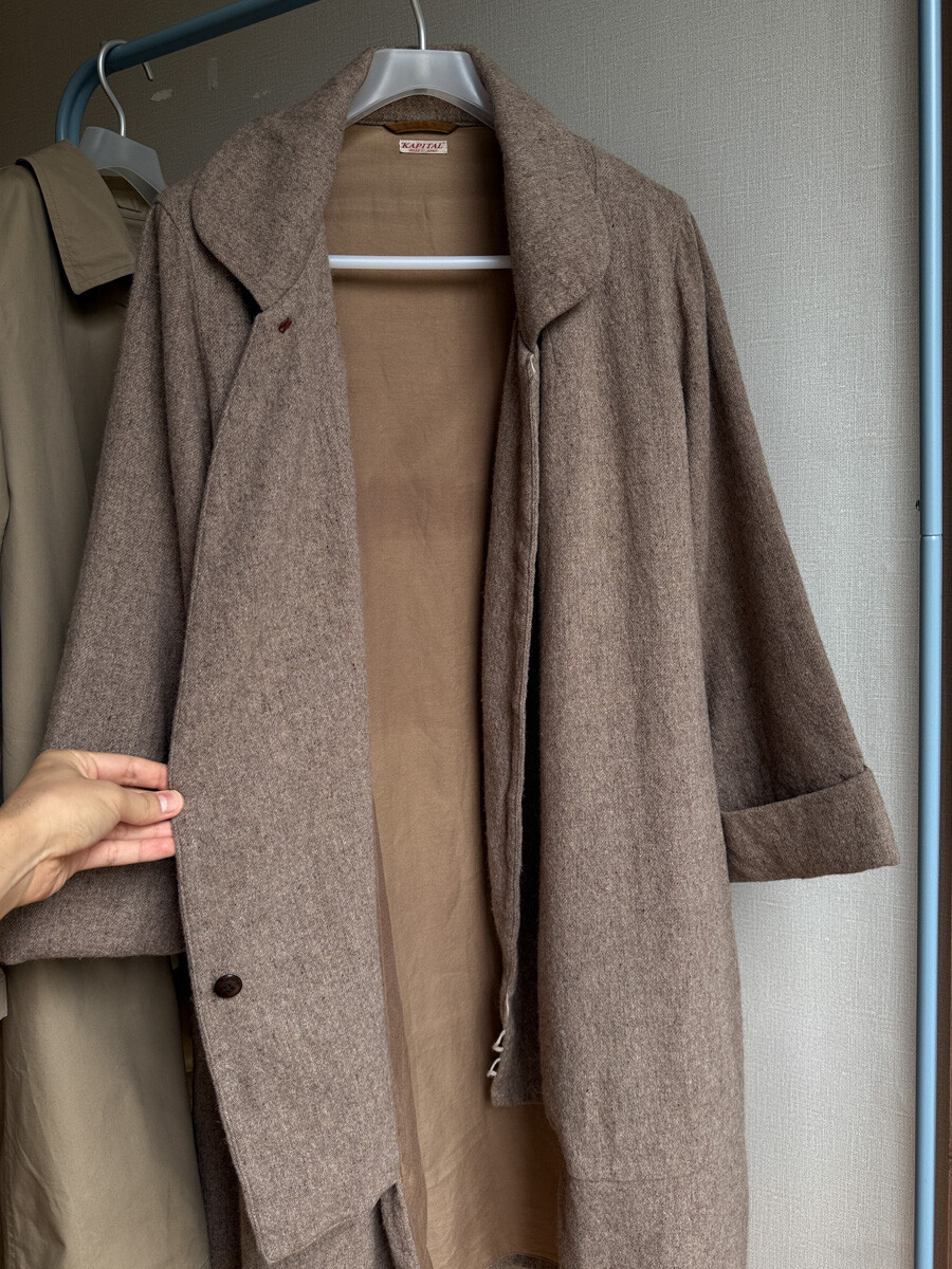 KAPITAL - Wool Drape Coat (Brownish Beige)