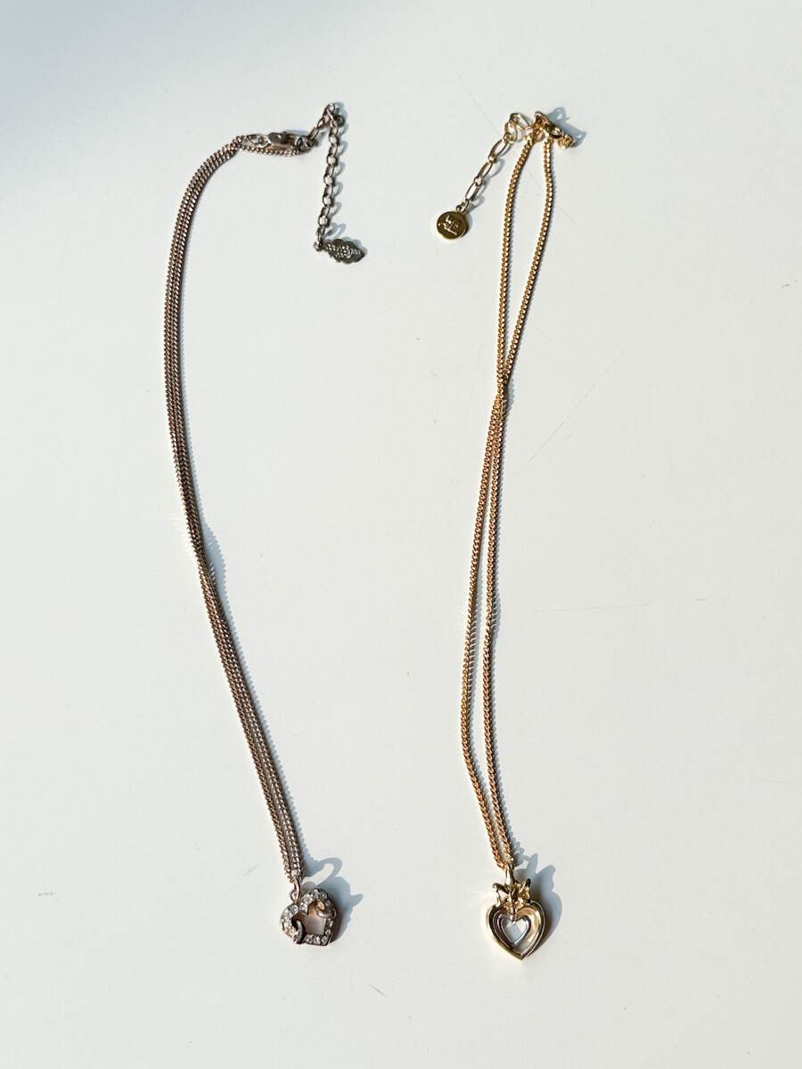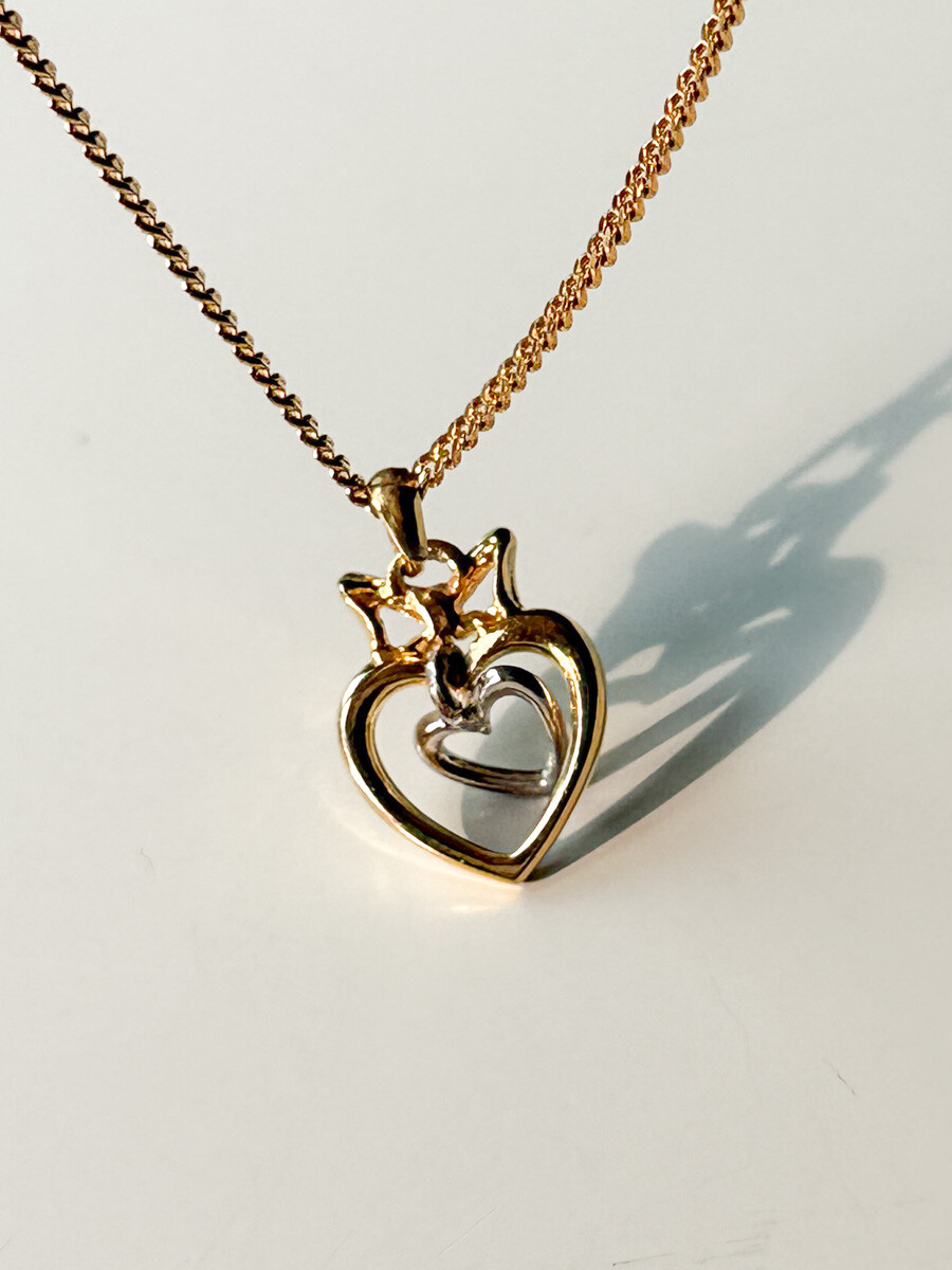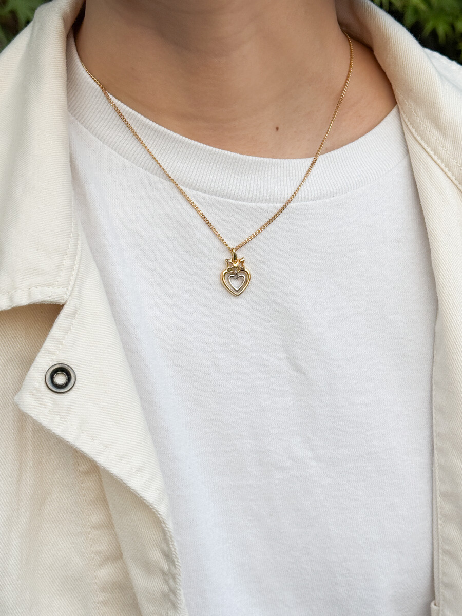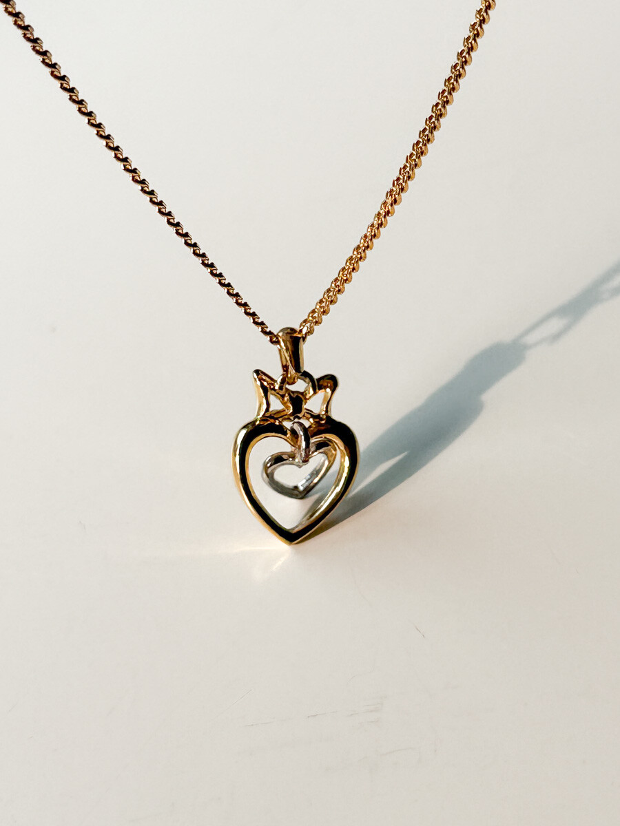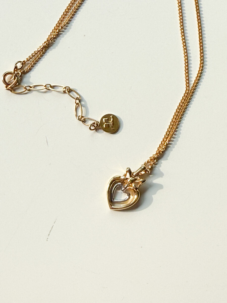 Vintage COURREGES - Double Heart Ribbon Necklace (Gold)