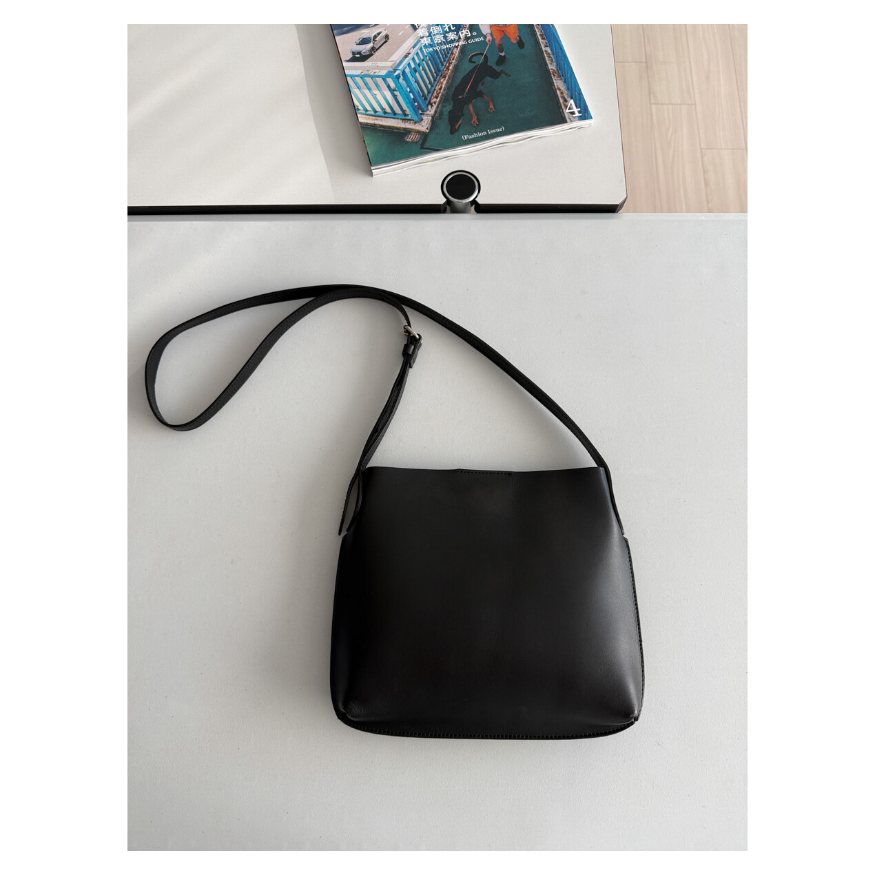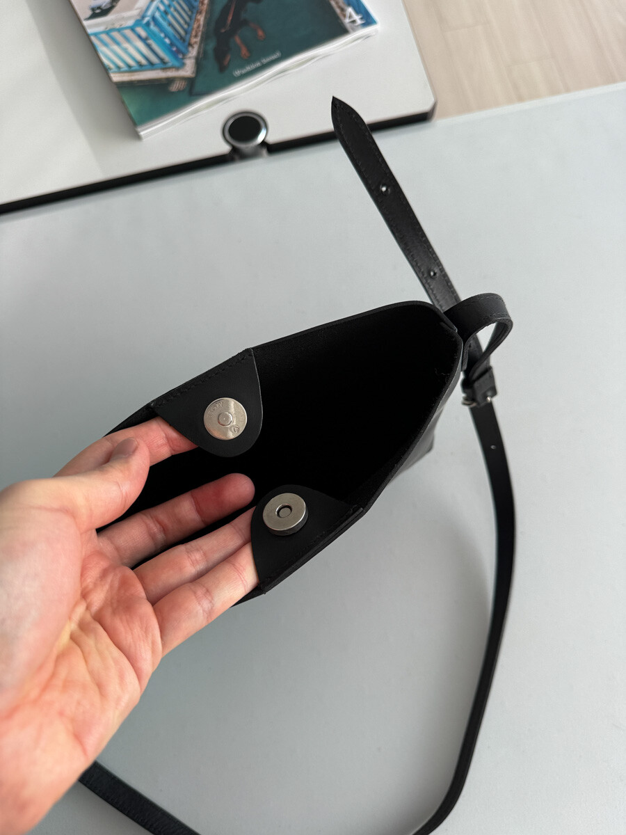 old MARGARET HOWELL - Small Leather Shoulder Bag (Black)