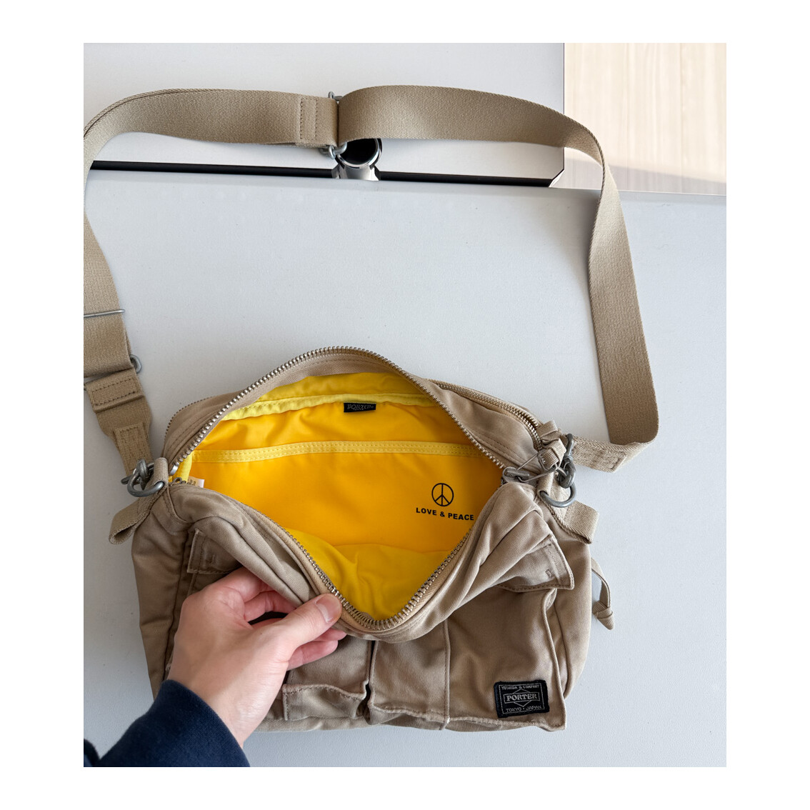 PORTER LOVE & PEACE - SHOULDER BAG M (Beige) *70th anni