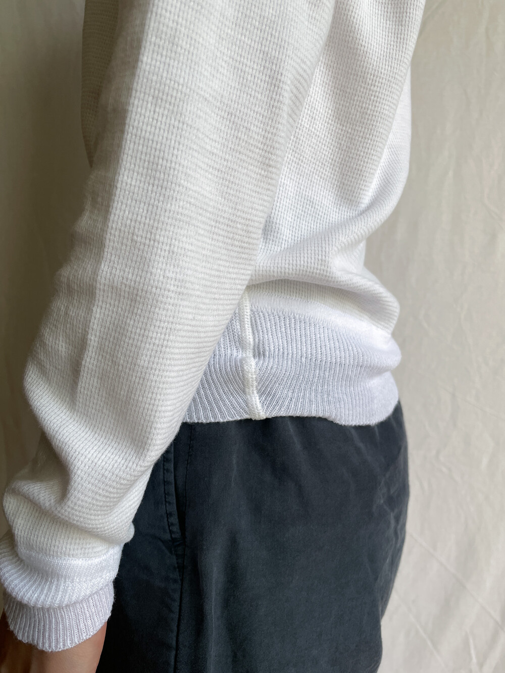 *new condition YAECA - Waffle Long Sleeve Cut And Sew (White)