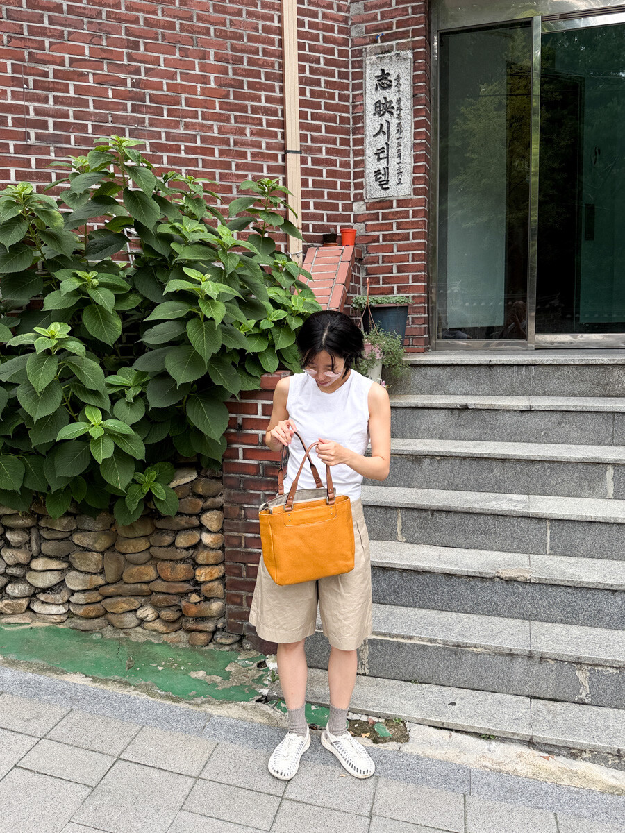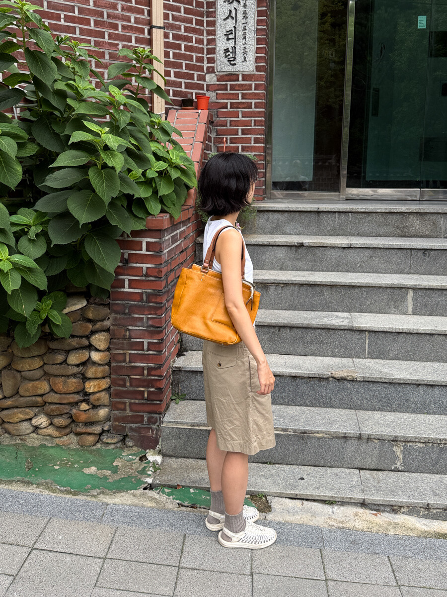 MARGARET HOWELL - Leather Tote Bag M (Yellow Camel)