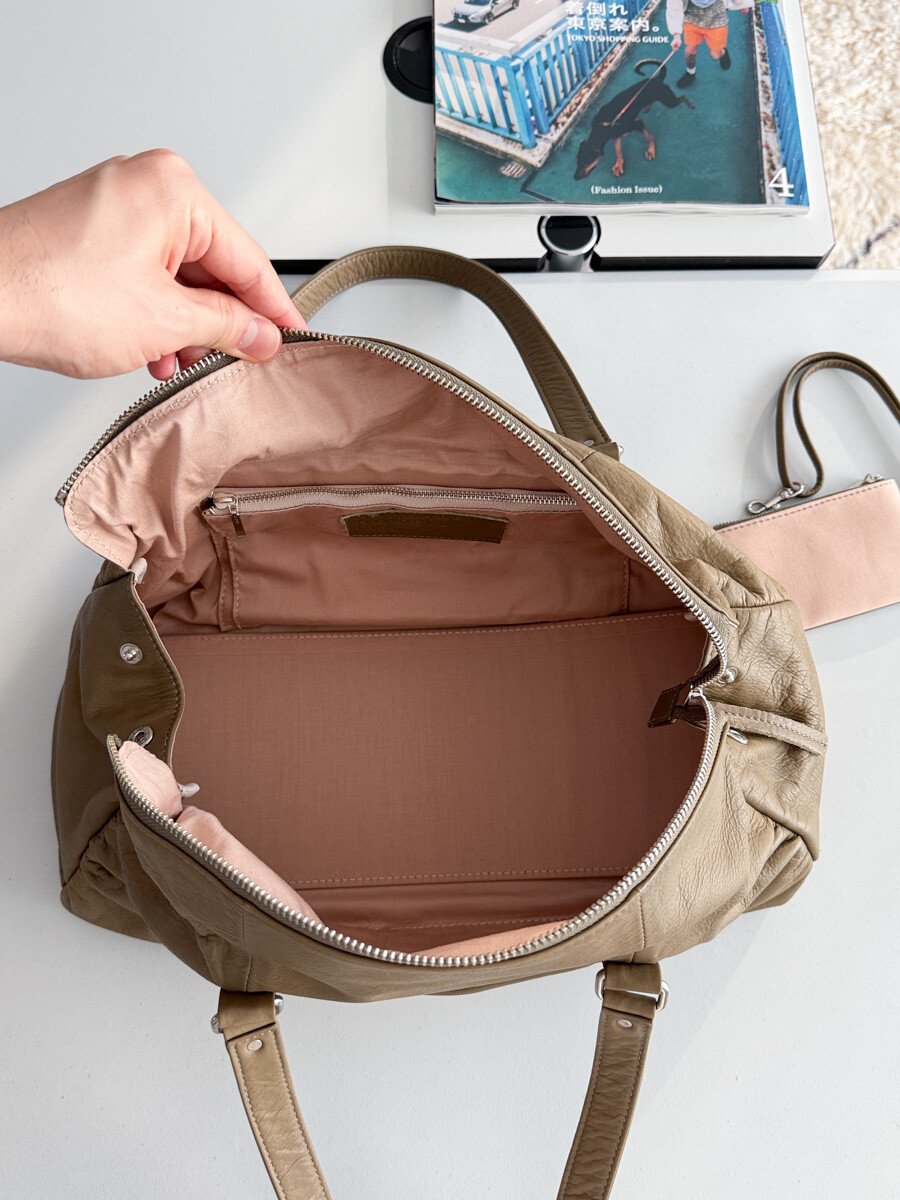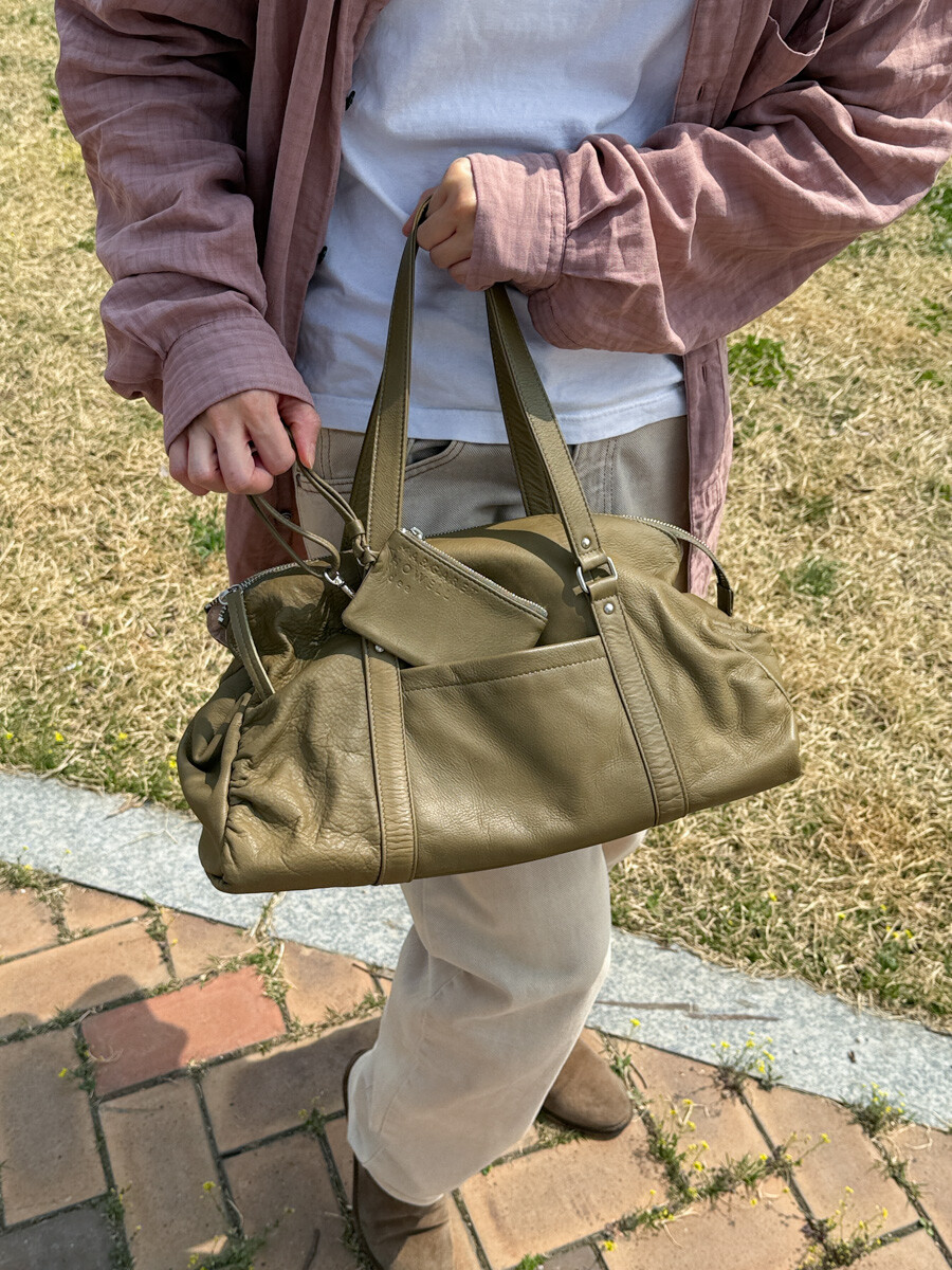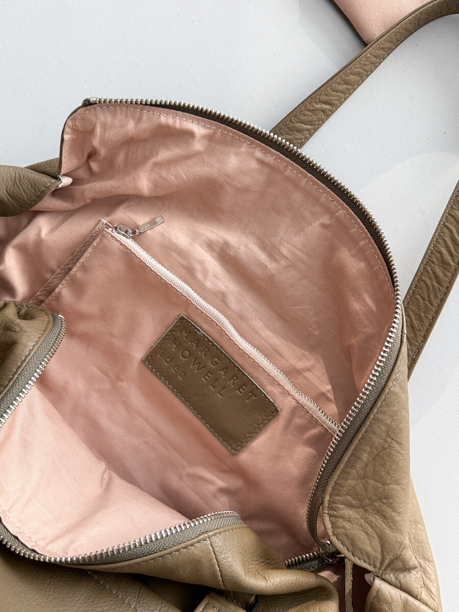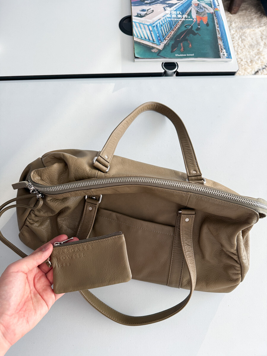 MARGARET HOWELL - Leather Boston Bag (Moss Khaki) *with pouch